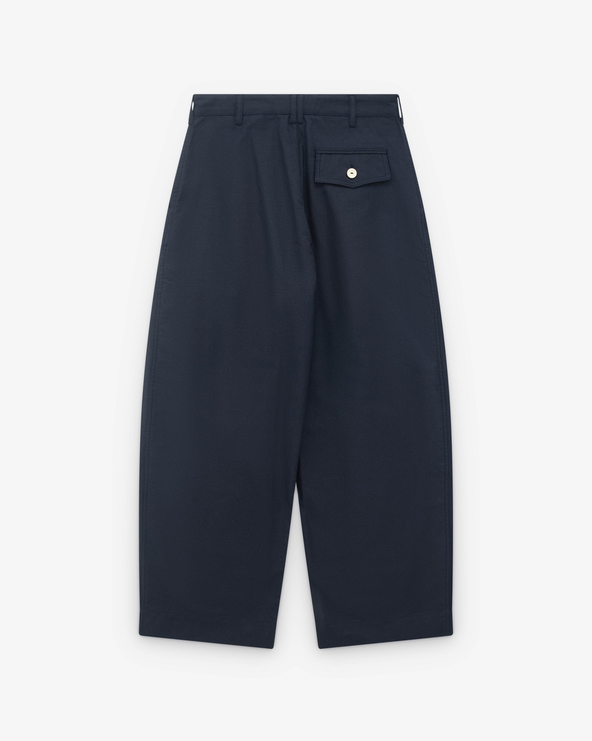 Inside waist button closureSemi-voluminous cutDouble pleated frontBelt loops