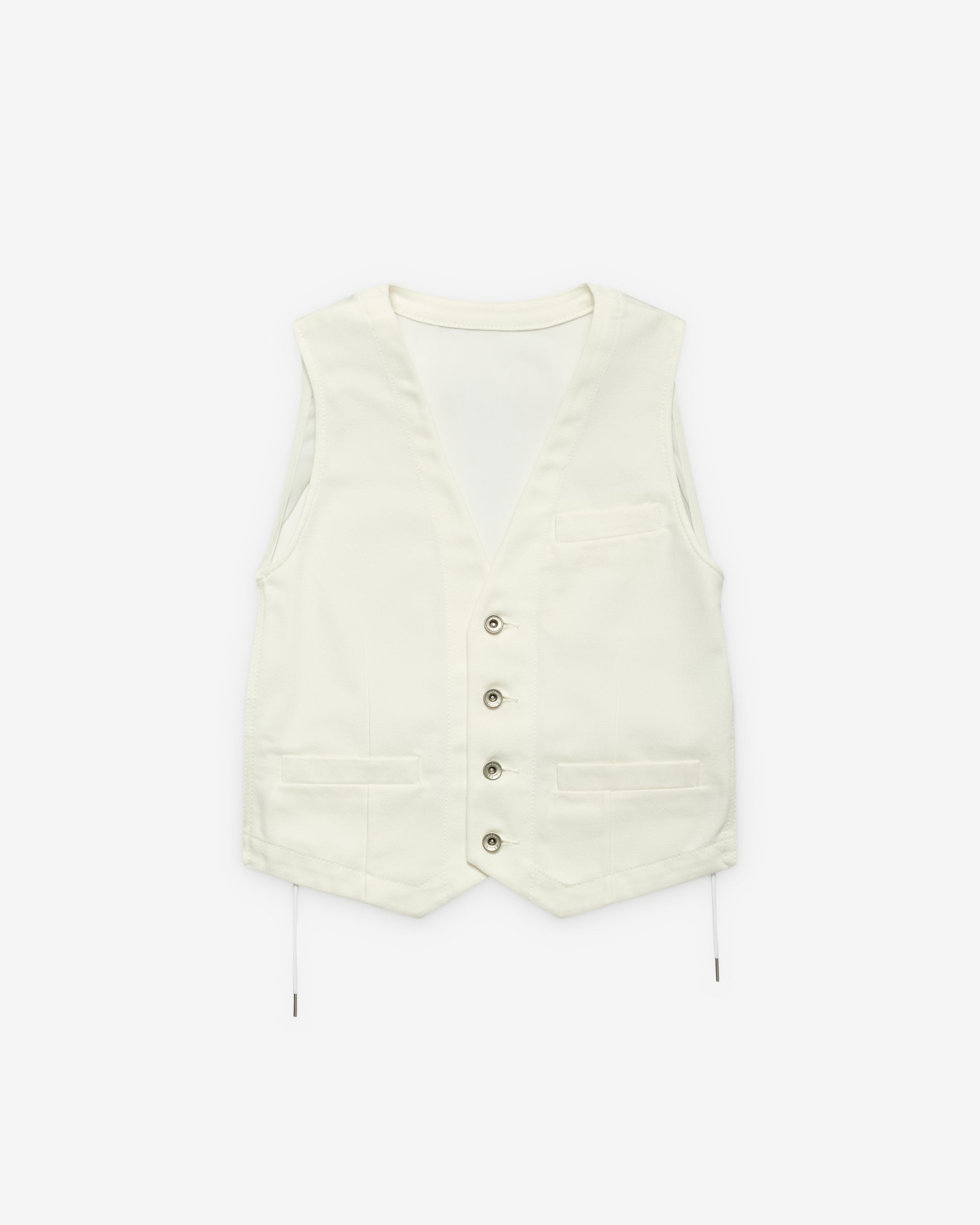 V-neckButton fasteningDrawcord at waistCroppedFront welt pockets100% CottonMade in Japan