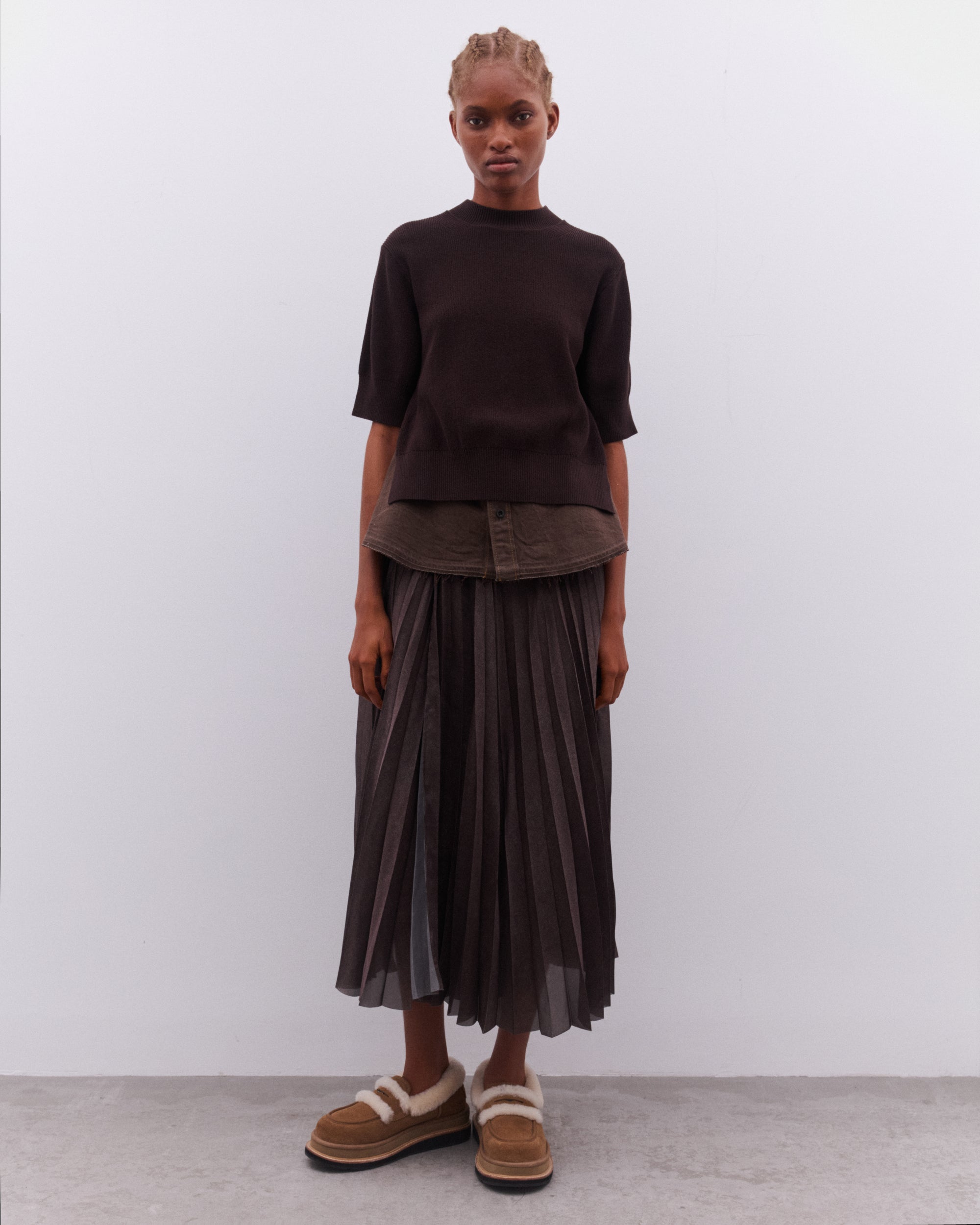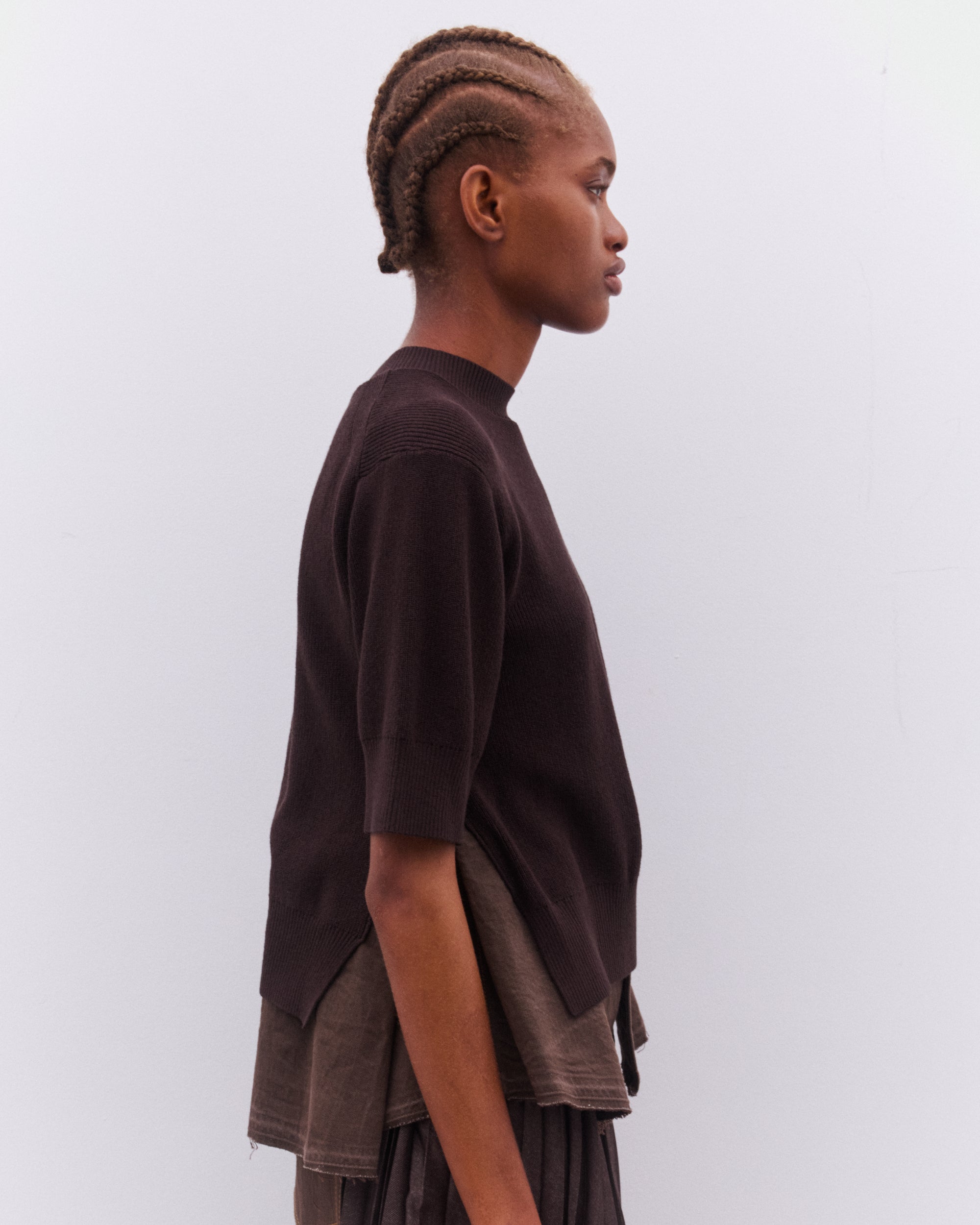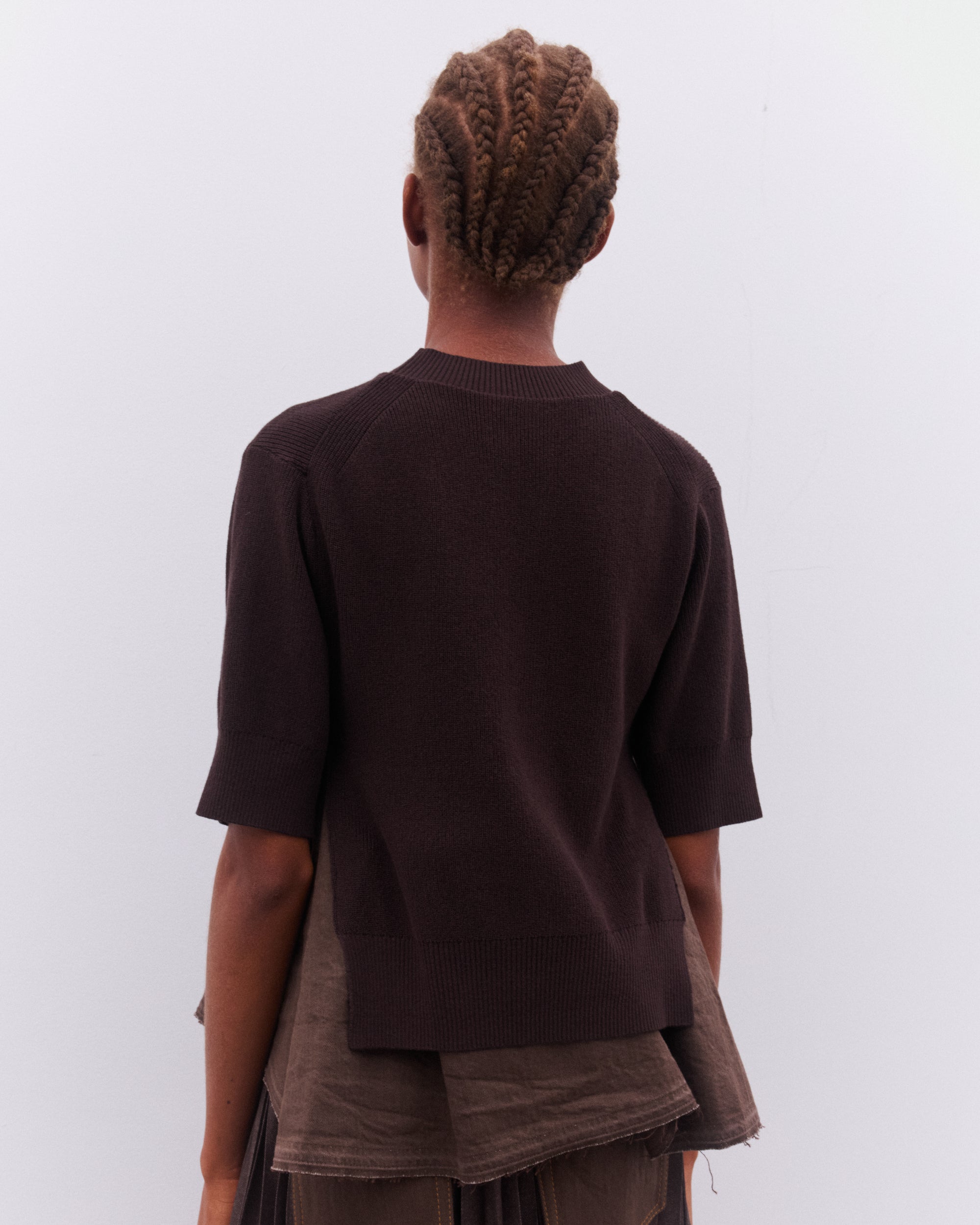 Crew necklineShort sleeves with ribbed trimsDenim under panellingKnit outer fabric
