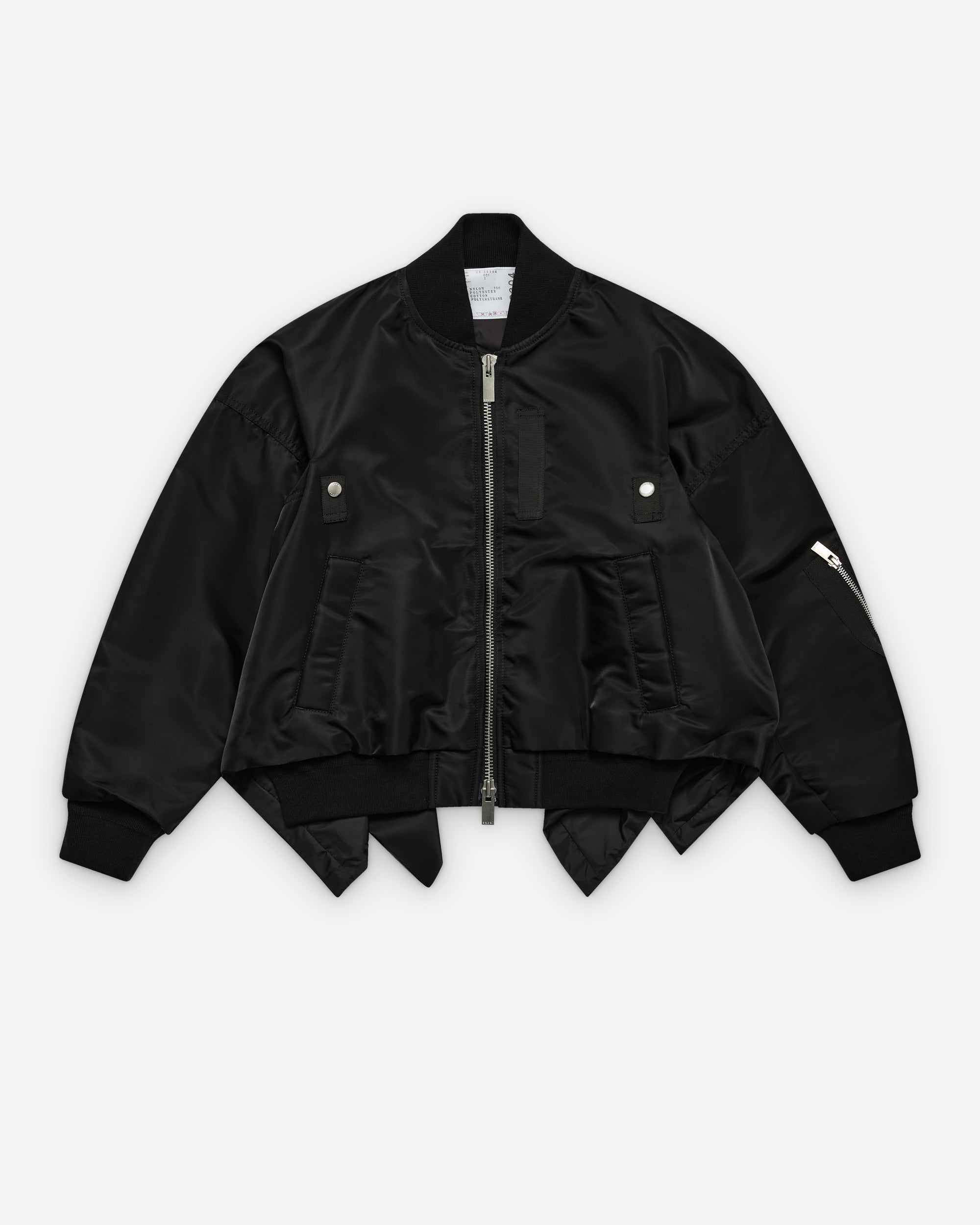 Rib knit trimsTwo way zip fasteningFront welt pocketsRear draped detailing100% NylonMade in China