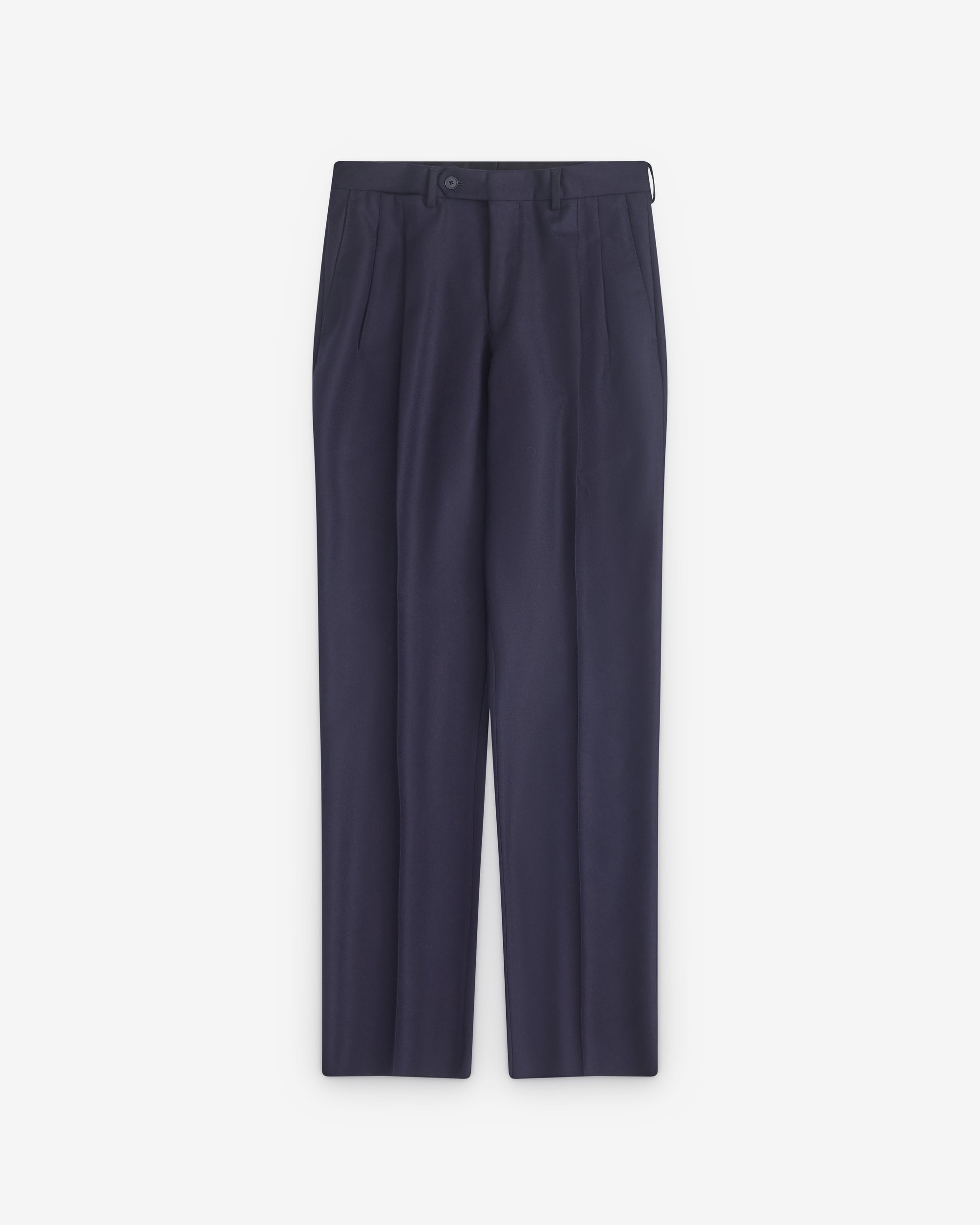 Hook and eye waist closureZip flyDouble pleated frontSide seam pocketsTwo rear pocketsRegular fit