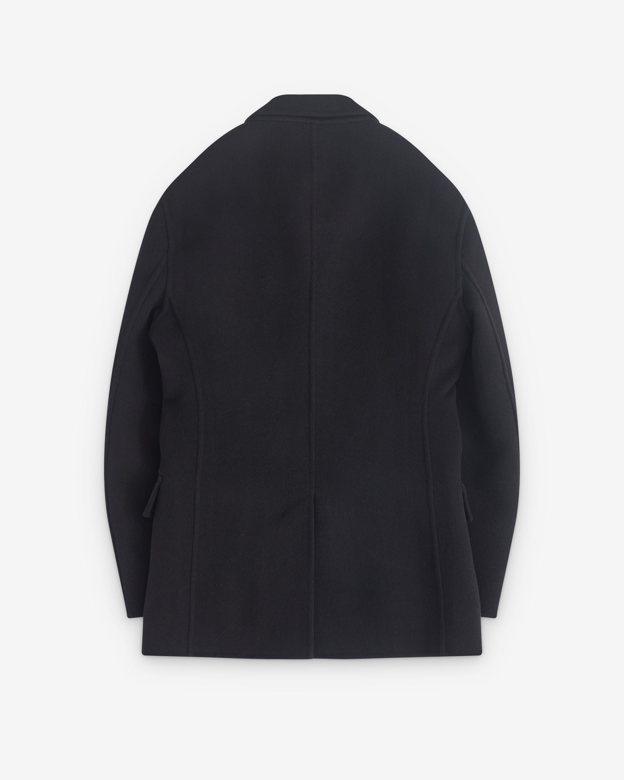 Three button closureUnlinedDouble breasted collarNotched lapel Two front pocketsSplit rear seam