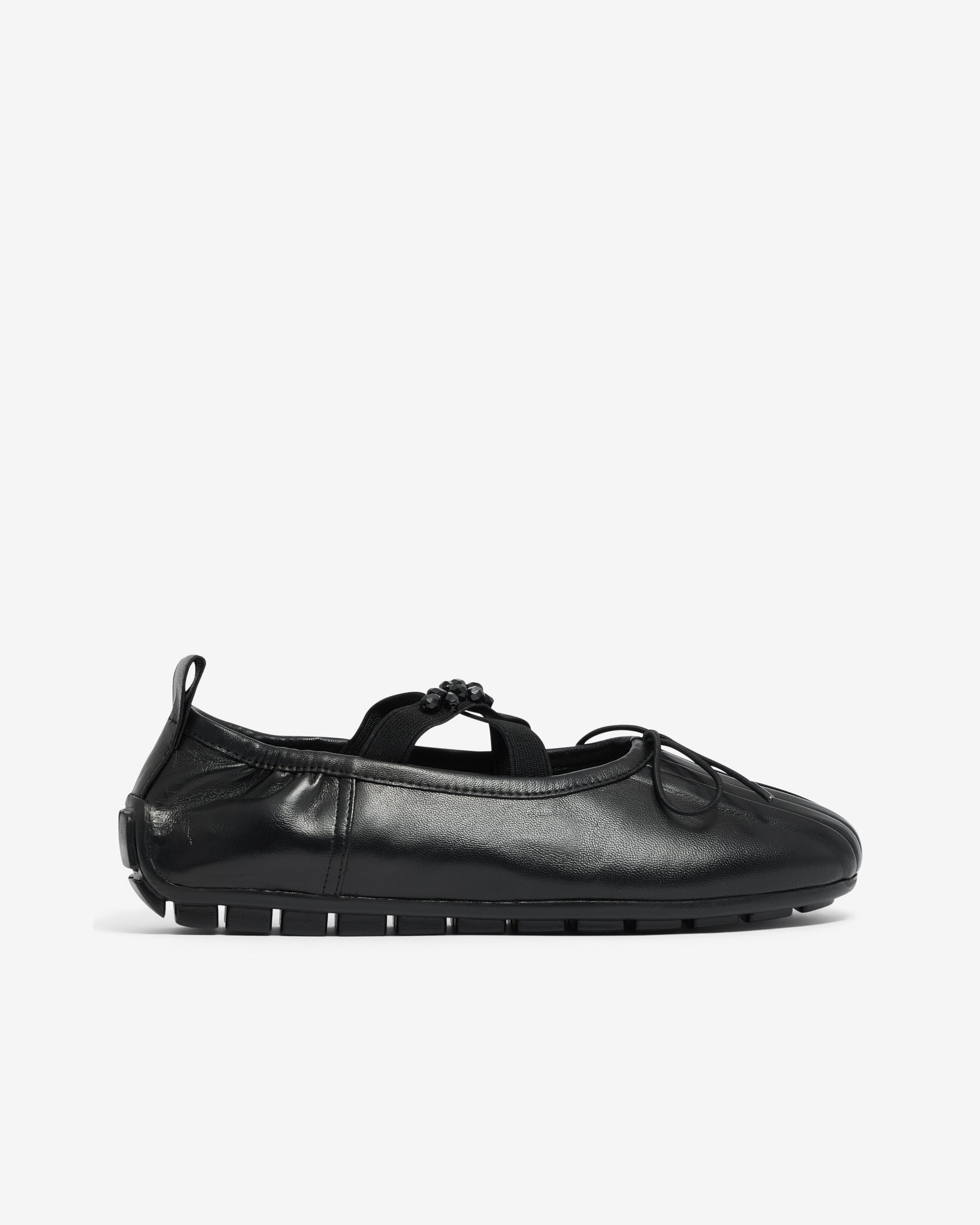 Elastic criss-cross strapEmbellishment at top strapBow ribbon detailRubber trek sole