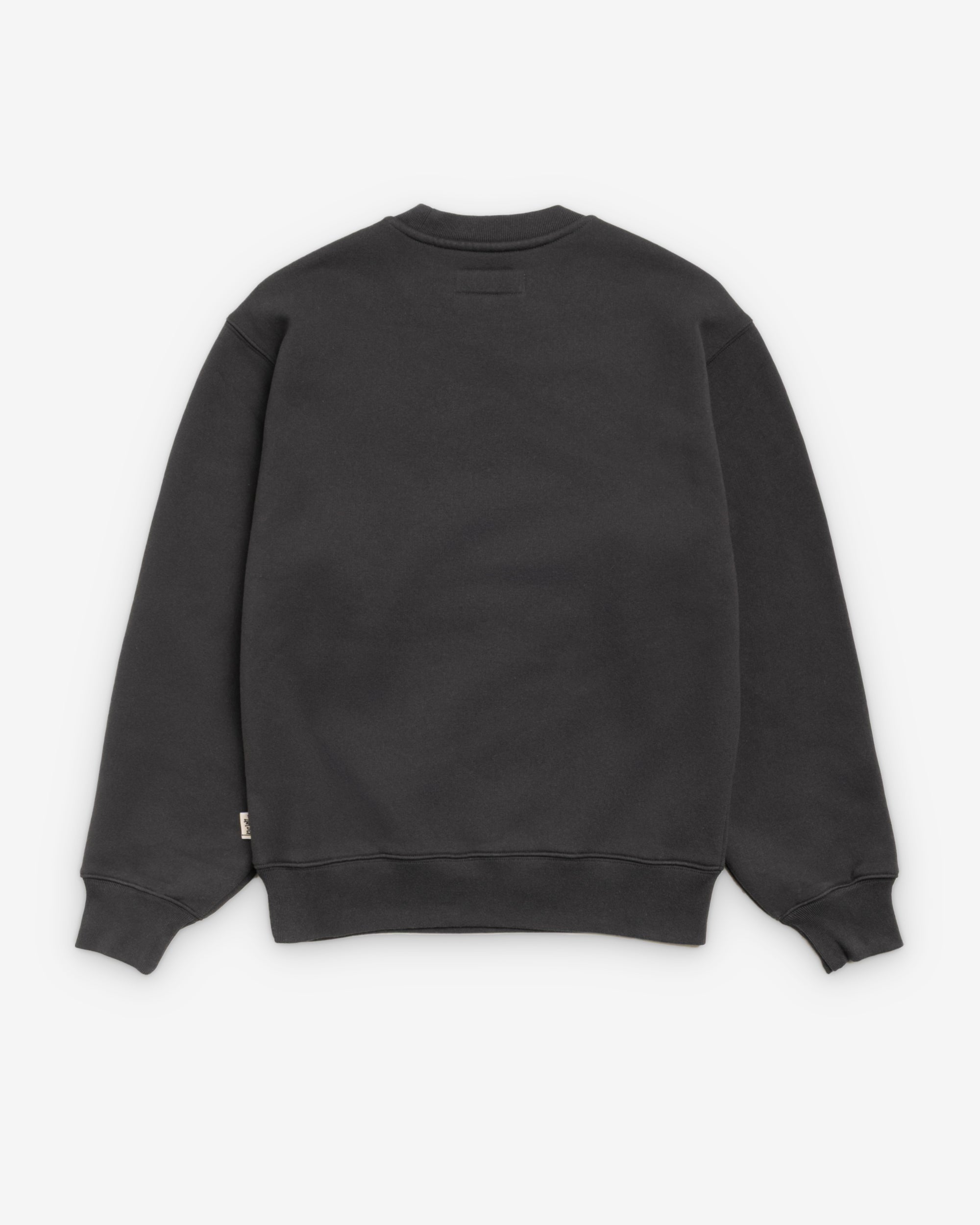 Relaxed fit crewneck fleece sweatshirt Heavyweight 535gsm cotton blend Ribbed neckline, cuffs and hem Stüssy big basic flag label at side seam Unisex Material: 66% cotton / 34% polyester Imported