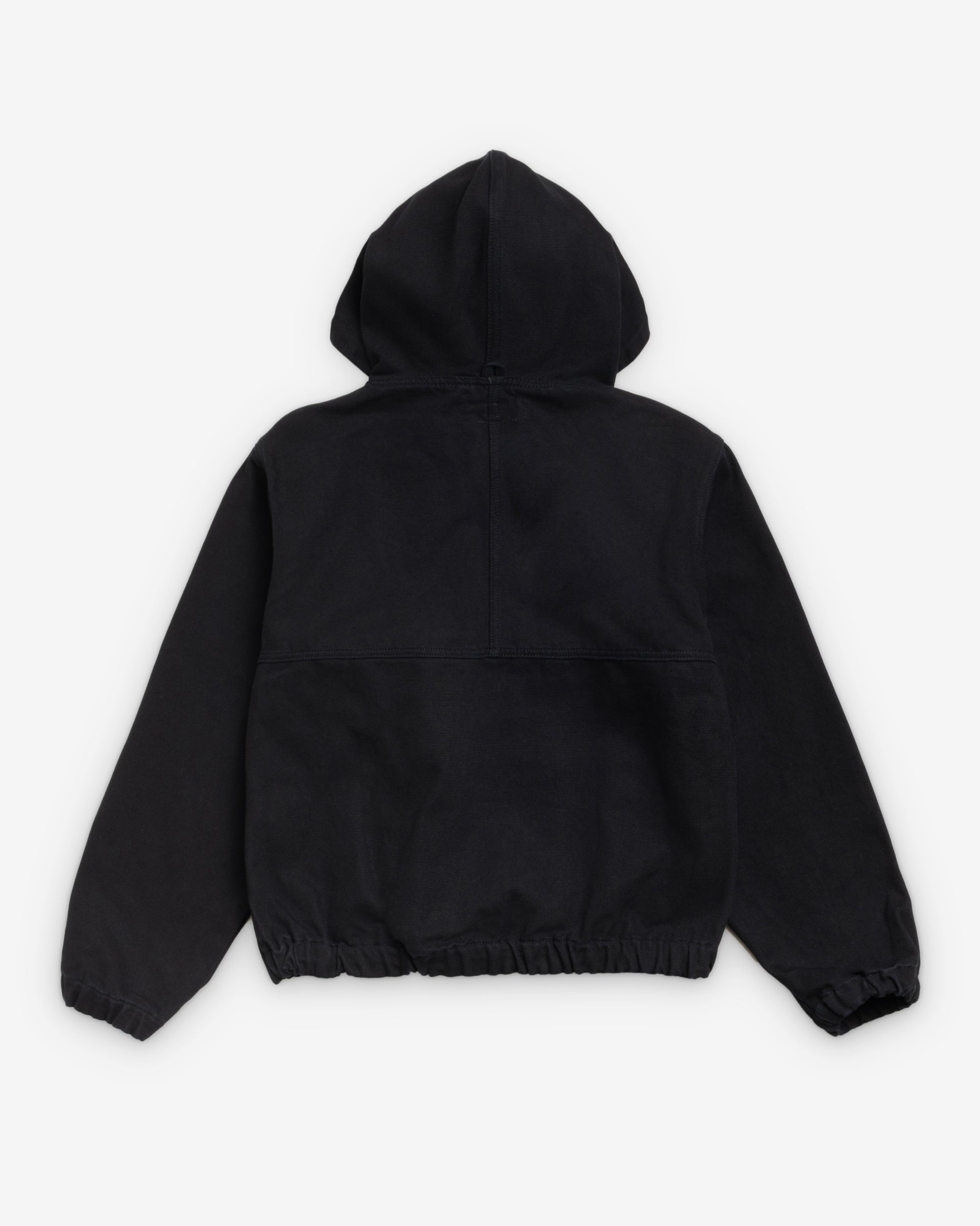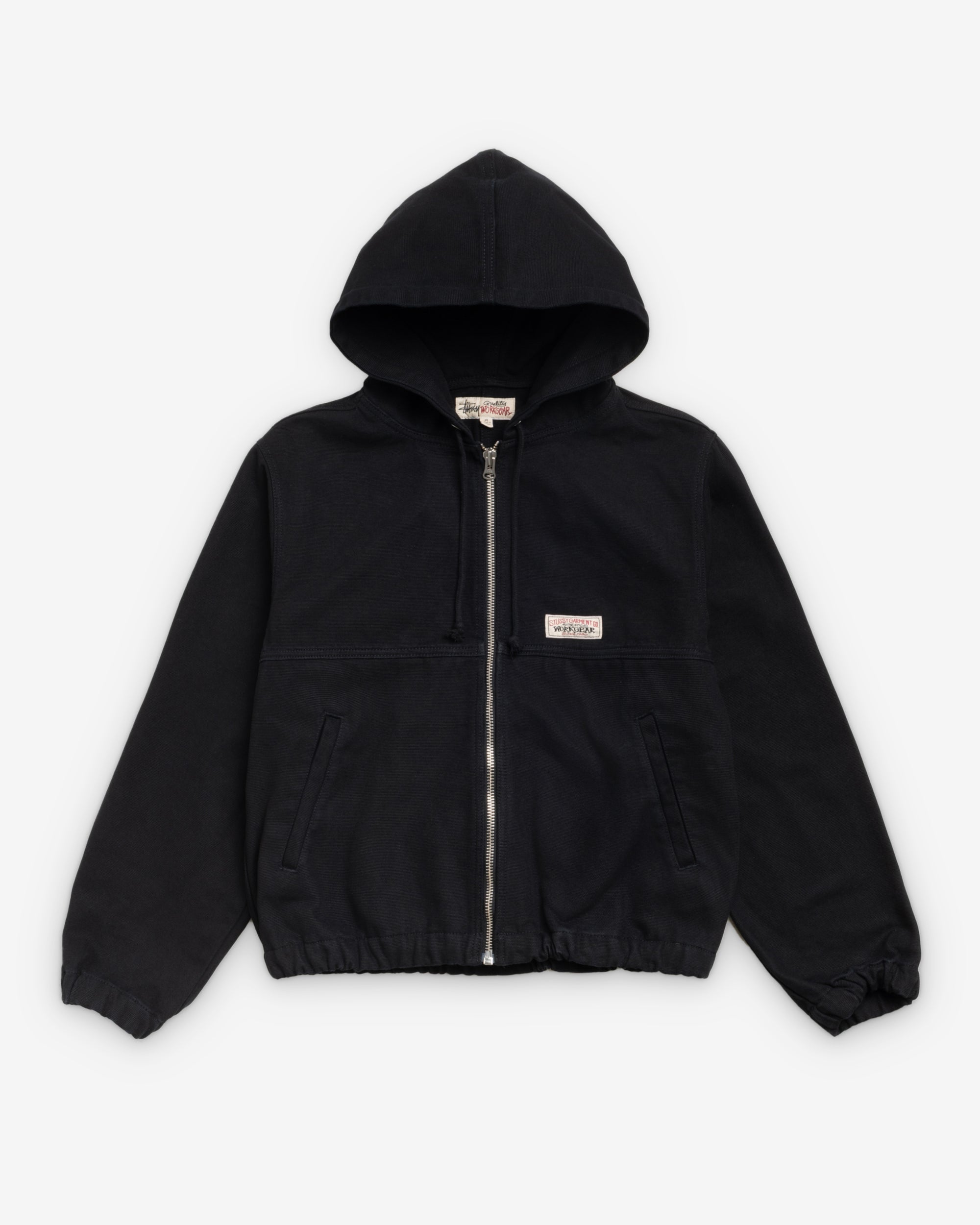 Boxy fit work jacket in cotton canvas Cotton drawcord in hood YKK metal zip closure Slanted welt pockets Stüssy authentic workgear label at chest Elastic cuffs and hem Exterior locker loop under hood Unlined Unisex Material: 100% cotton Imported