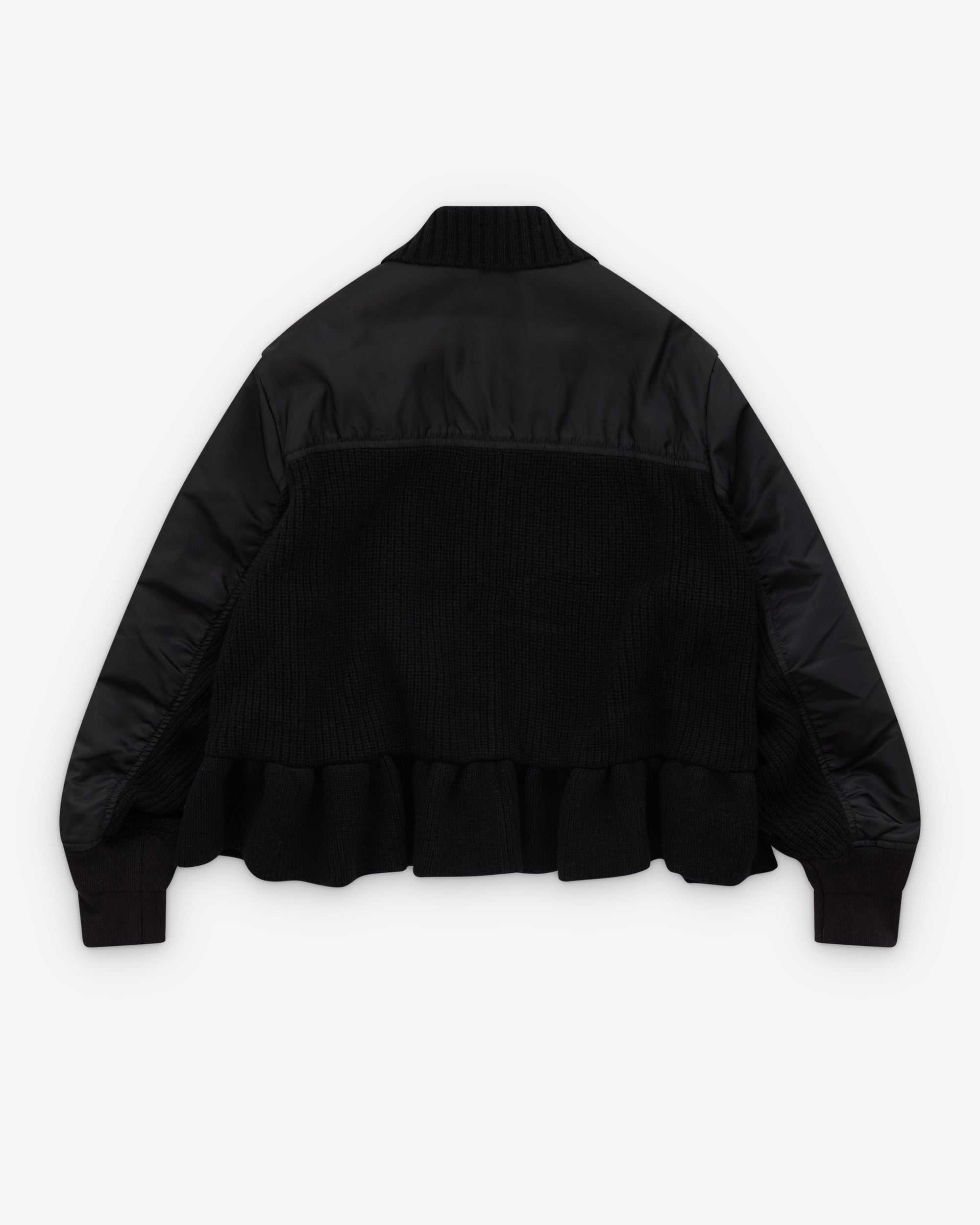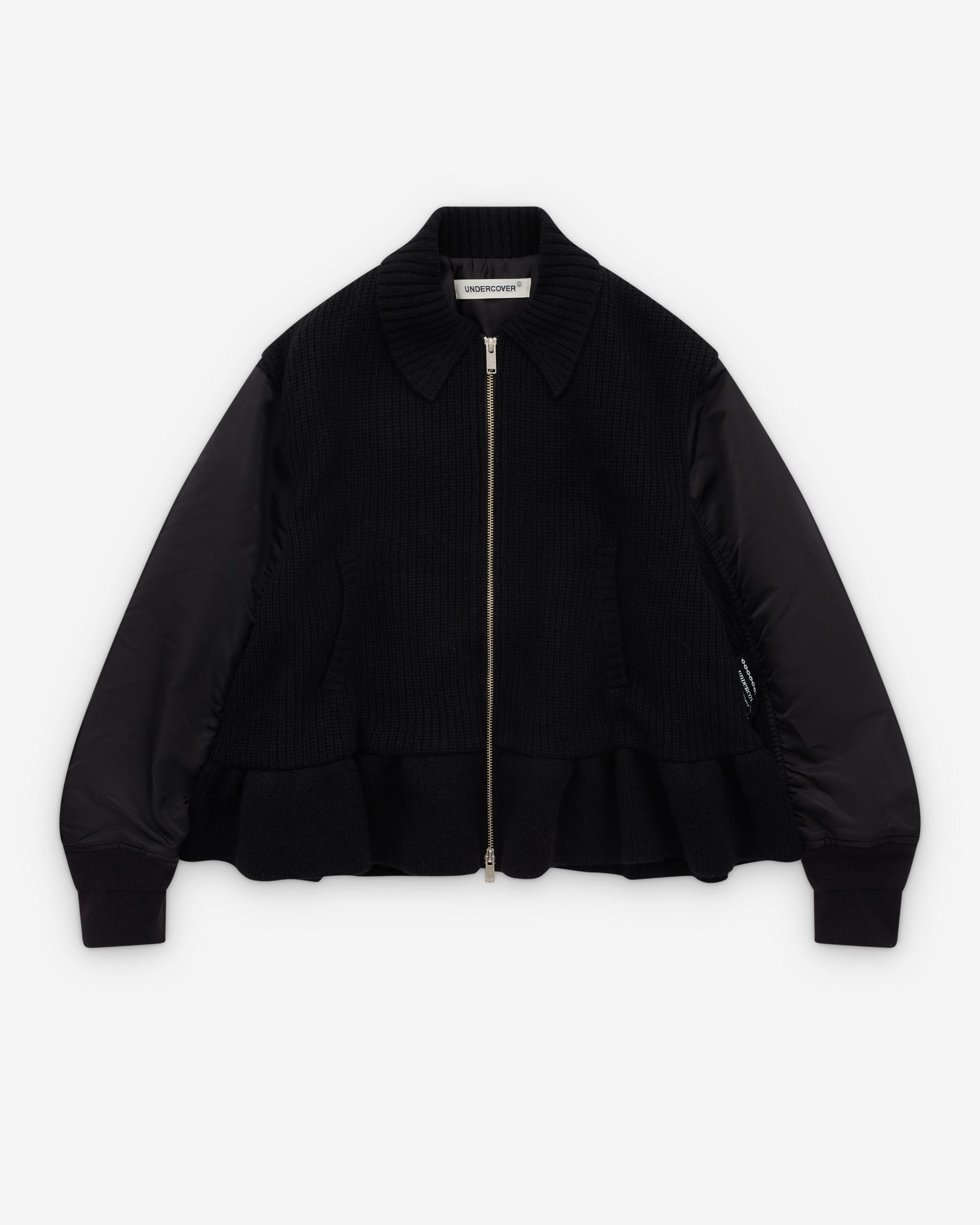 Ribbed knit collar and bodyNylon sleevesFull internal lining Two way metal zipperBadge logo Front welt pockets