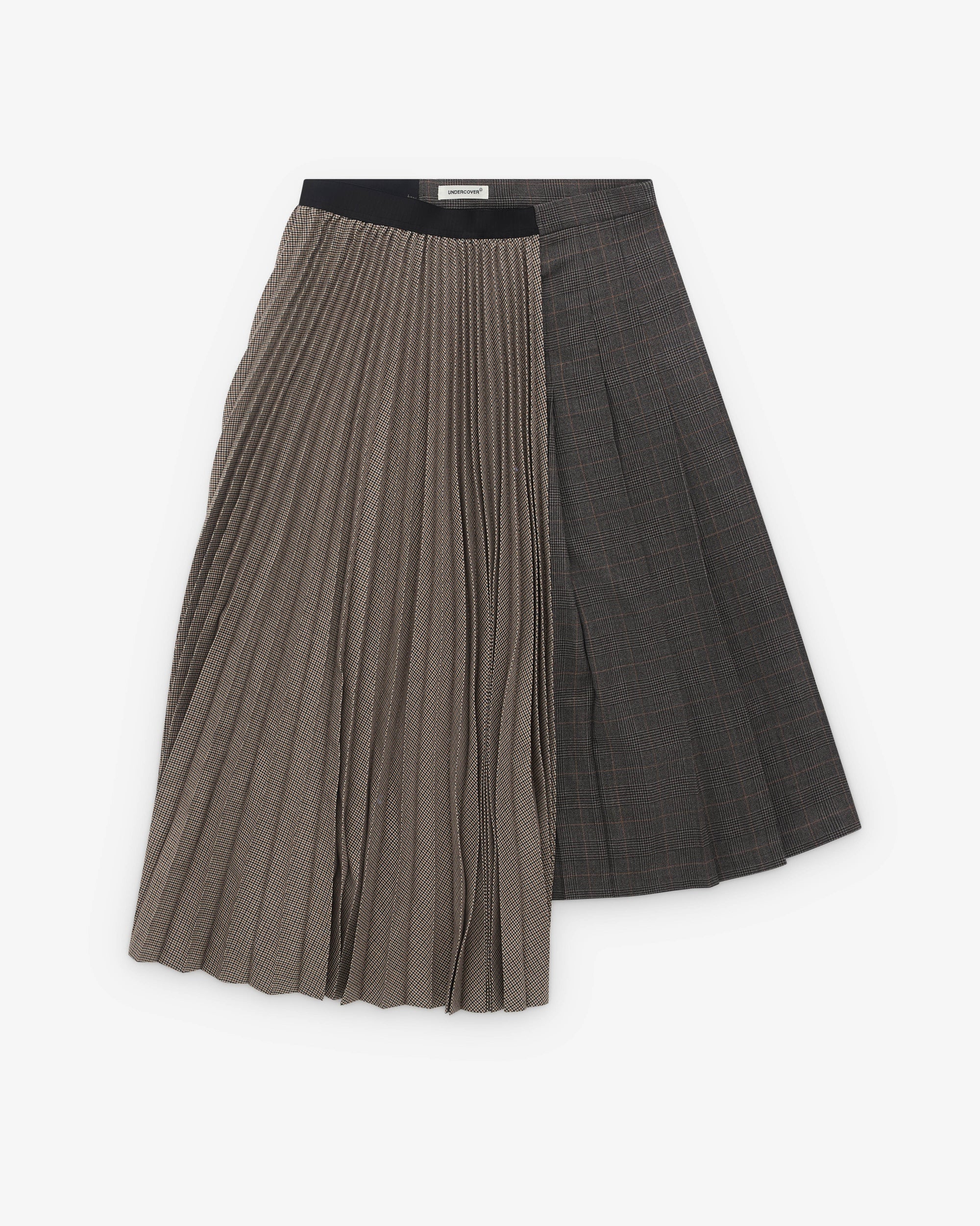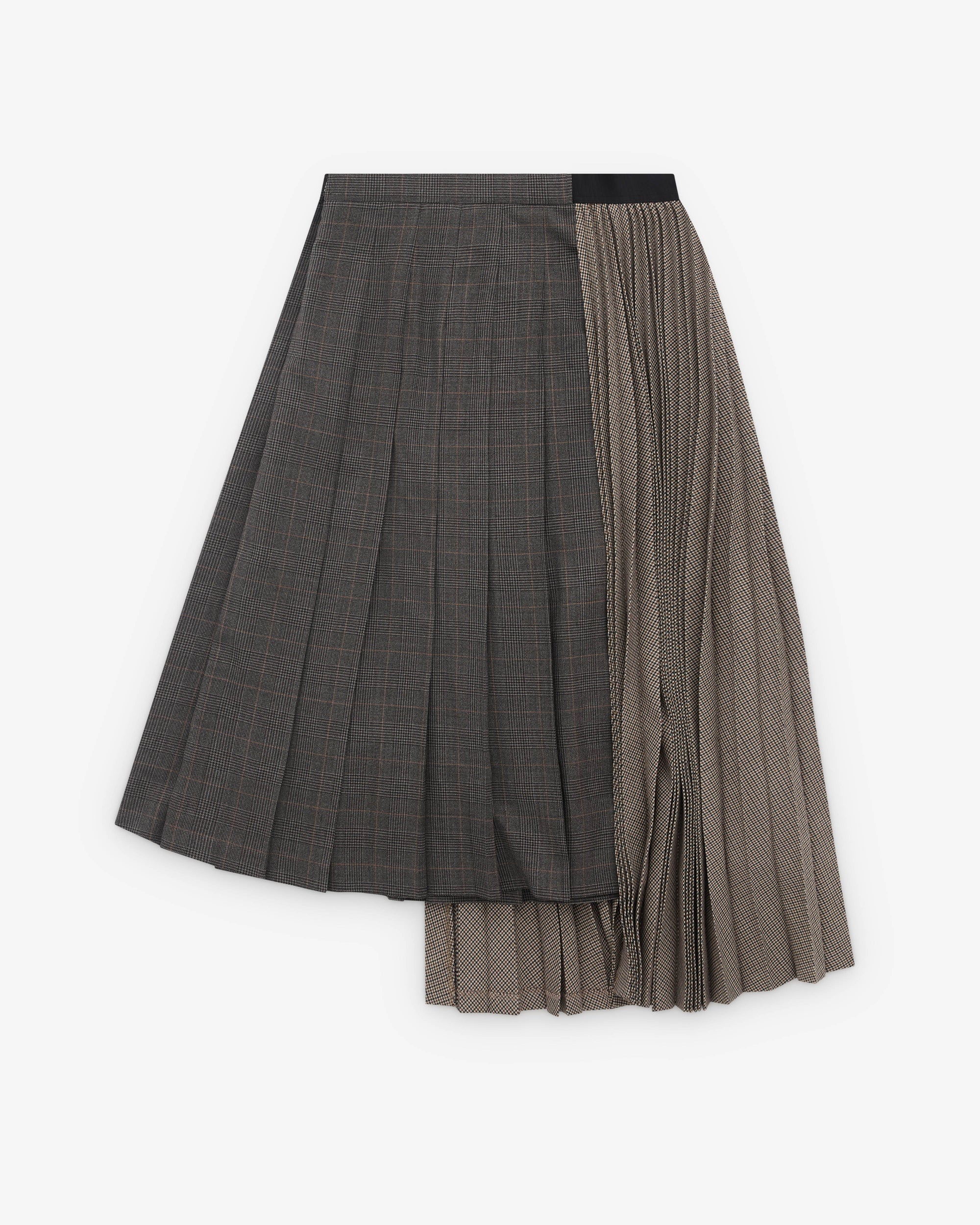 Wool/polyester pleated skirtSide zipperMidi skirt length