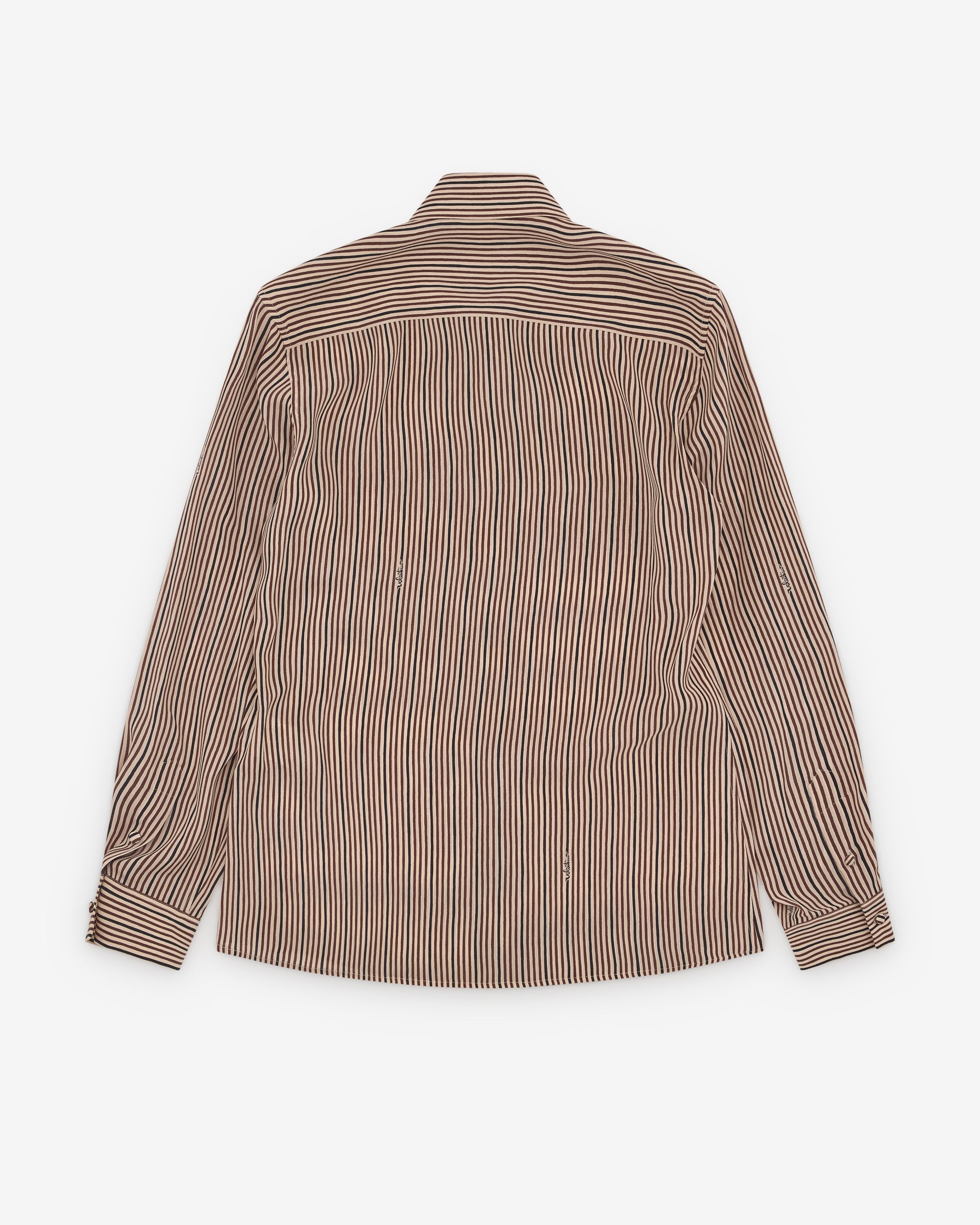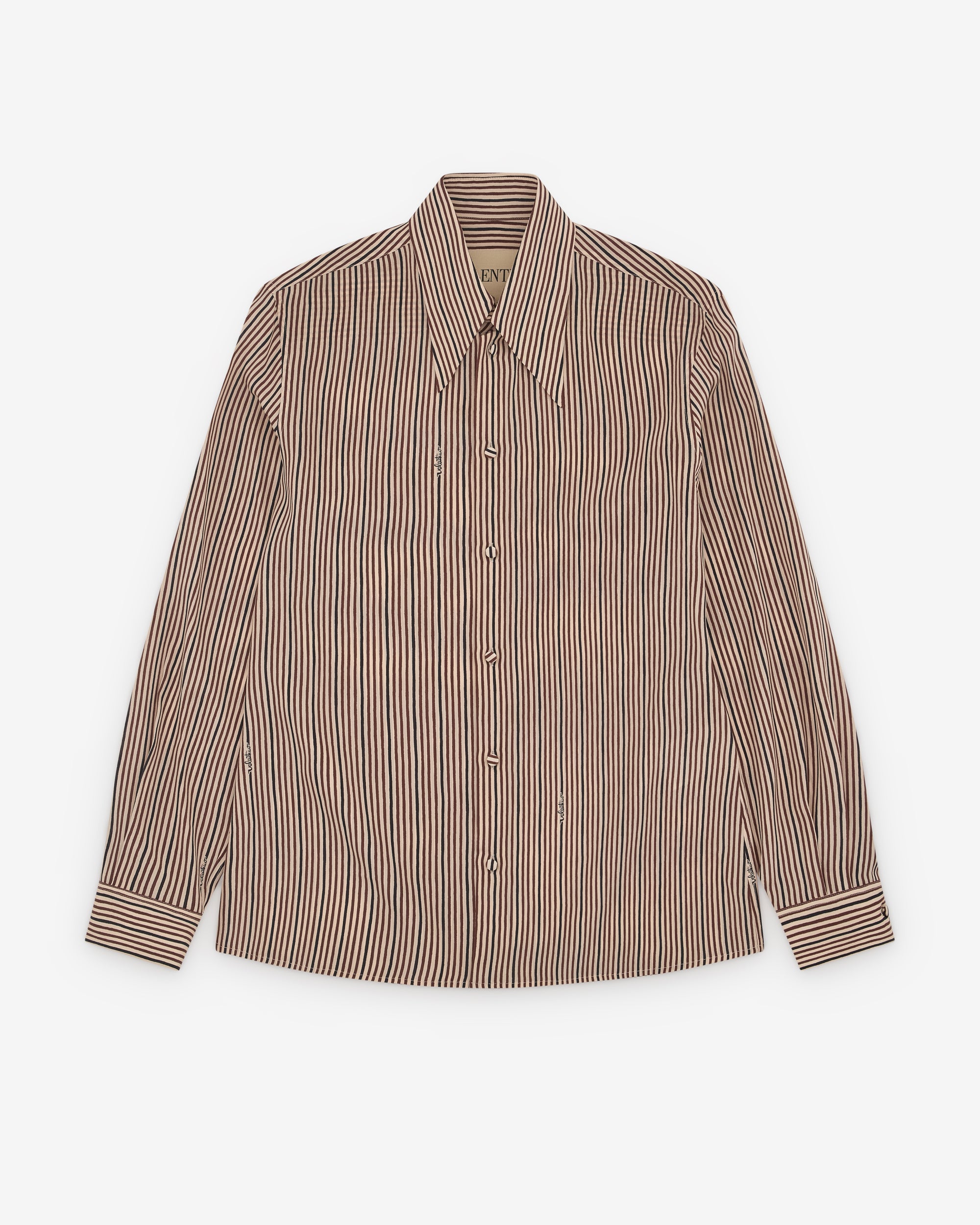 Point collarStriped fabricButton closureCurved hemButton close cuffs