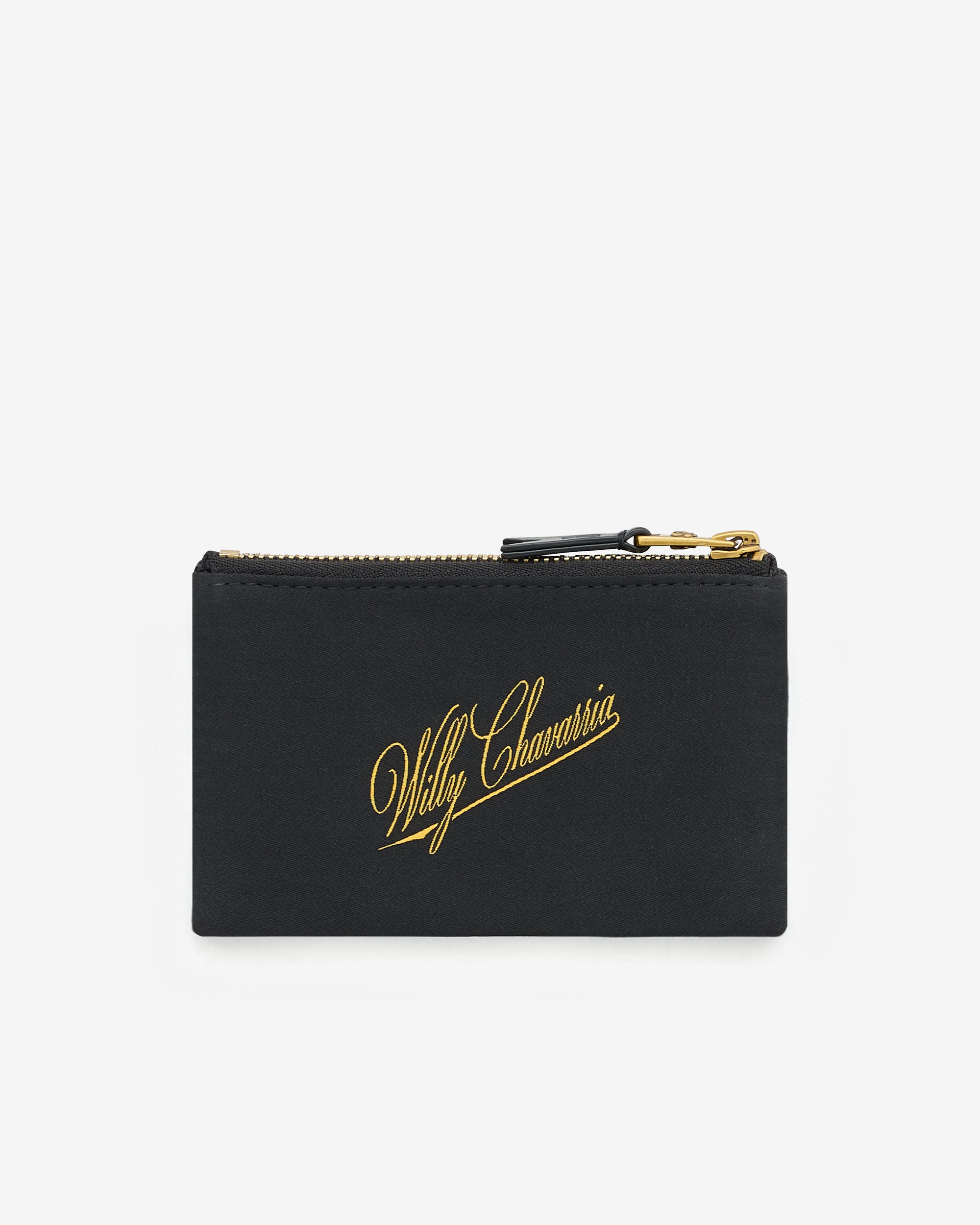 Signature “Tailoring” woven label graphic Thread-embroidered “Willy Chavarria” logoCalf leather zipper pullUnlined, no pockets5.25”x3.5”