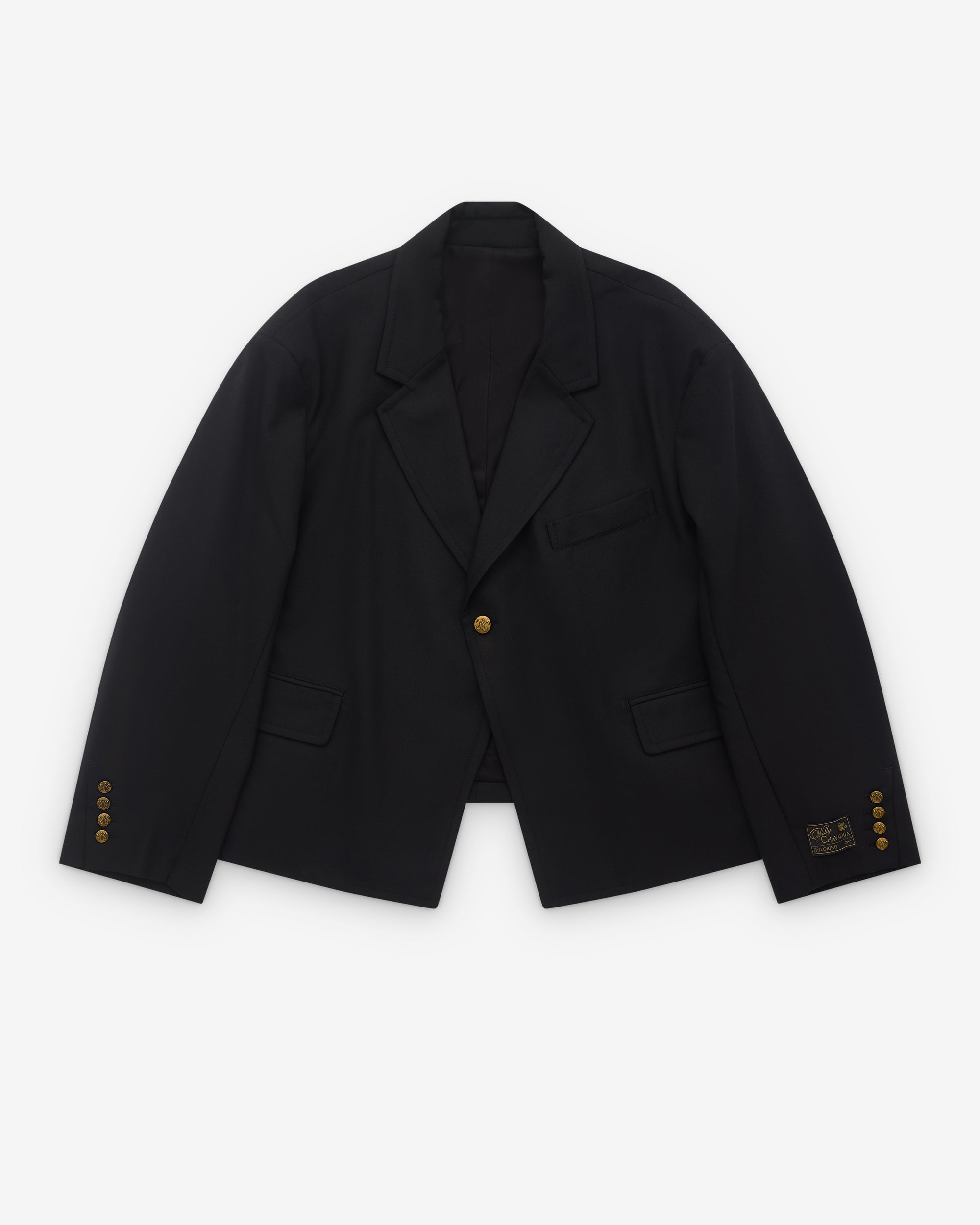Signature snake single button at center frontJetted waist pockets and single chest pocketOversized fitButterfly lined with a cotton/viscose blend