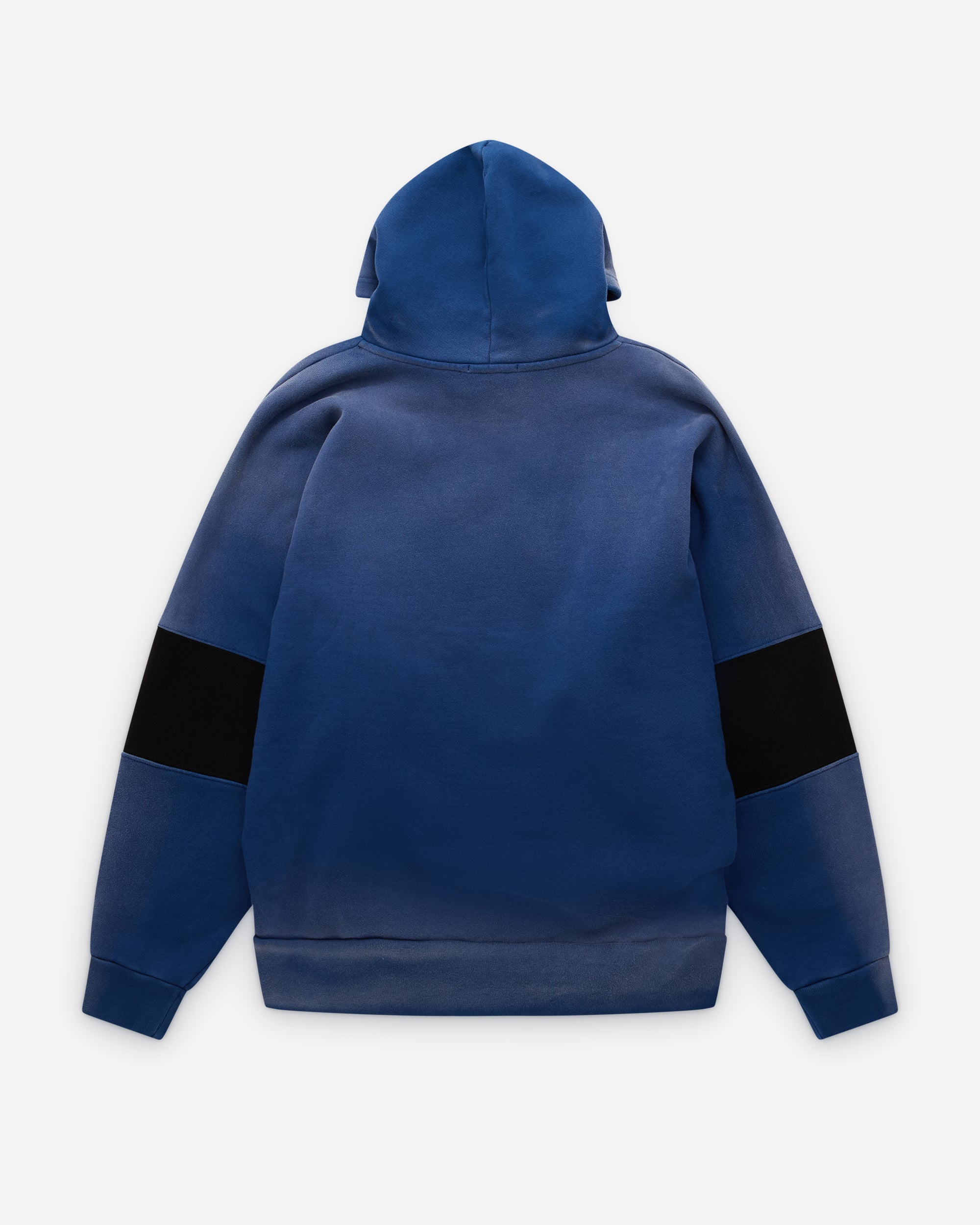 HoodedLarge kangaroo patch pocketPrinted graphicsContrast panels at sleevesSun-faded finish