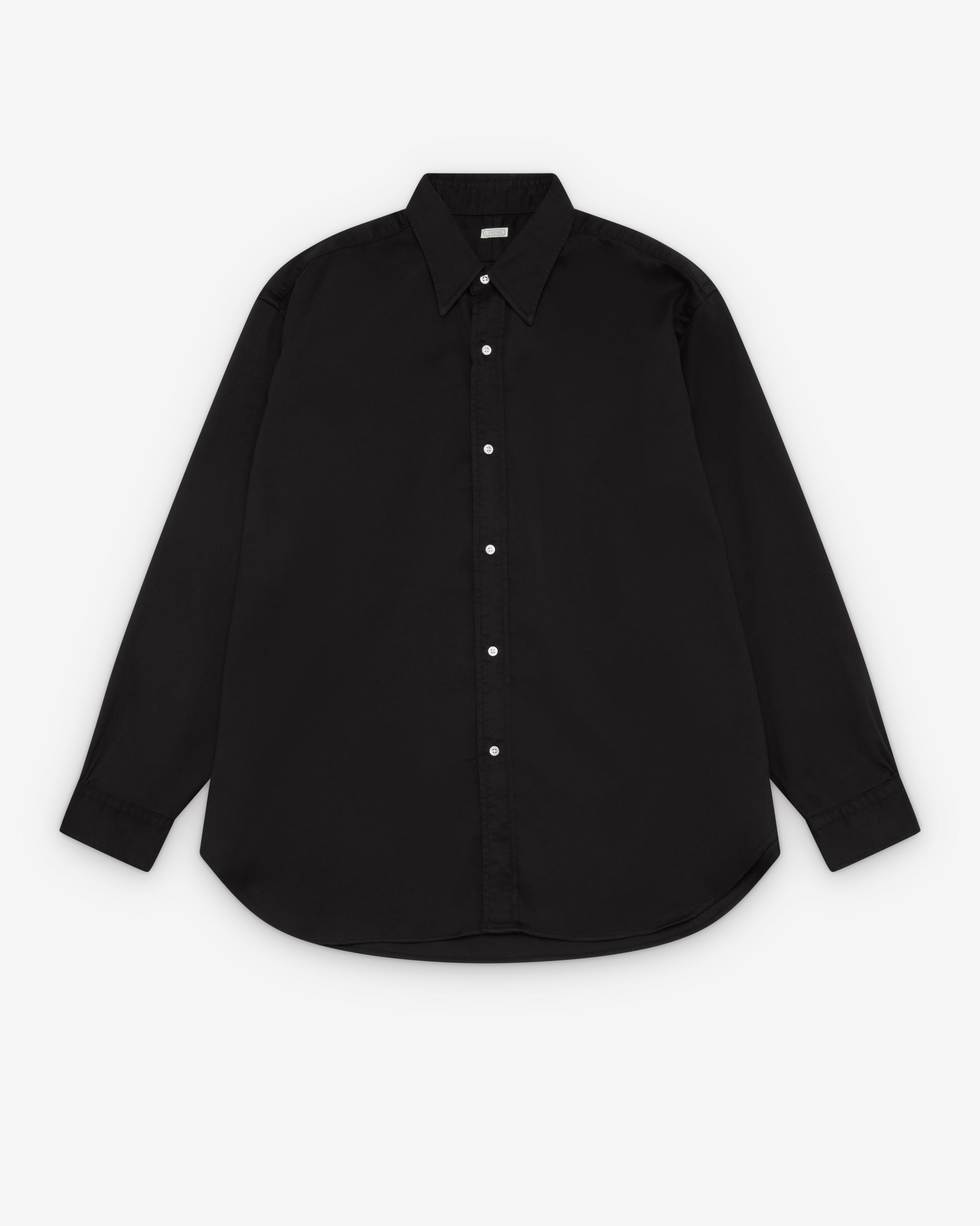 Point collarLong sleevesButton closure Curved shirttail hemButton close cuffs