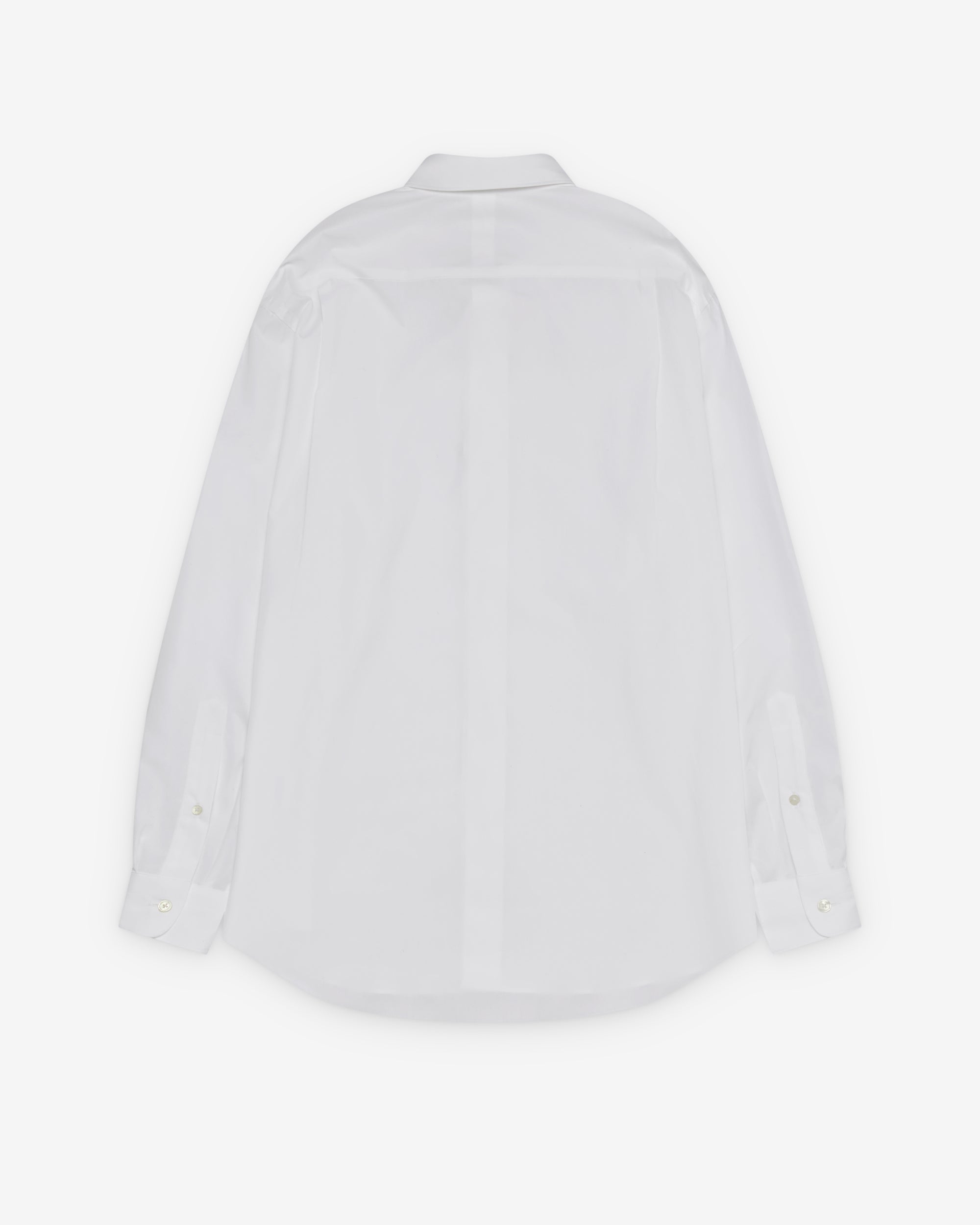 Regular collarFront button closureButton close cuffsCurved shirttail hemBox pleat at back