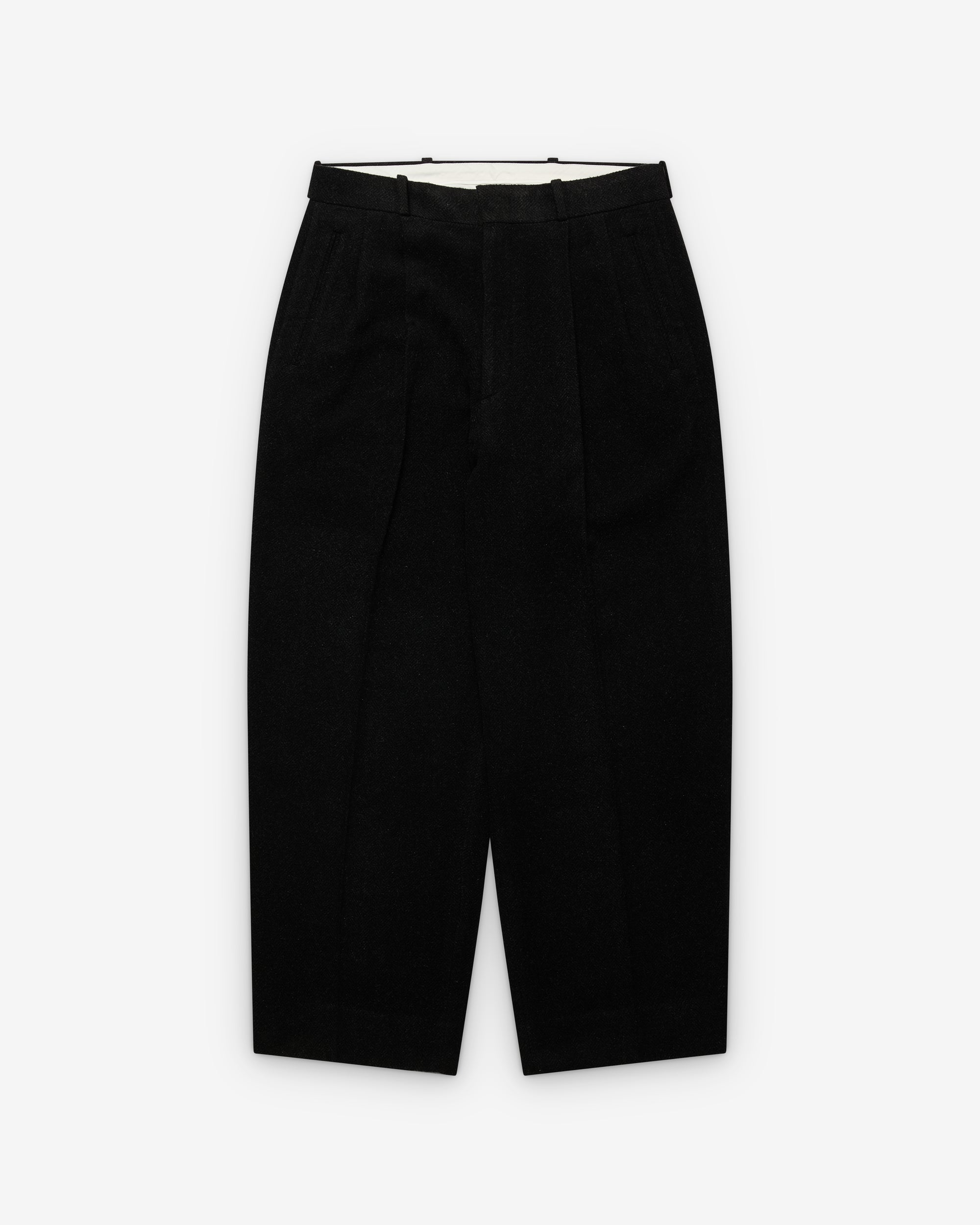 Wide silhouetteDouble pleatWelted waist pocketsWide belt loops
