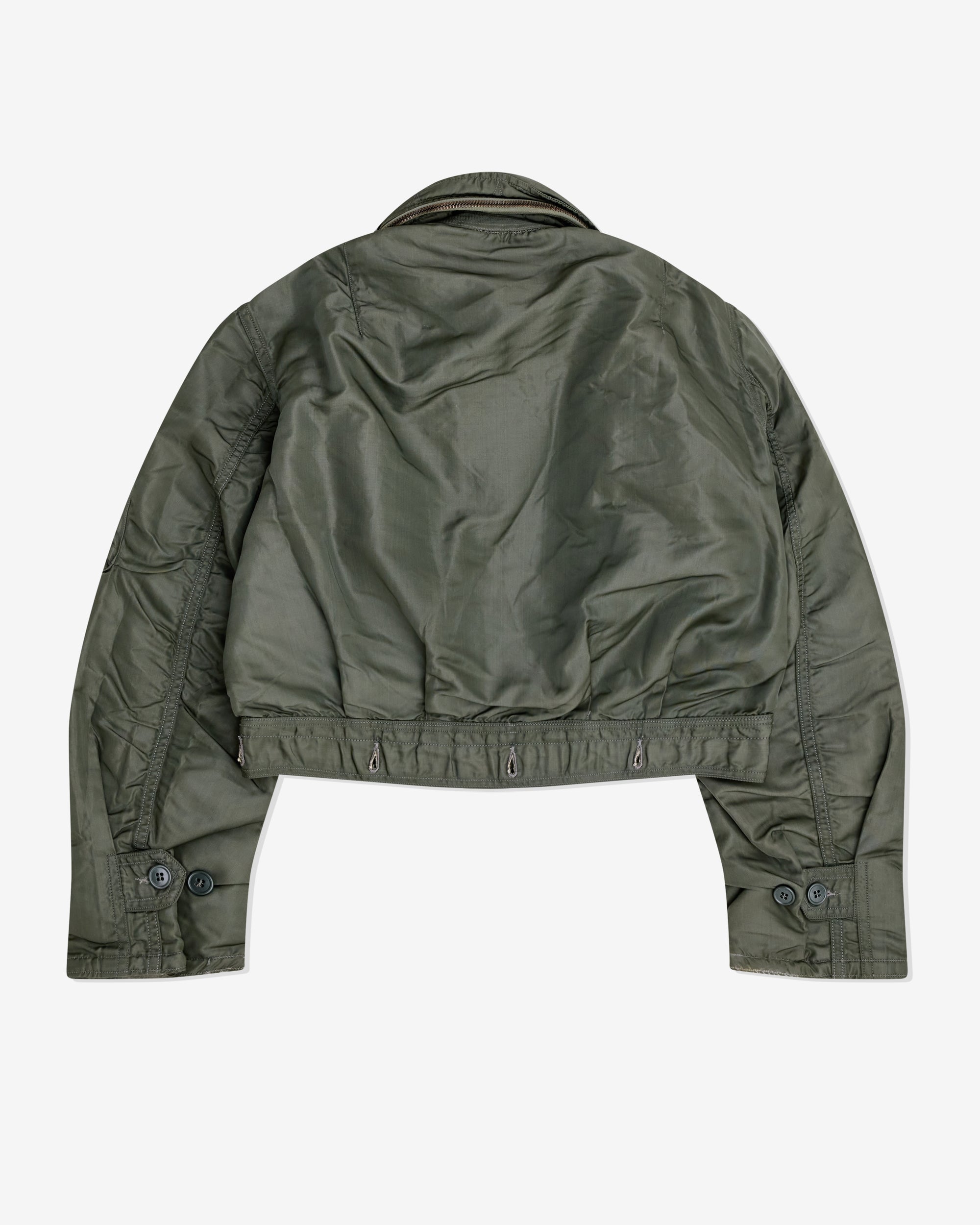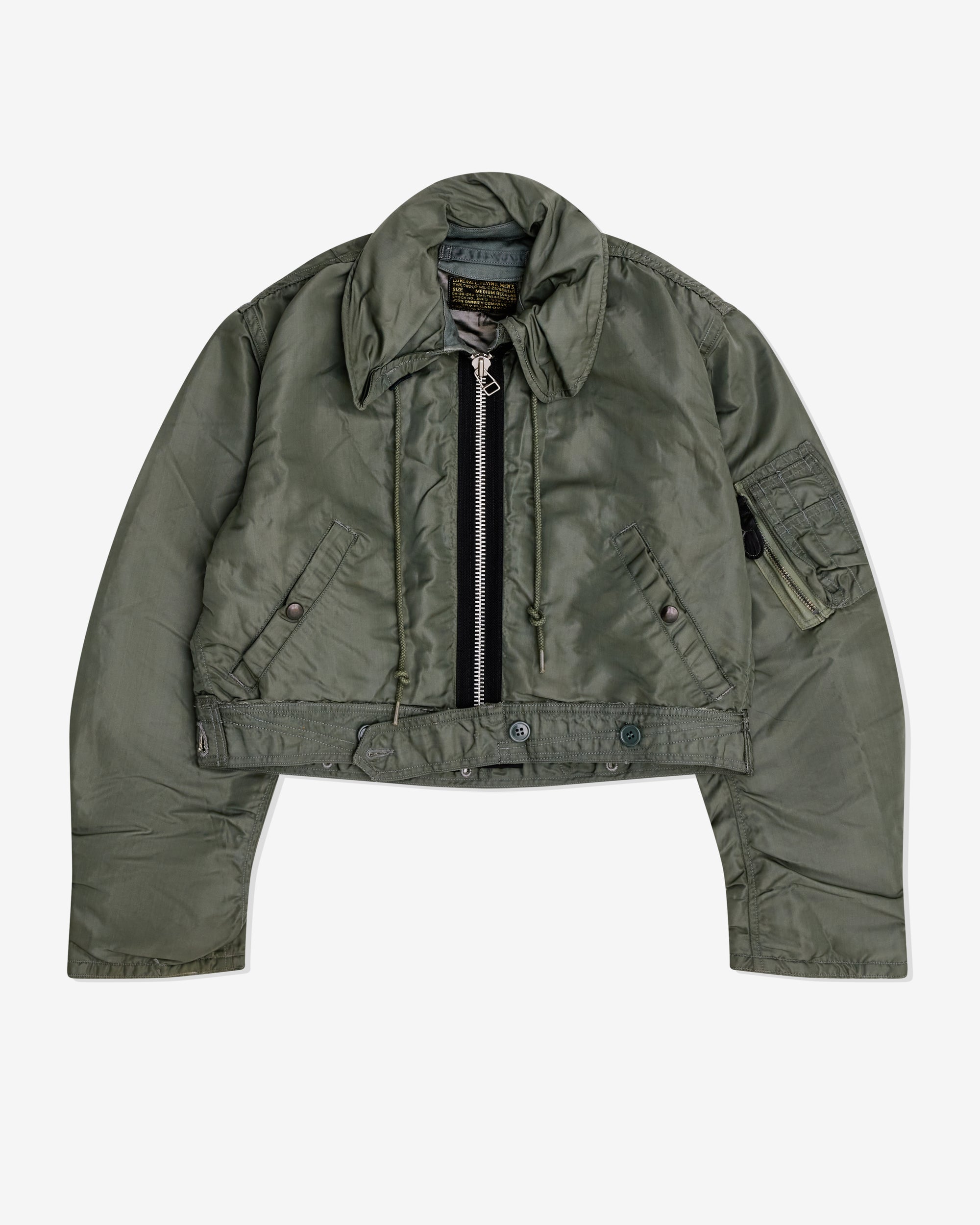 Front zip closureFront slant pocketsZip close sleeve pocketDrawstring tie at neckAdjustable button cuffs