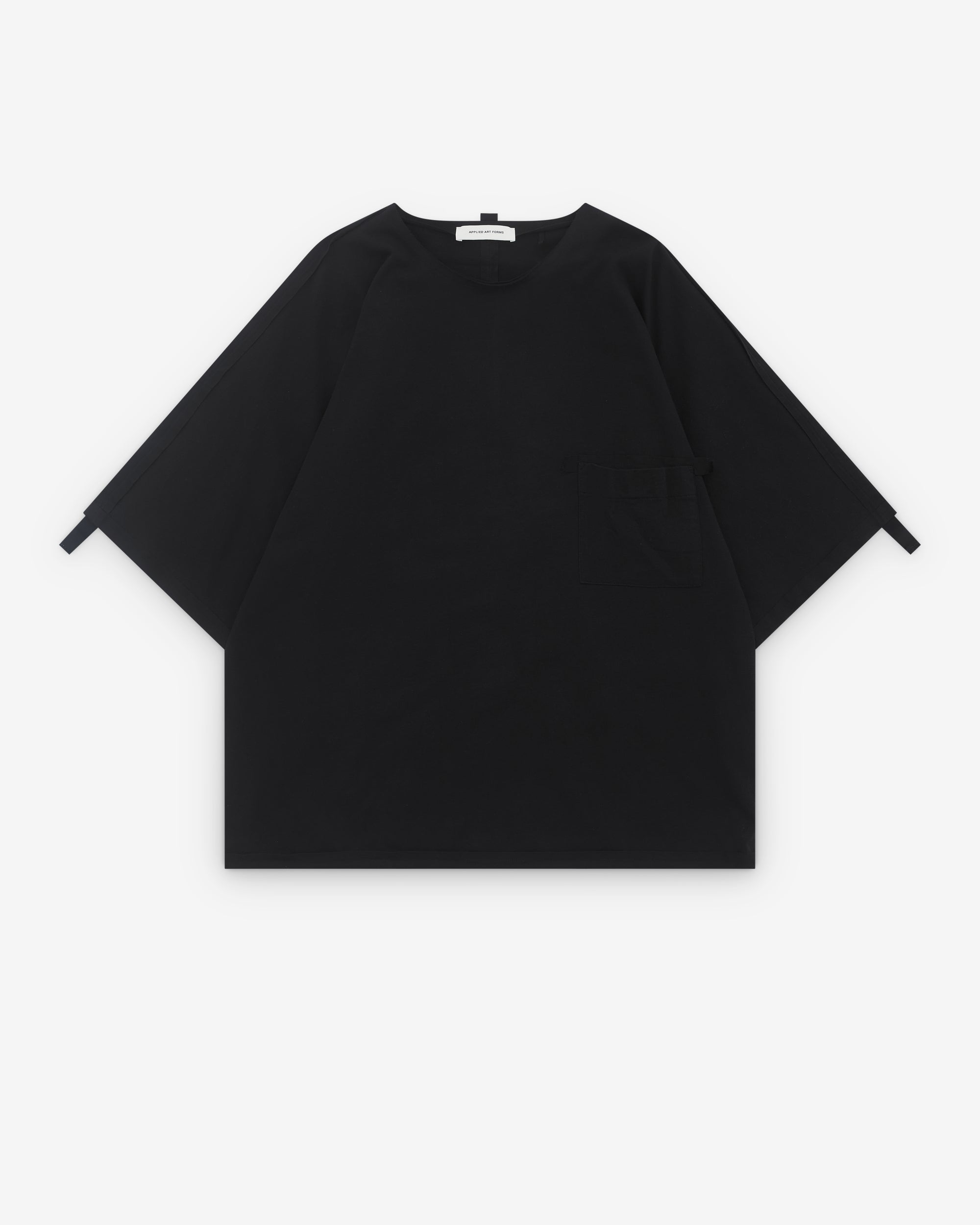 Oversized, draped fitCotton herringbone tape detailsChest pocket with tape detailShort sleeves
