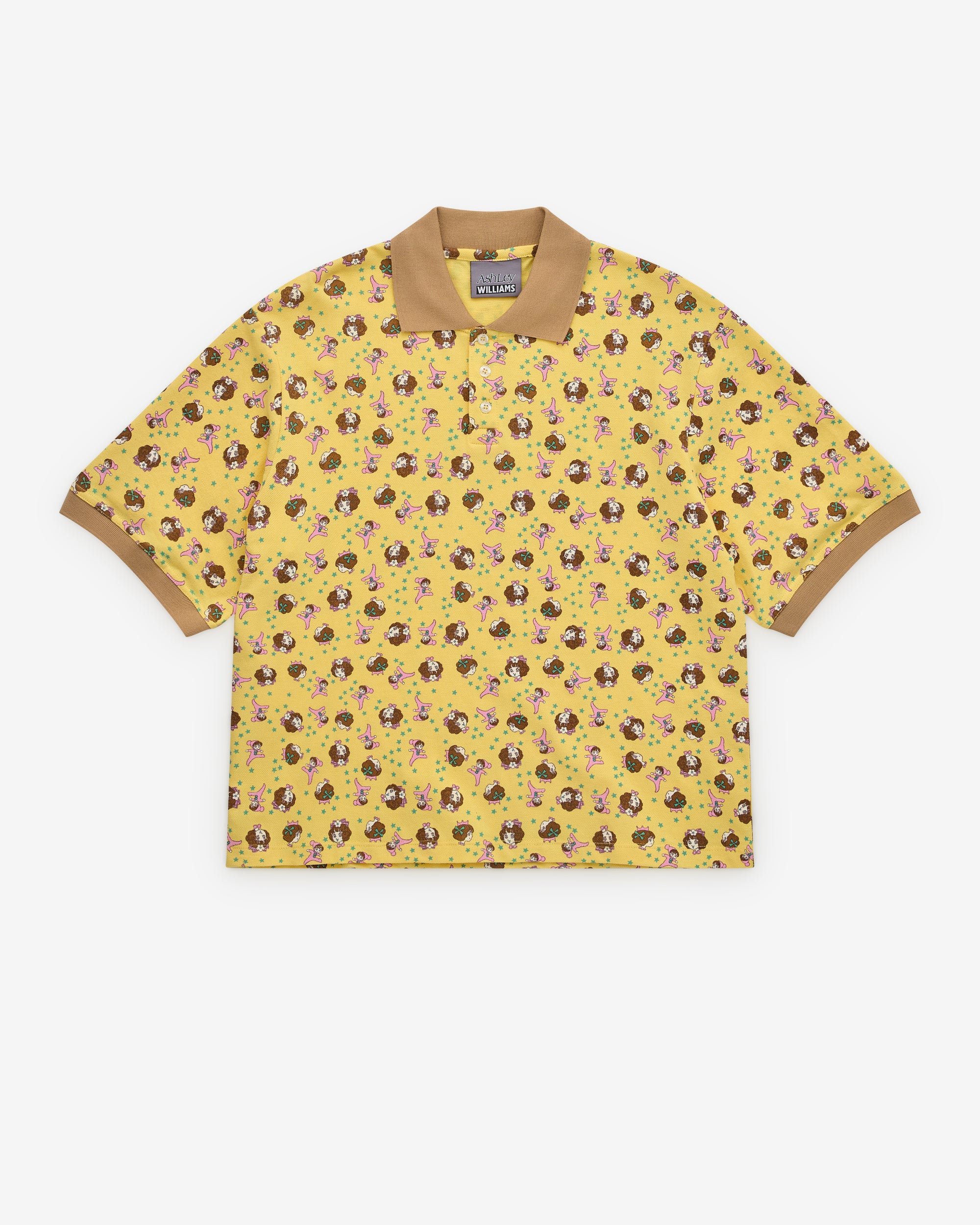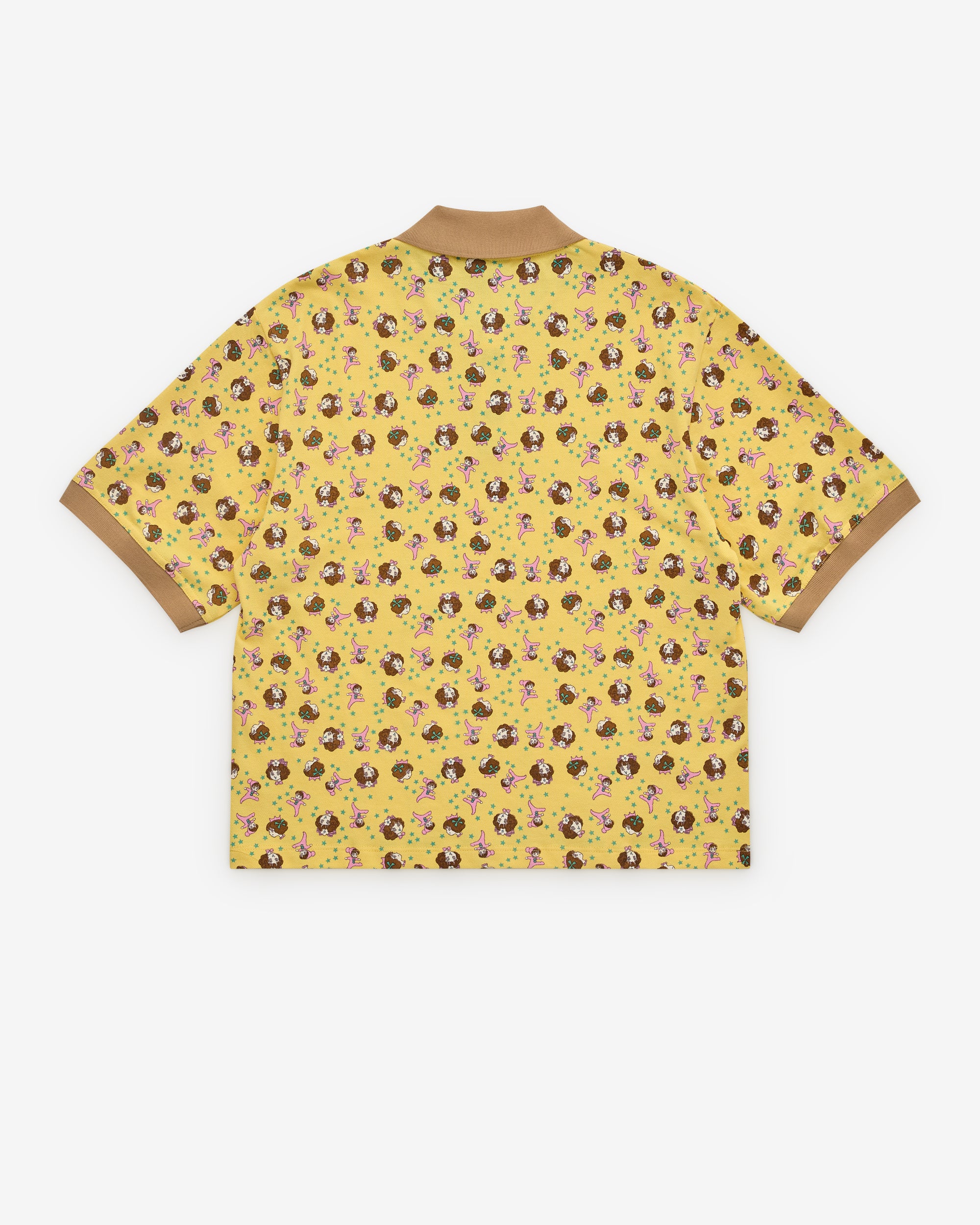 Point collarShort sleevesButton closureContrast trimsAll-over pattern