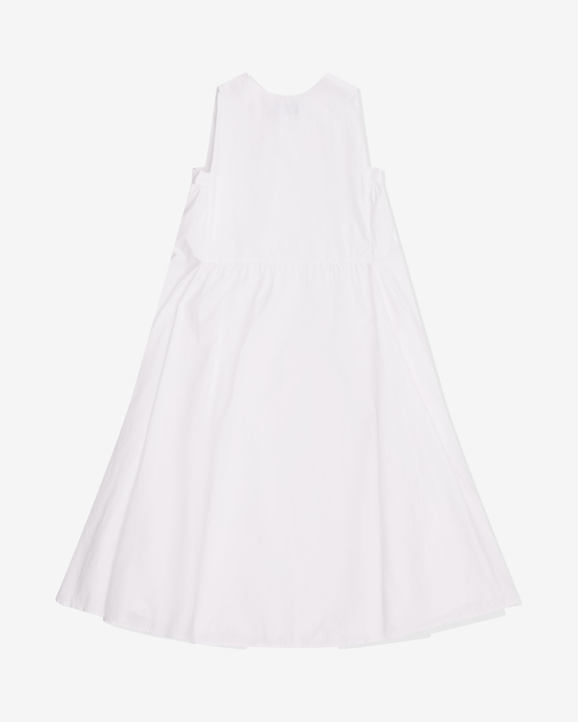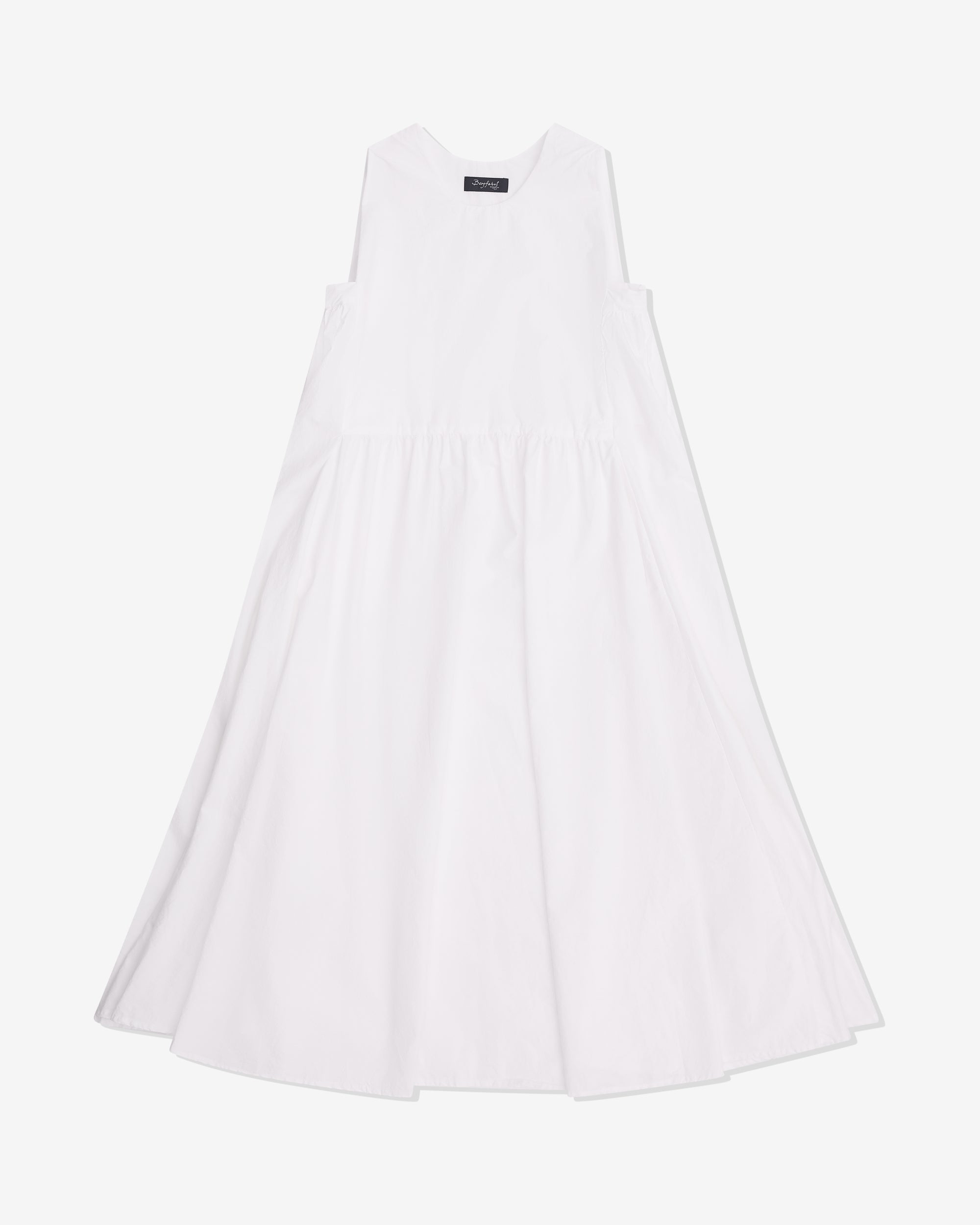 SleevelessA-line silhouetteMid-lengthRound neckGathered waist