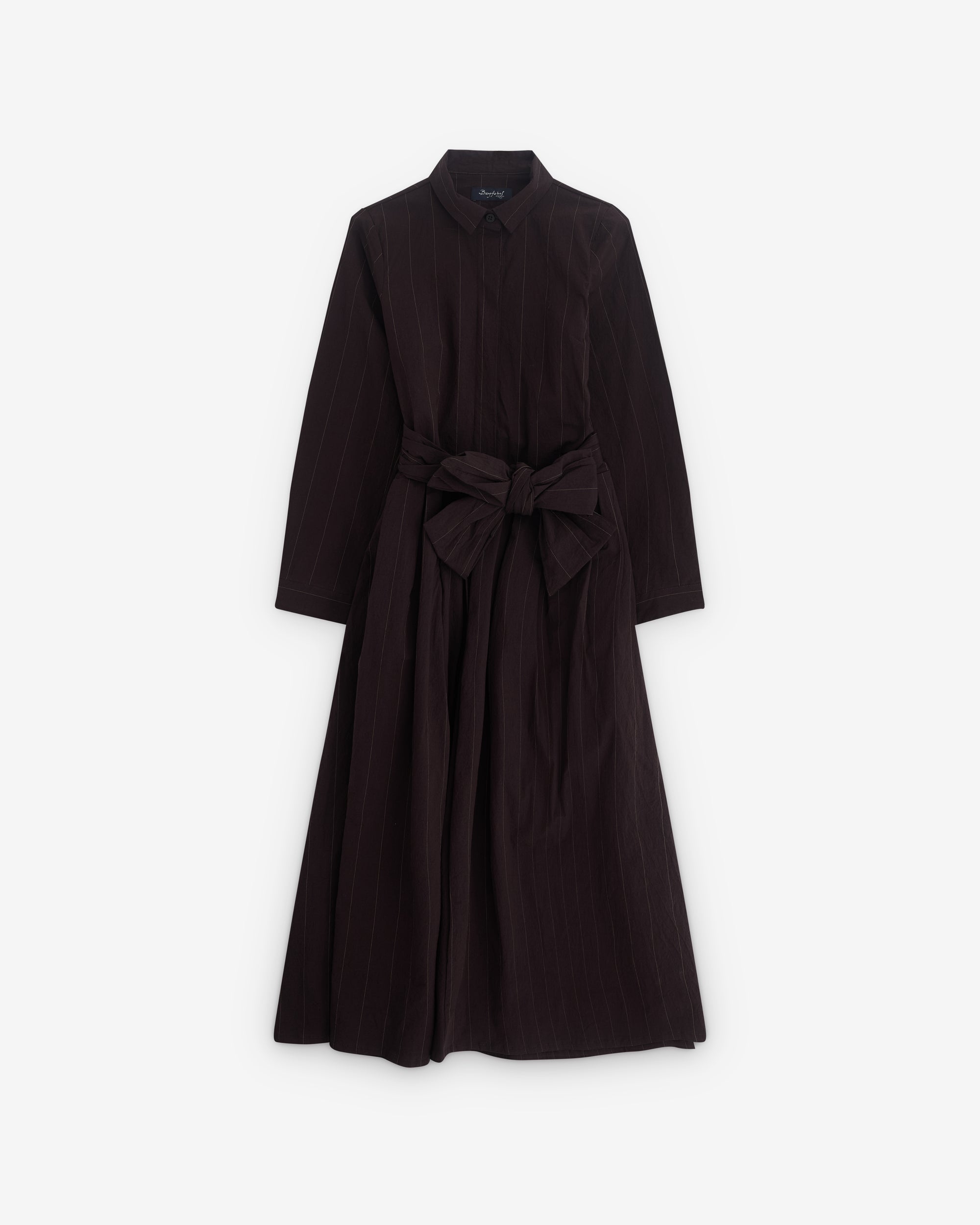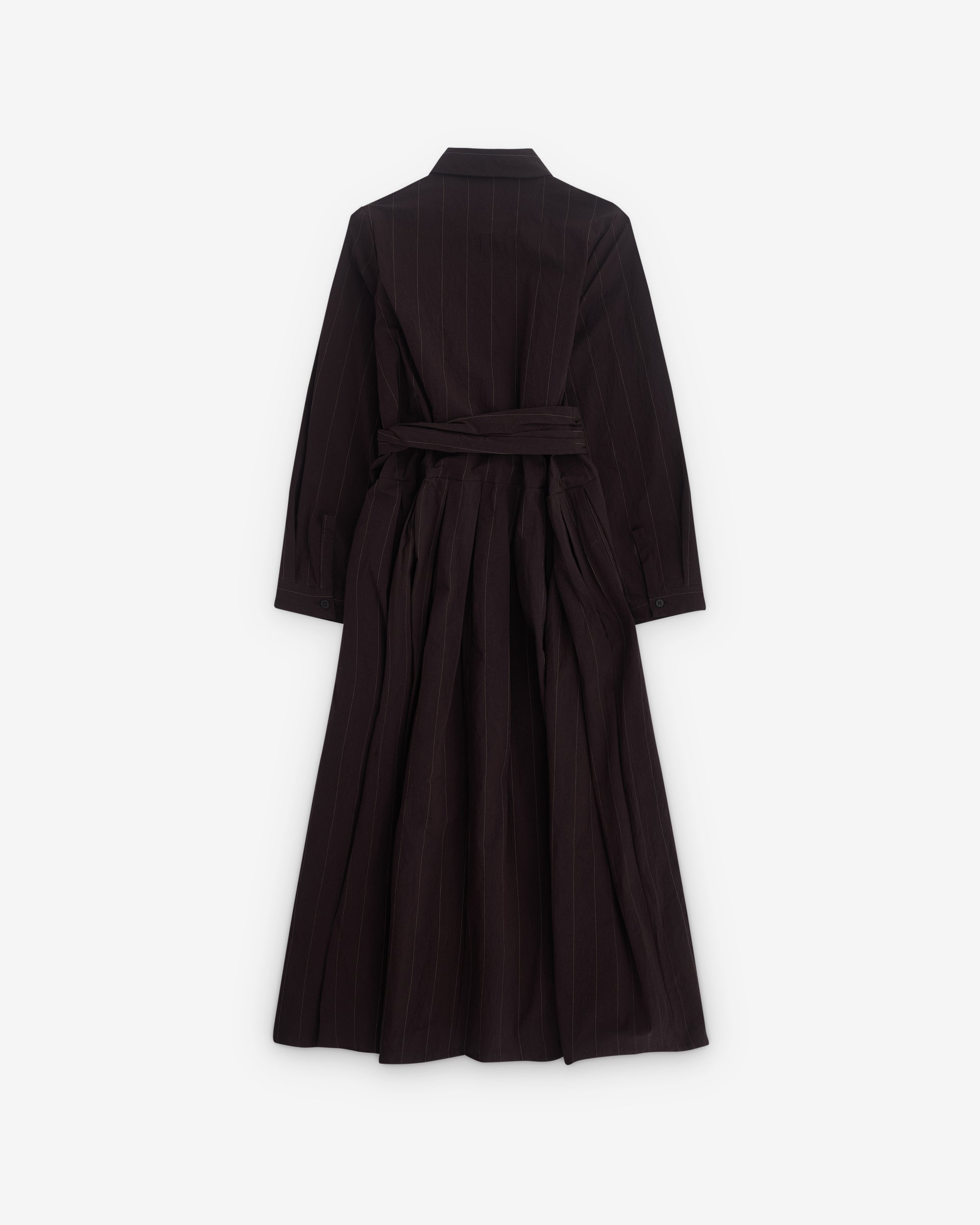 Point collarBeltedFull lengthConcealed button fasteningA-line silhouette