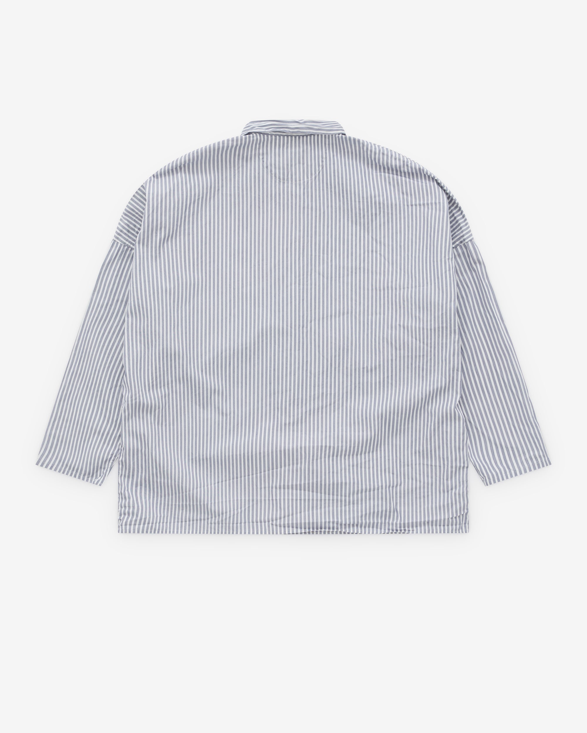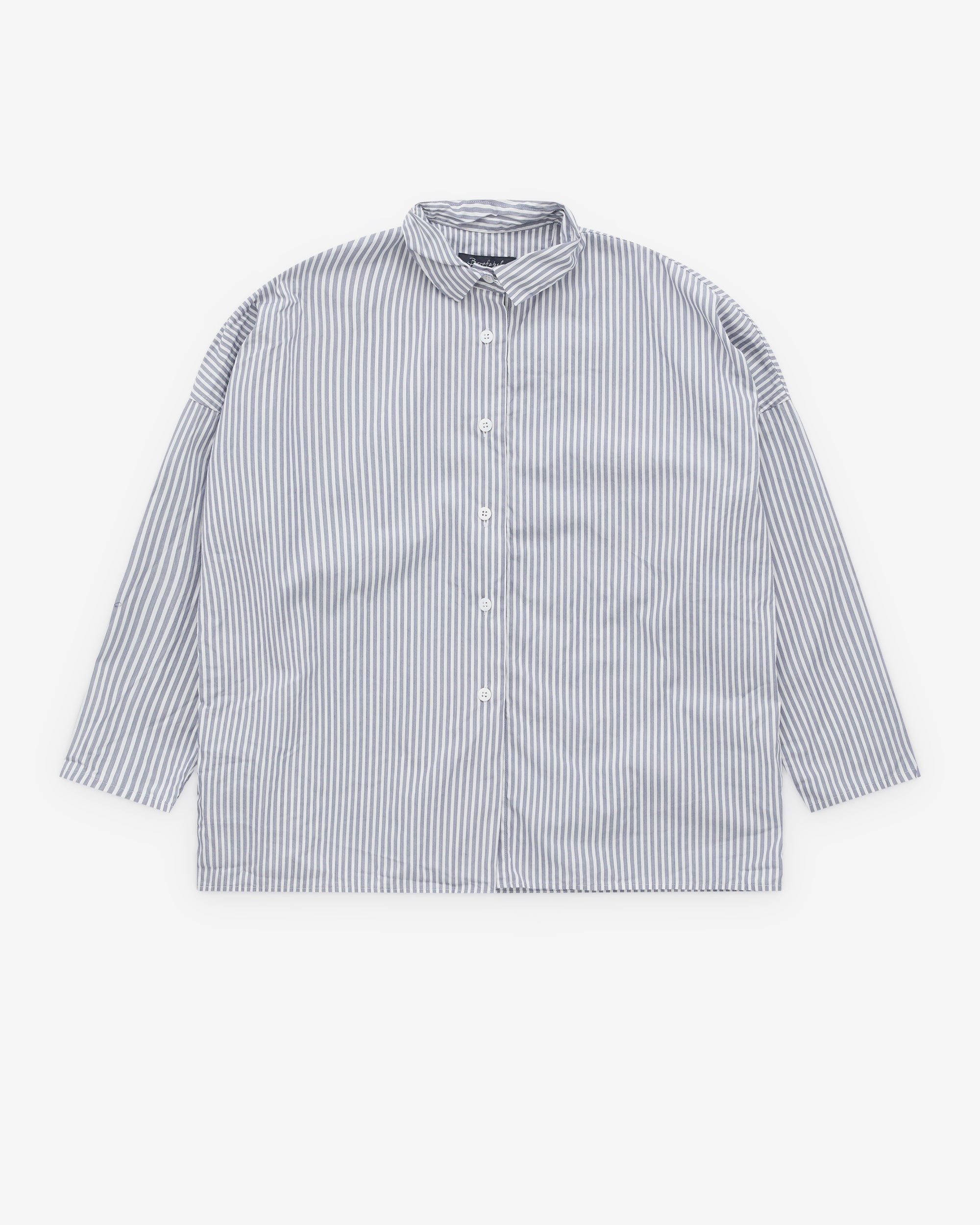 Cotton striped fabricClassic shirt collarFront button collarBoxy fit