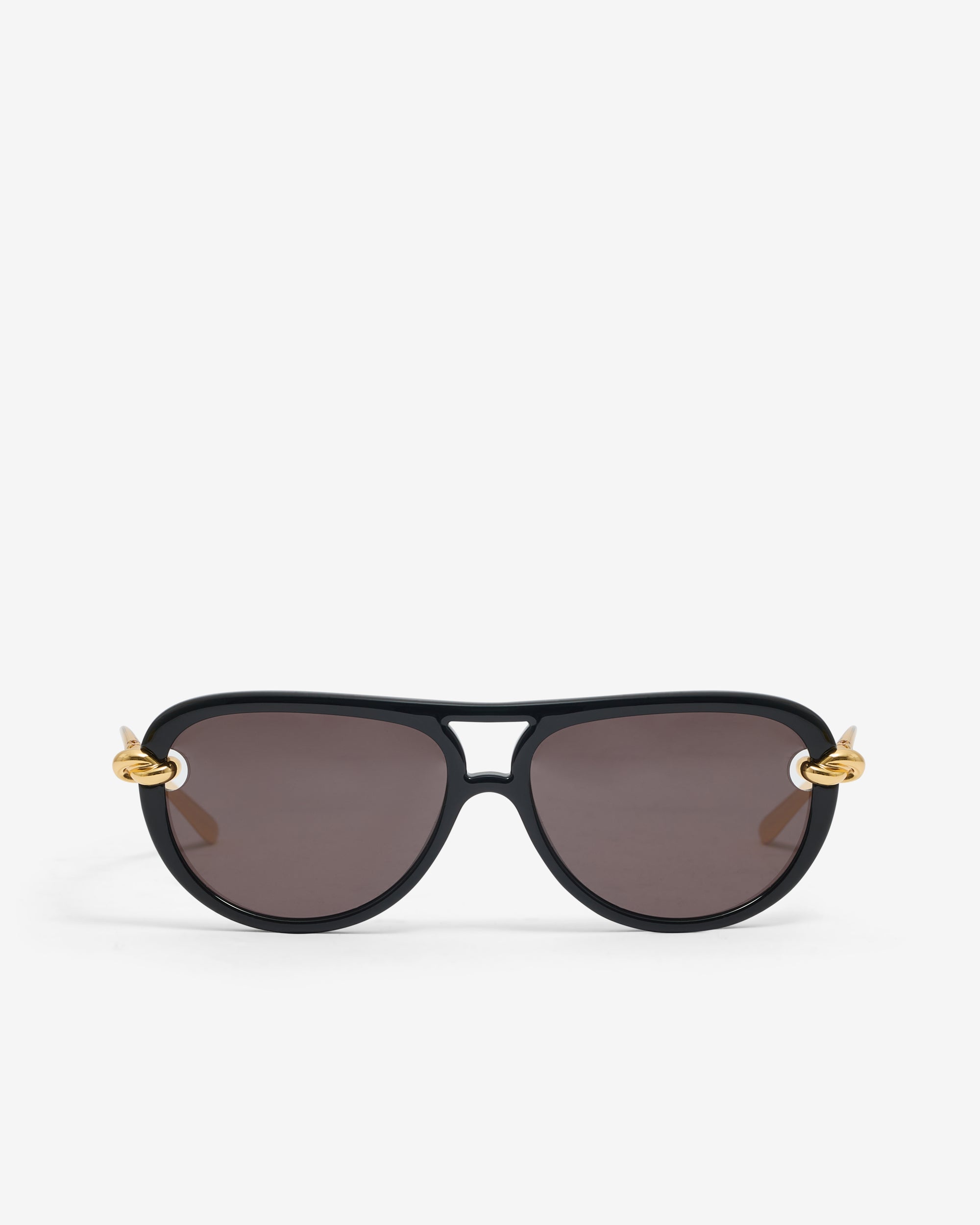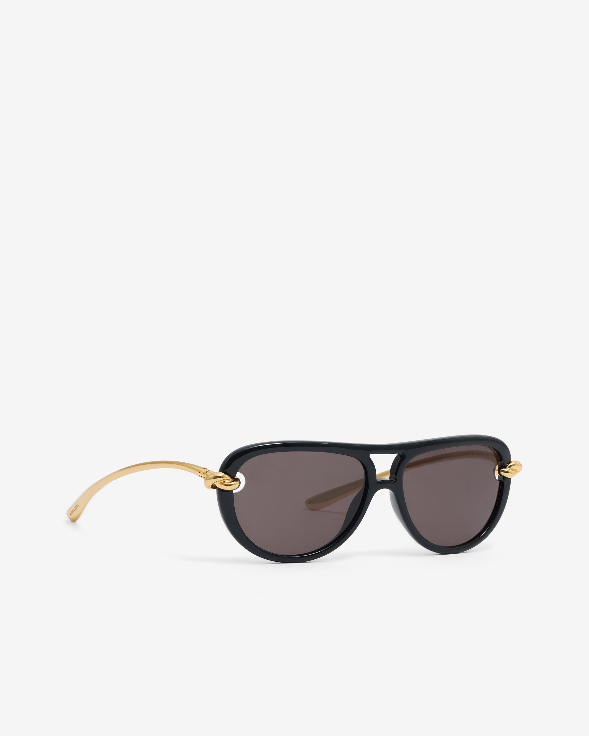 Aviator sunglasses in polyamide with sleek temples, featuring signature gold-finished knot details.