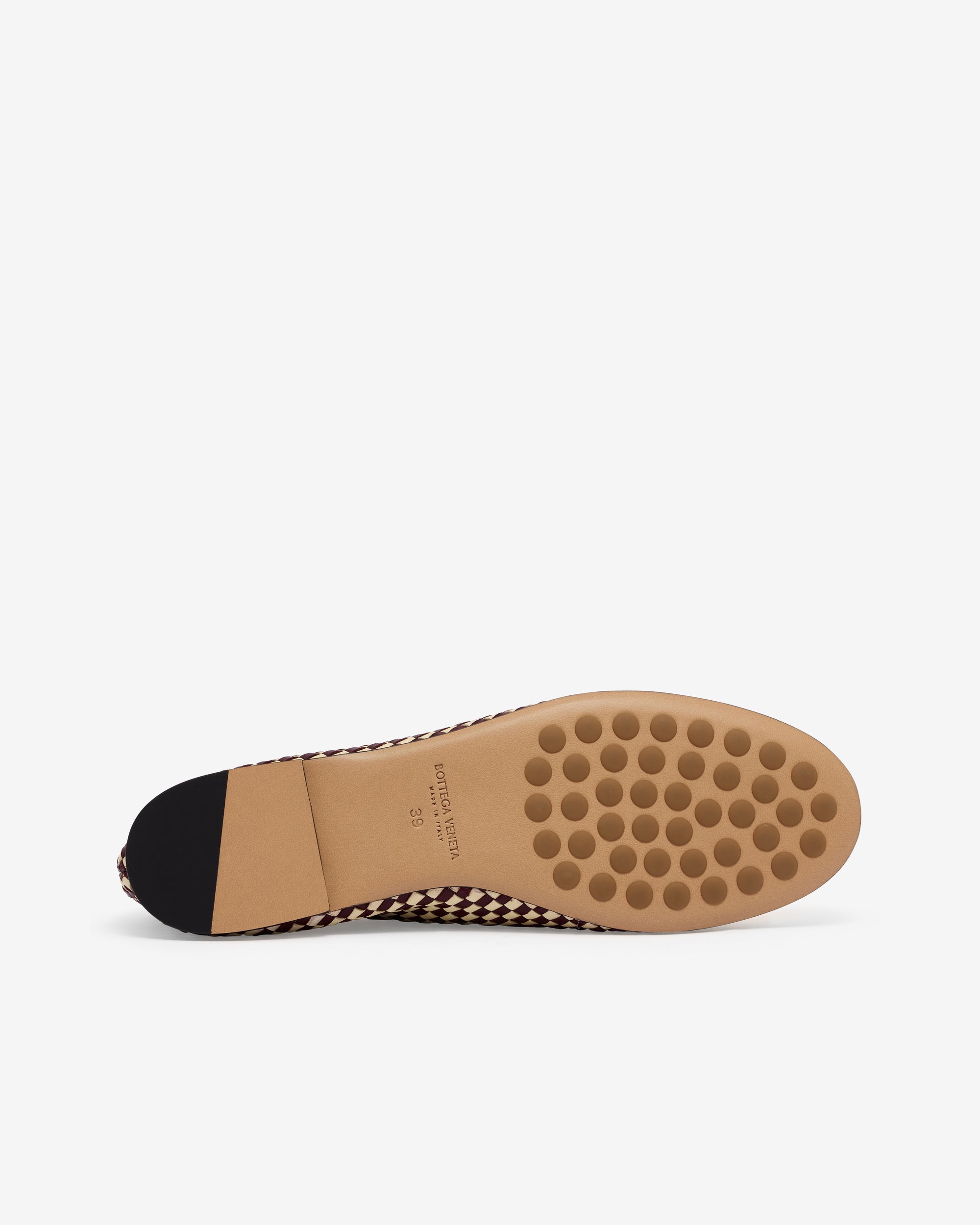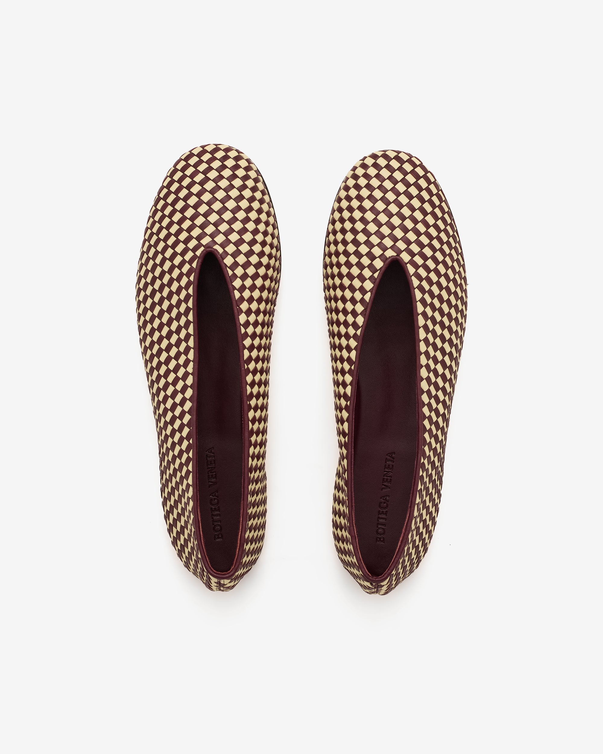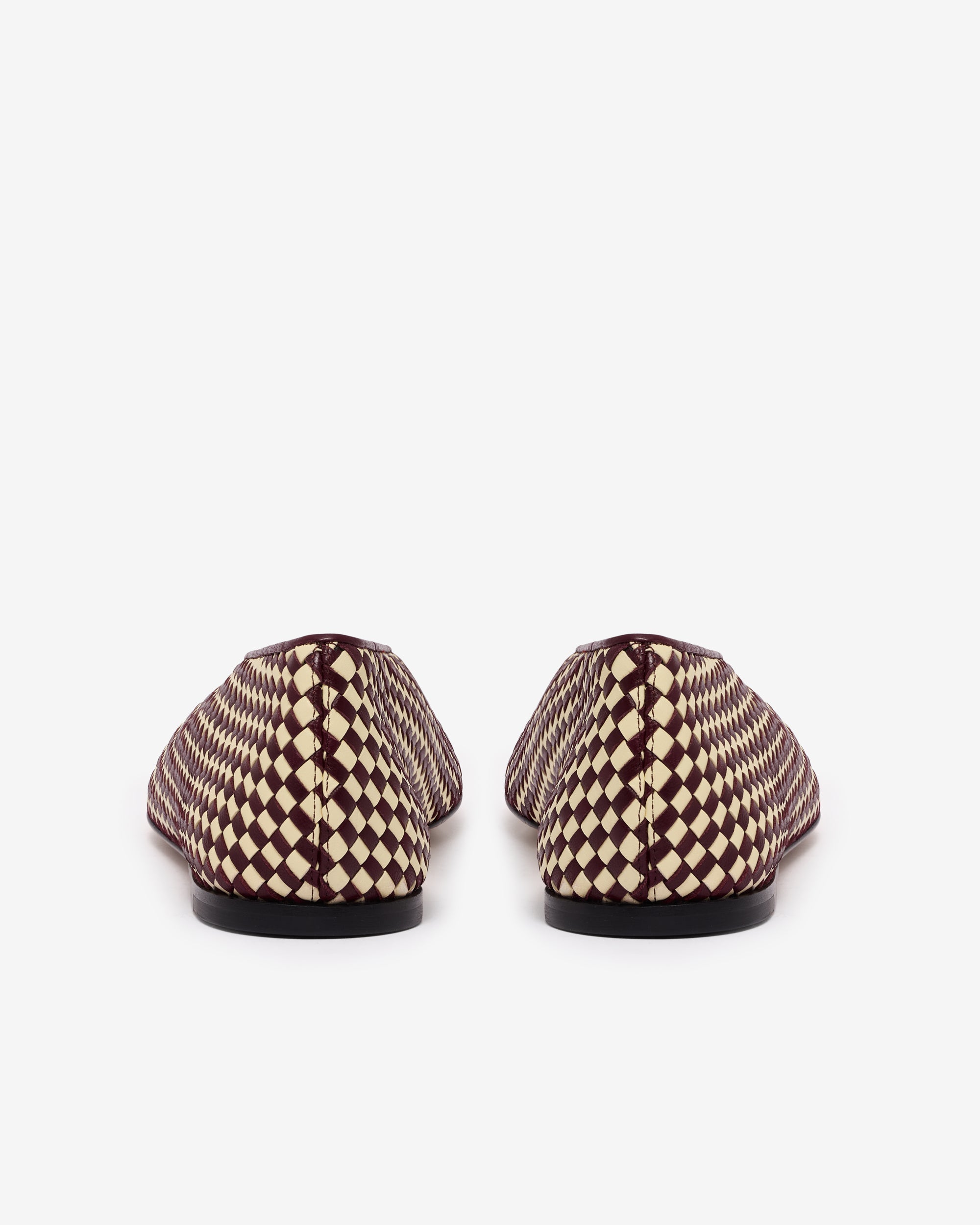 Ballerina in woven lambskin leather with supple construction and smooth piping detail.