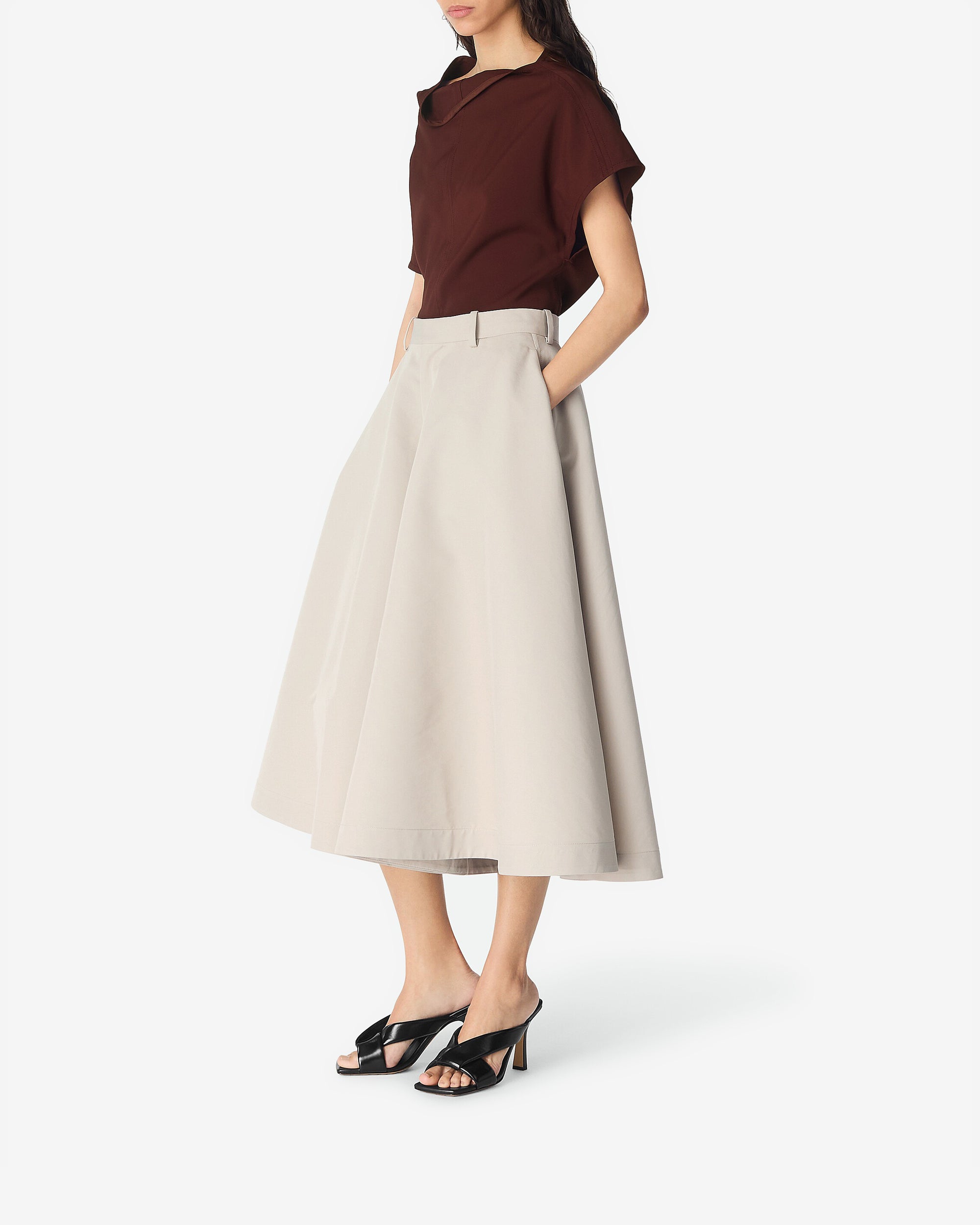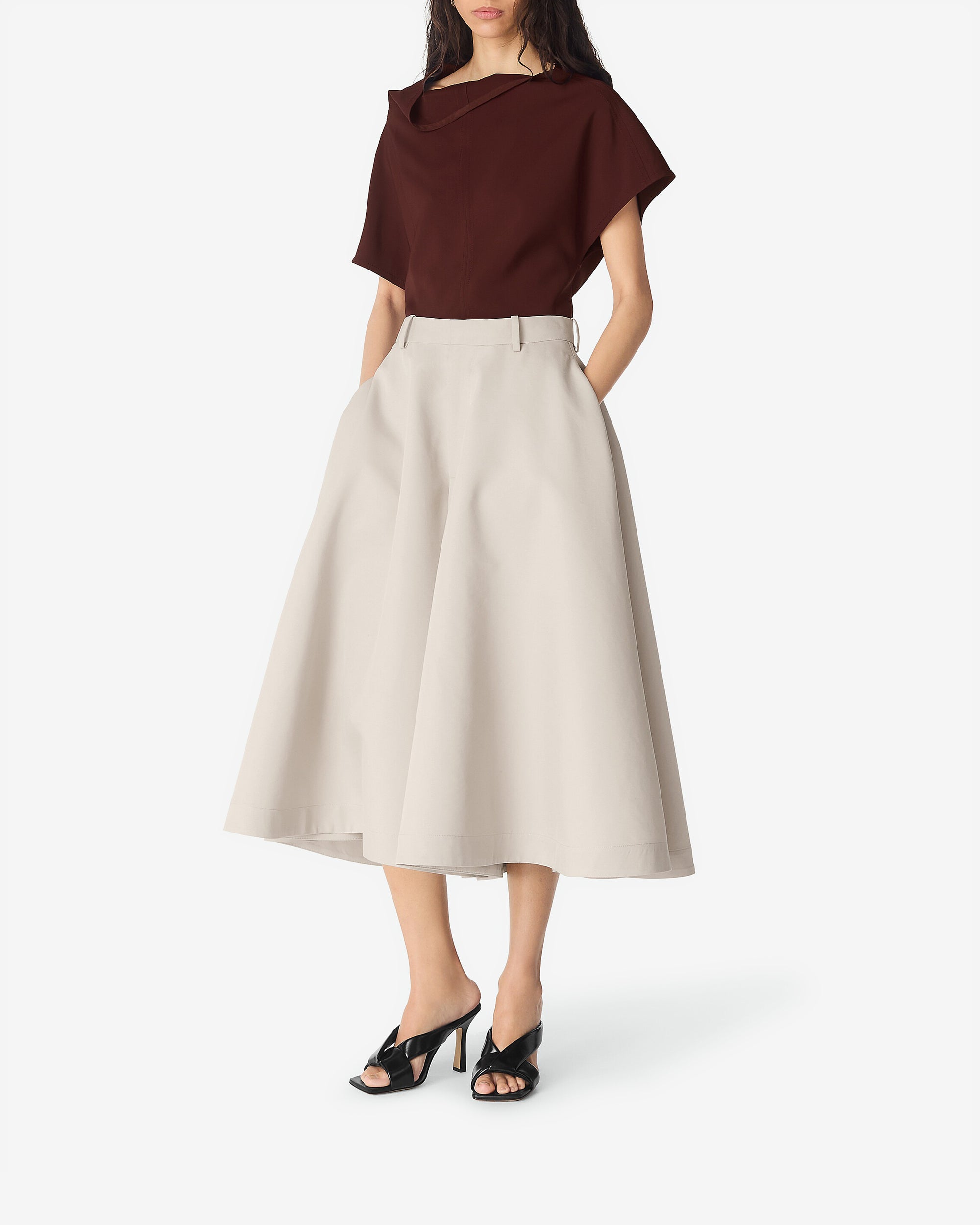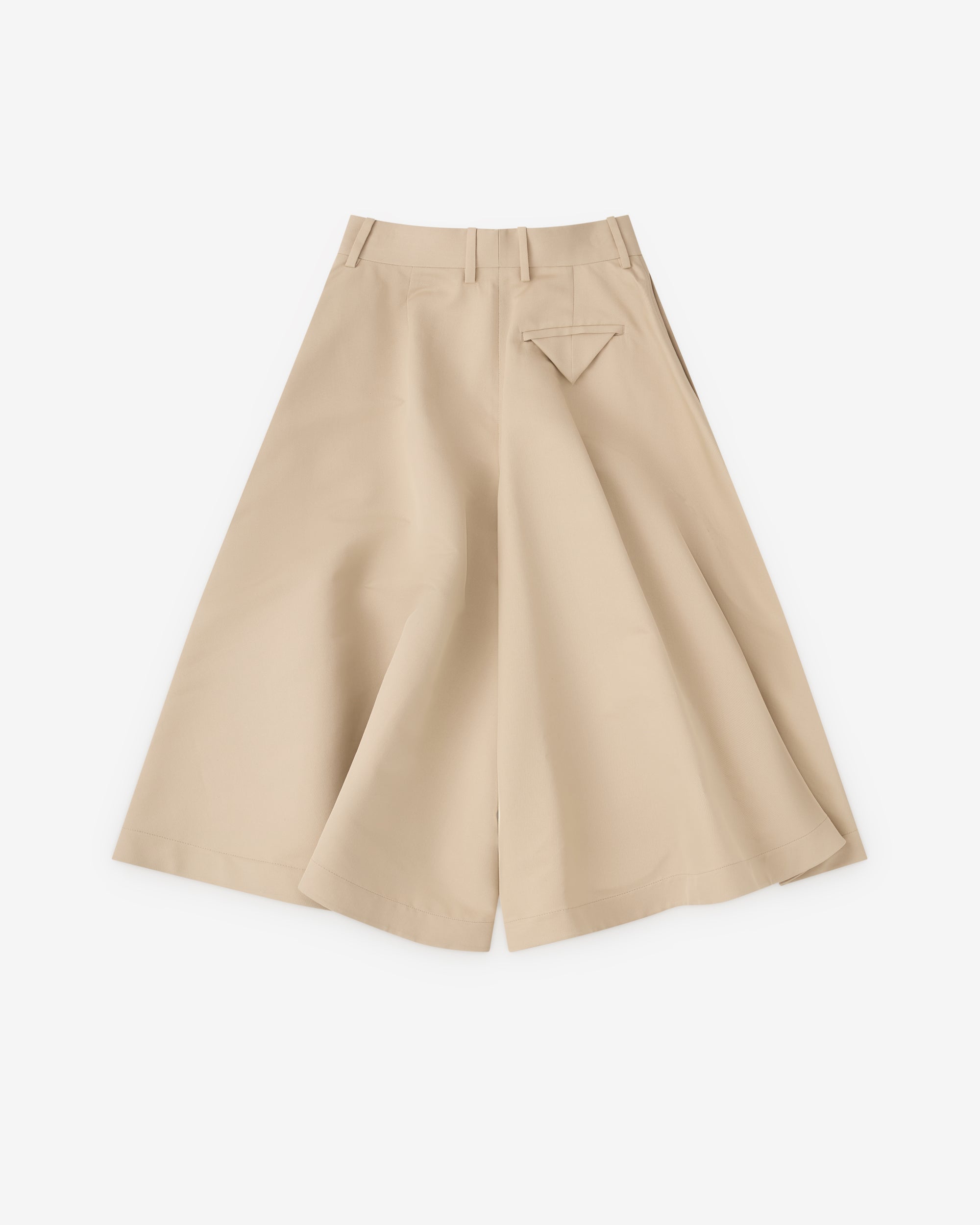 Silk and cotton twill A-line culotte Wide leg Zip, hook and button closure