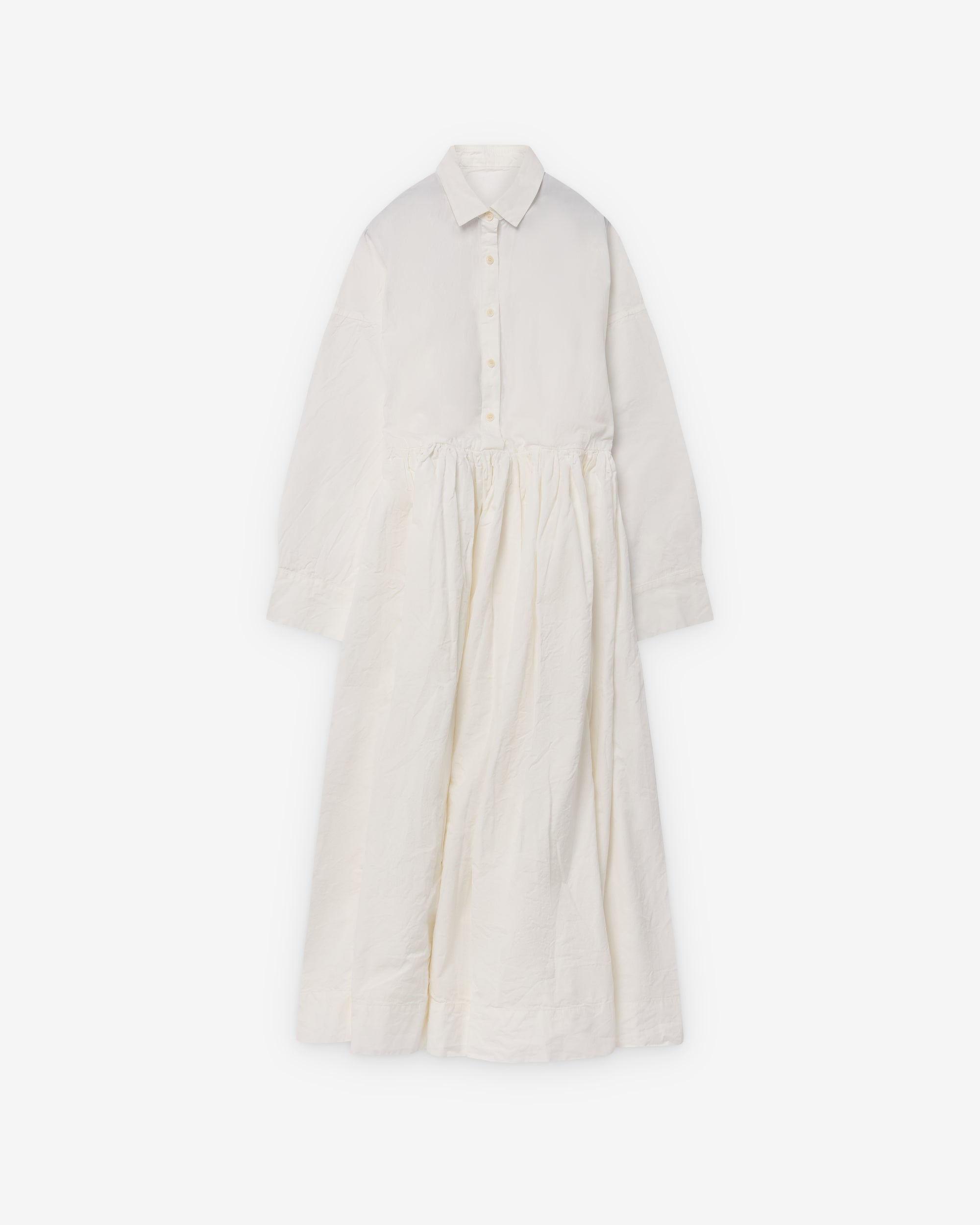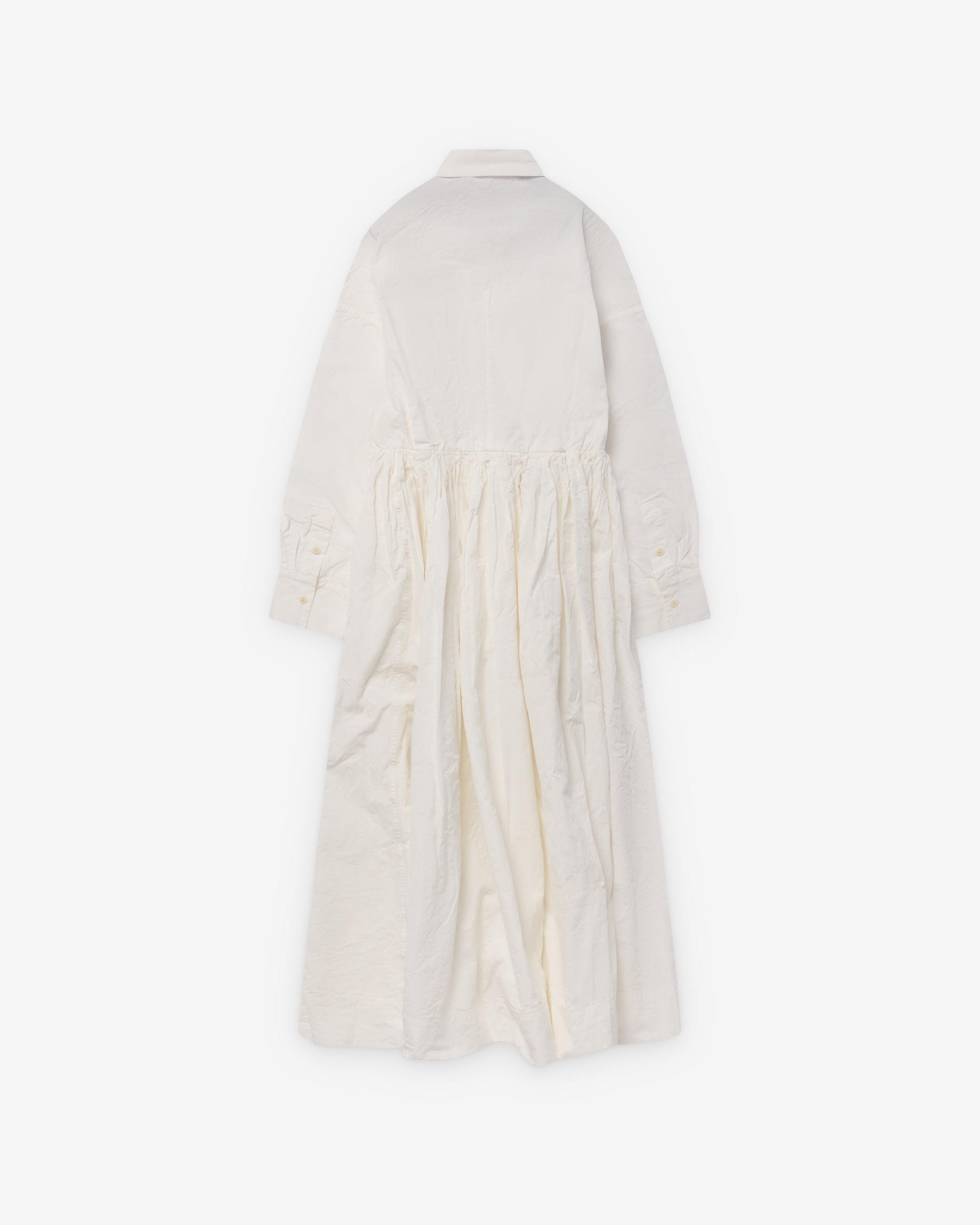Classic spread collarFront button closureCorozo buttonsButton cuffsFull length