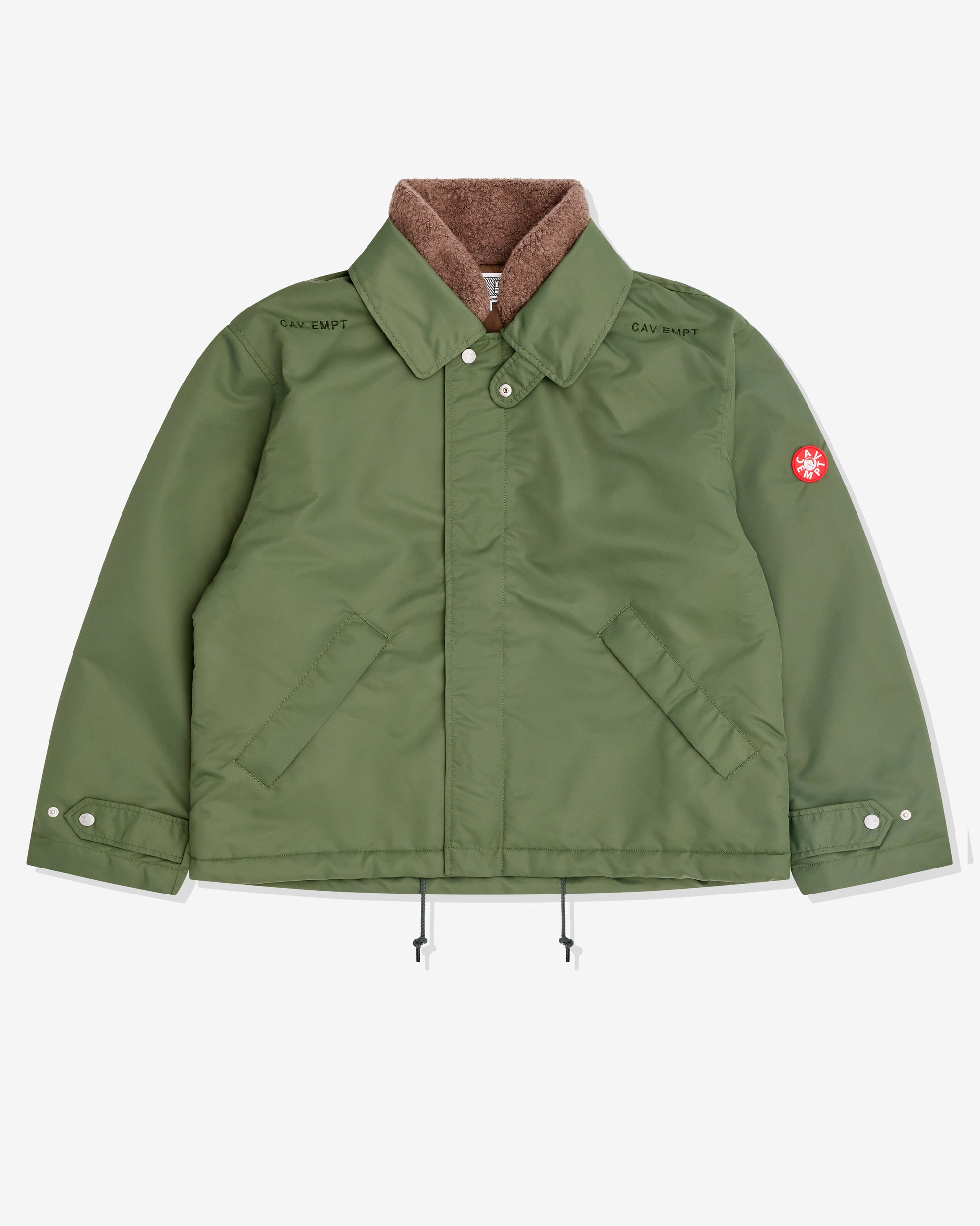 Snap button storm flap collarBoxy fitConcealed zip front closureEmbroidered branding at shouldersTwo front slant pocketsCav Empt patch at sleeveInternal Boa fleece lining Drawstring Hem