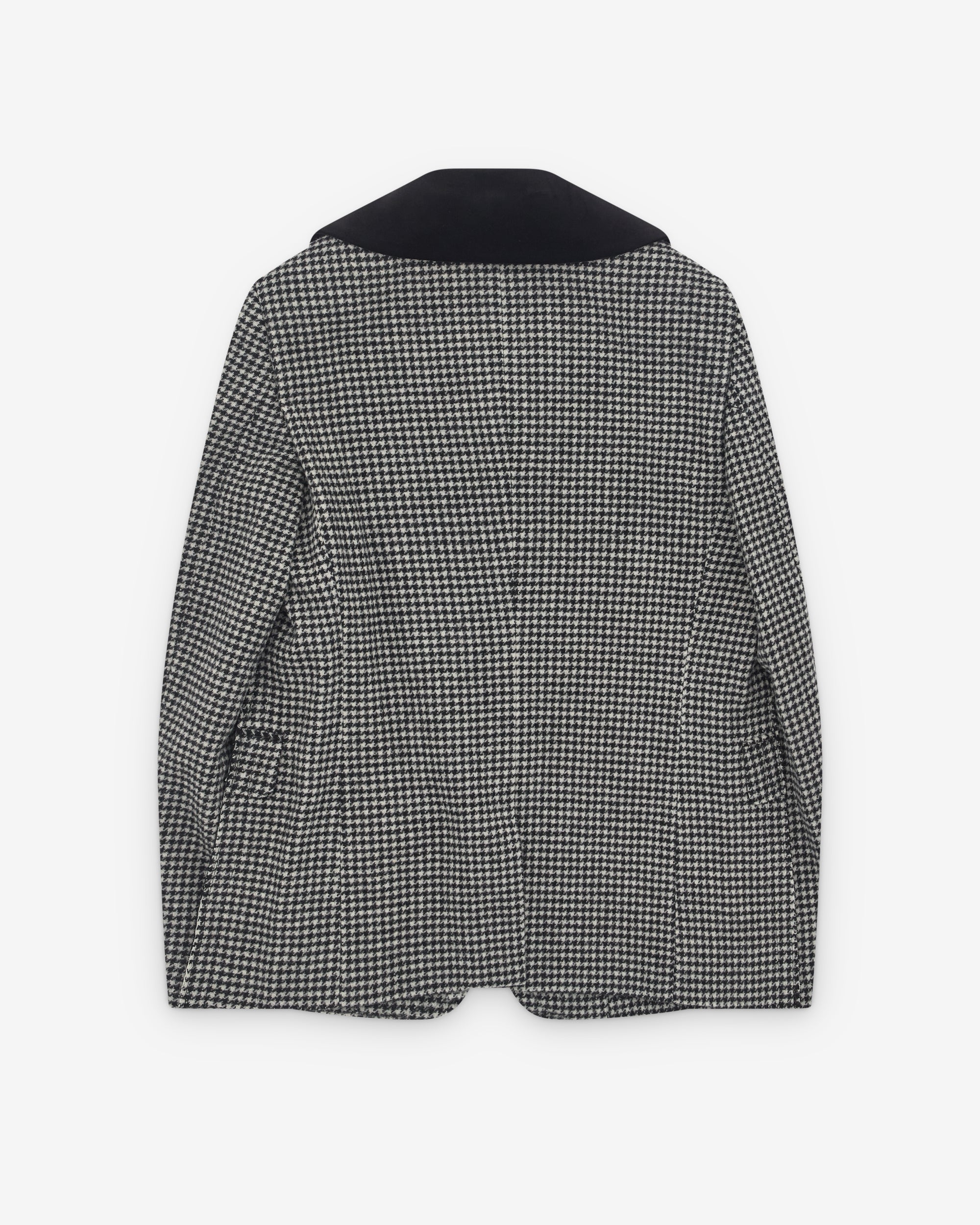 Exaggerated, contrast round collarButton closureFront flap pocketsWelt chest pocketLined