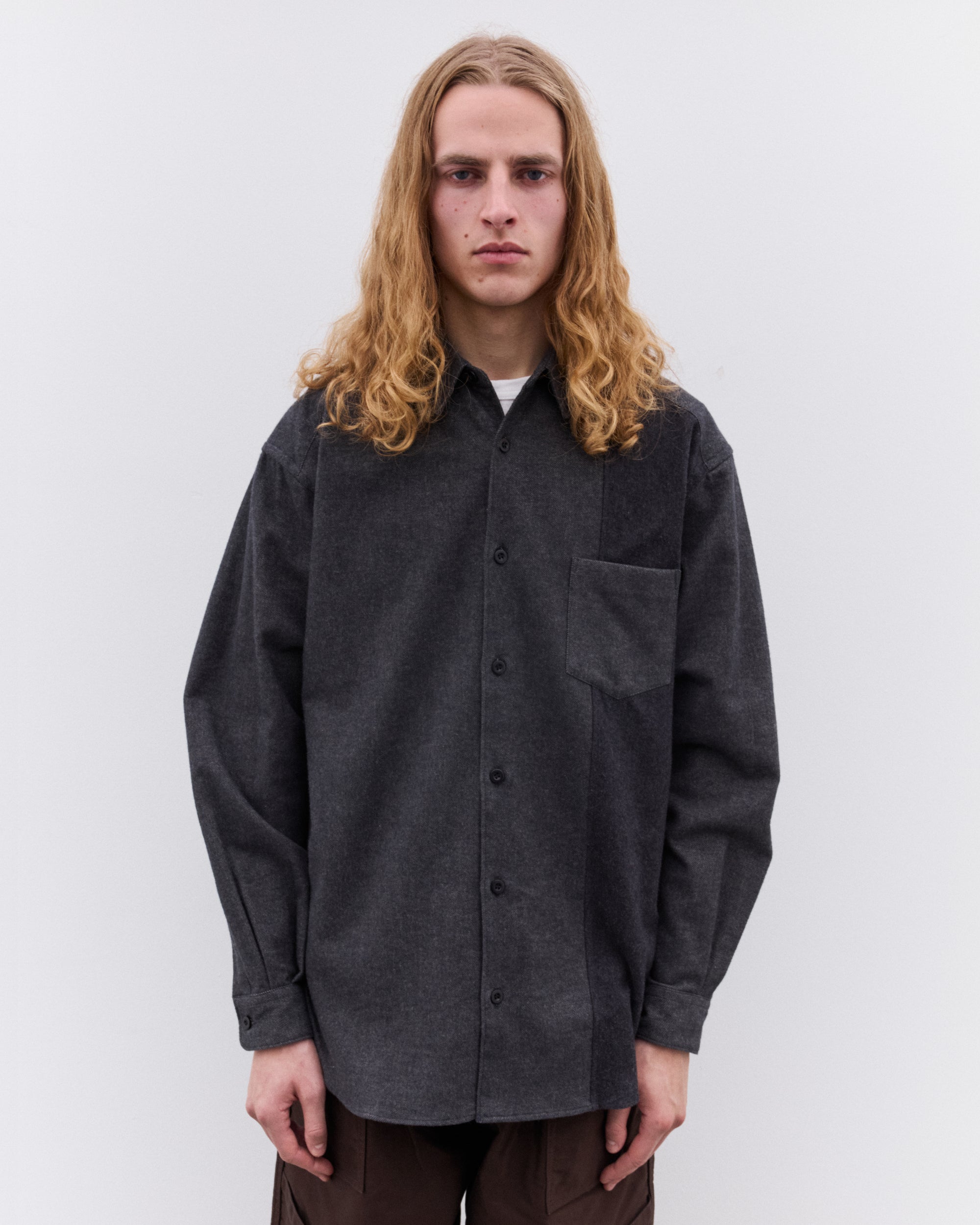 Point collarButton placketCurved hemDrop shoulderChest patch pocket