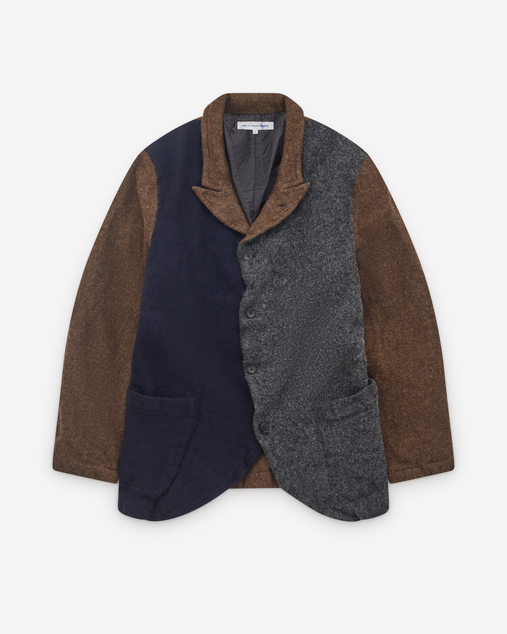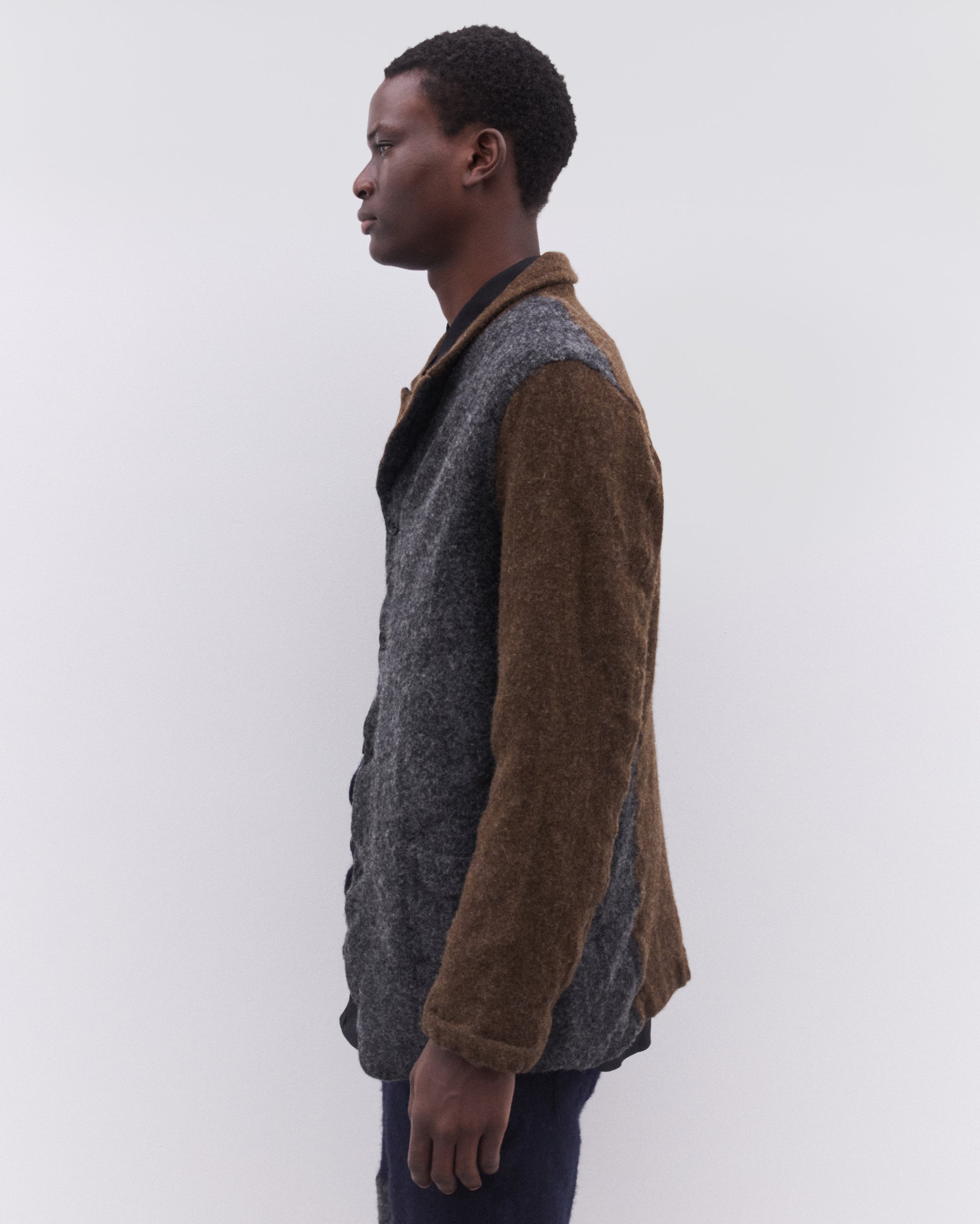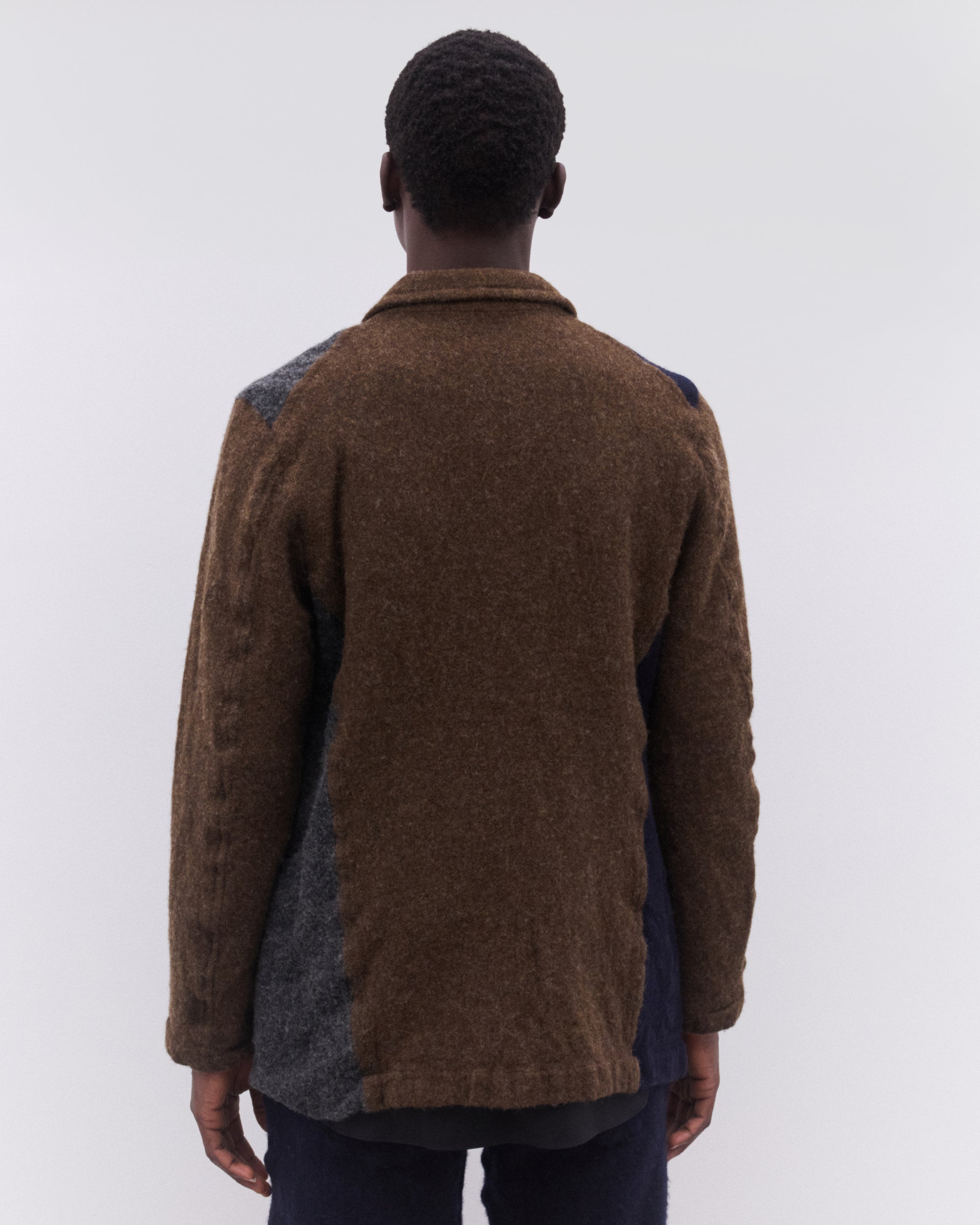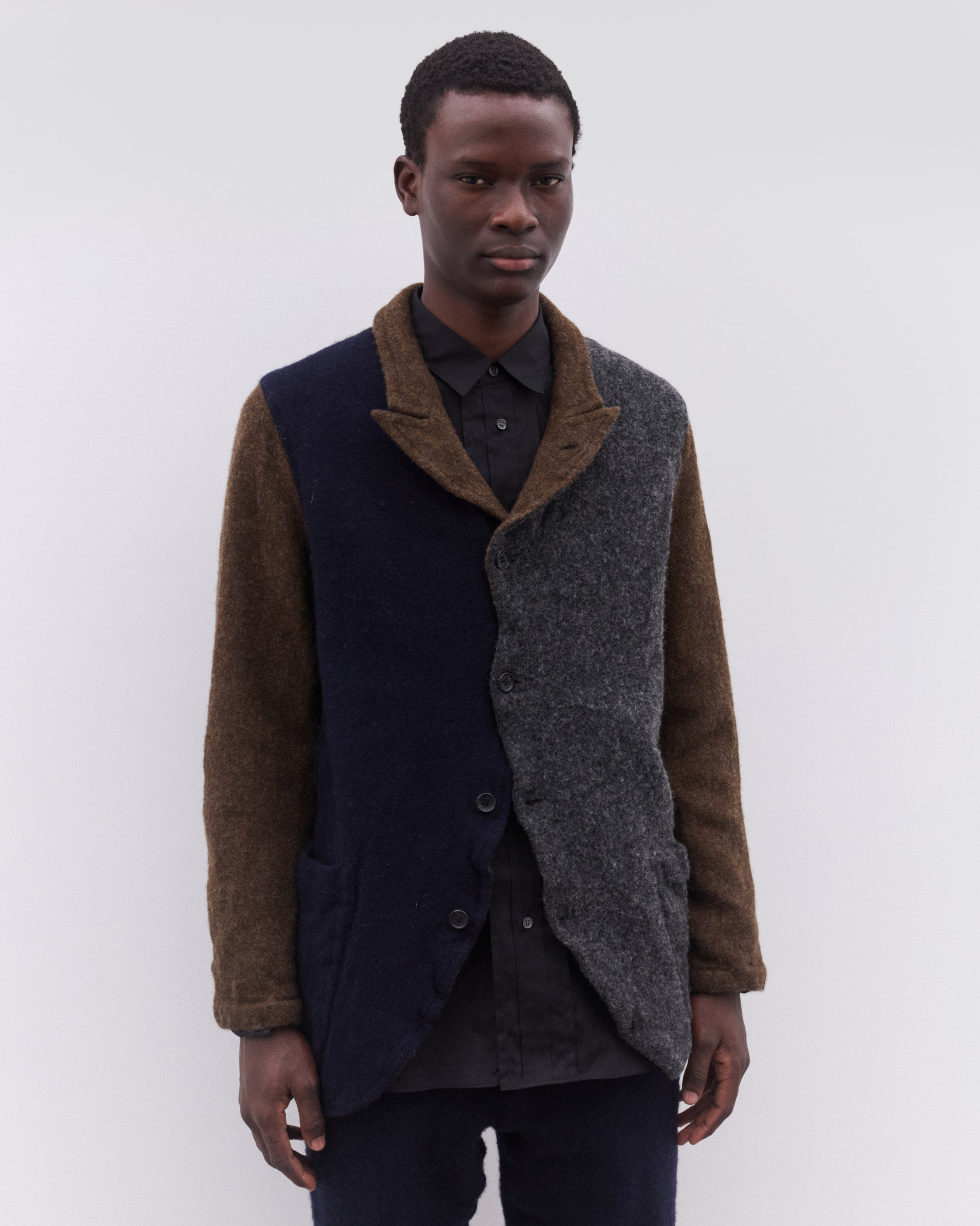 Notch lapelsButton fasteningPatch pocketsColour block sleeves and bodyLined90% Wool, 10% NylonMade in France