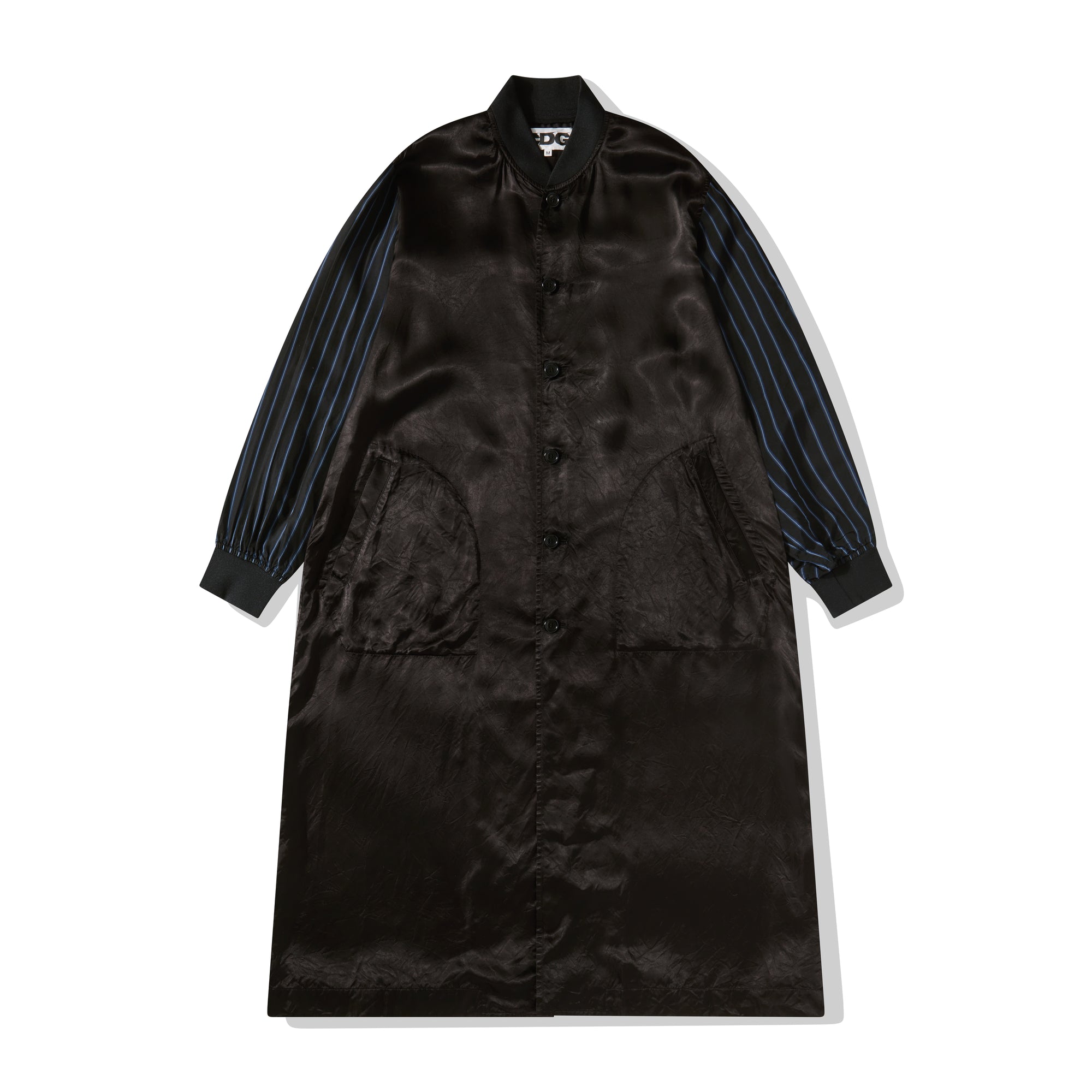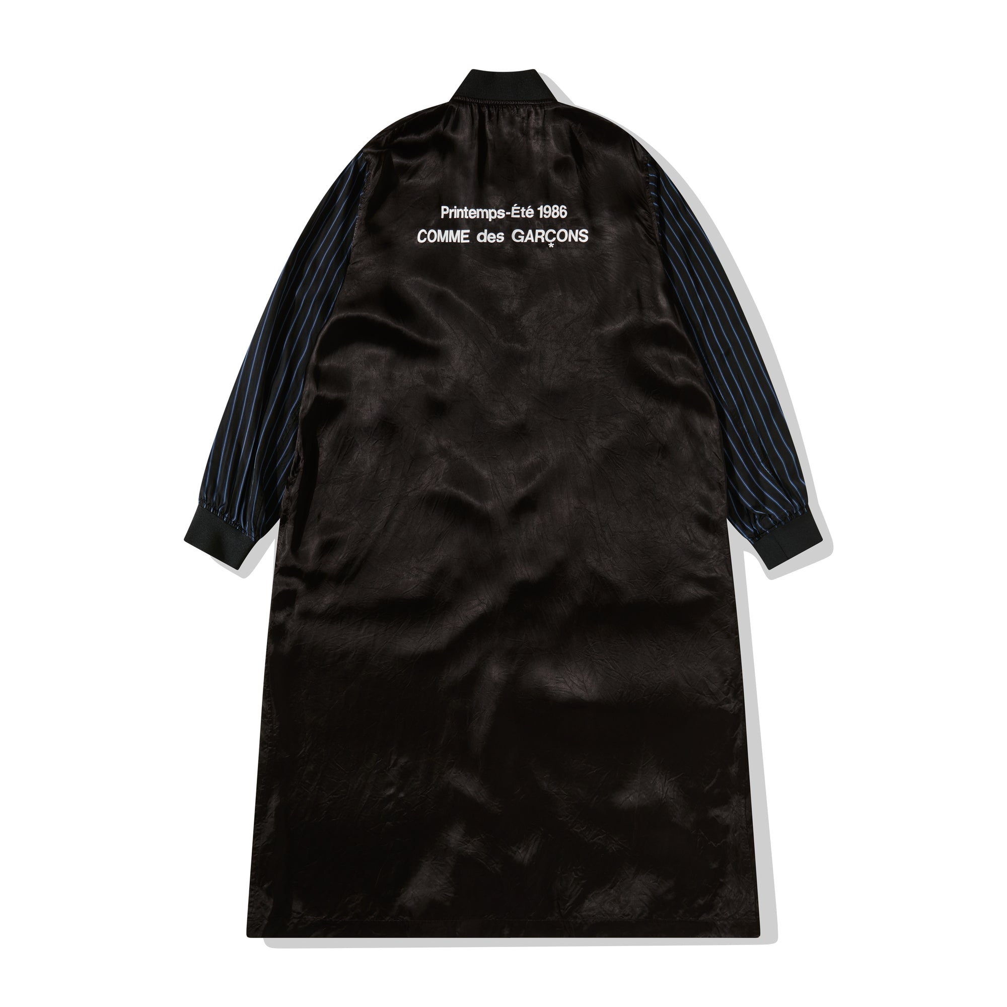 Ribbed collar and cuffsTwo side pocketsContrast pinstripe sleevesCentre front button fasteningPrinted back graphic