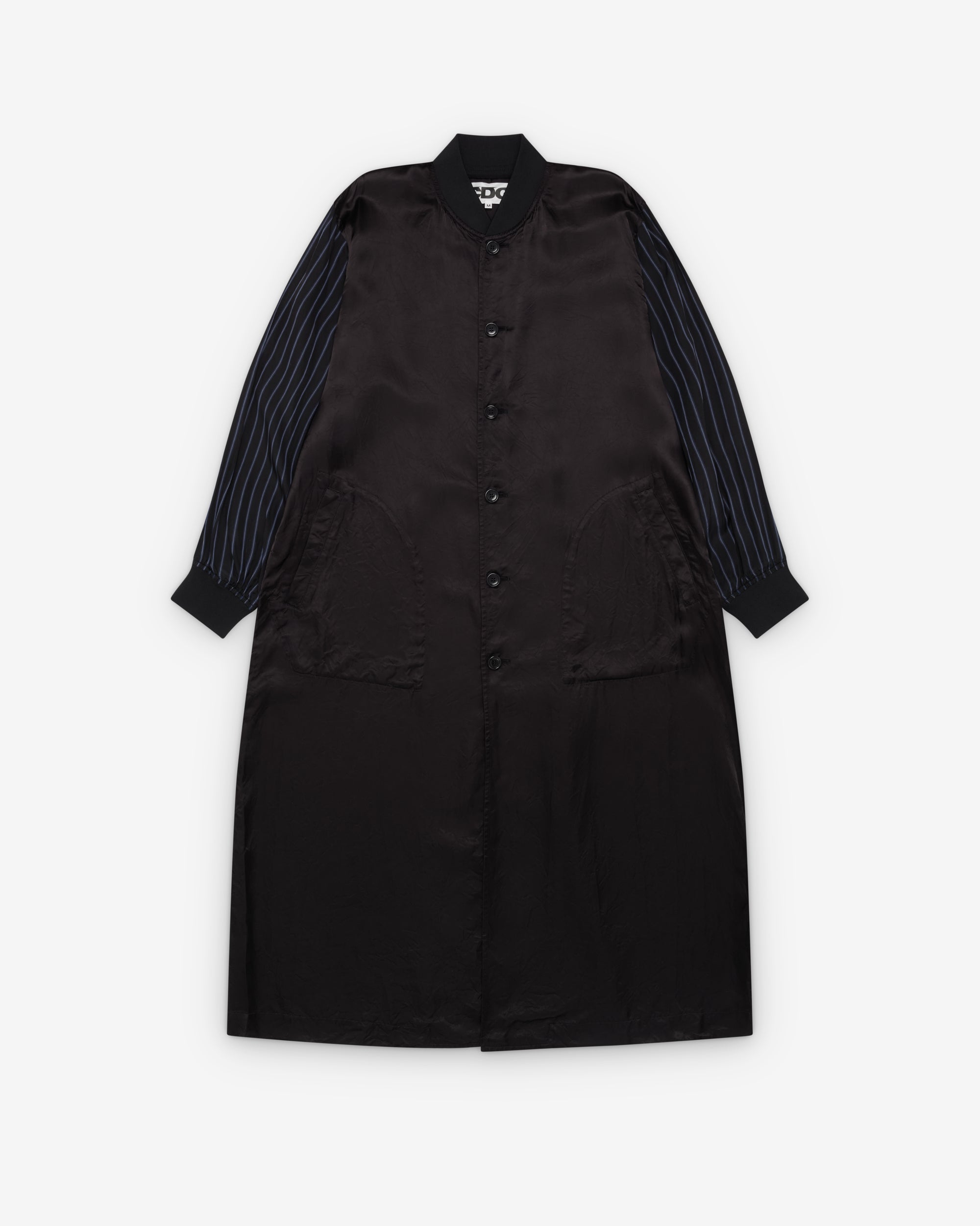 Ribbed collar and cuffsTwo side pocketsContrast pinstripe sleevesCentre front button fasteningPrinted back graphic