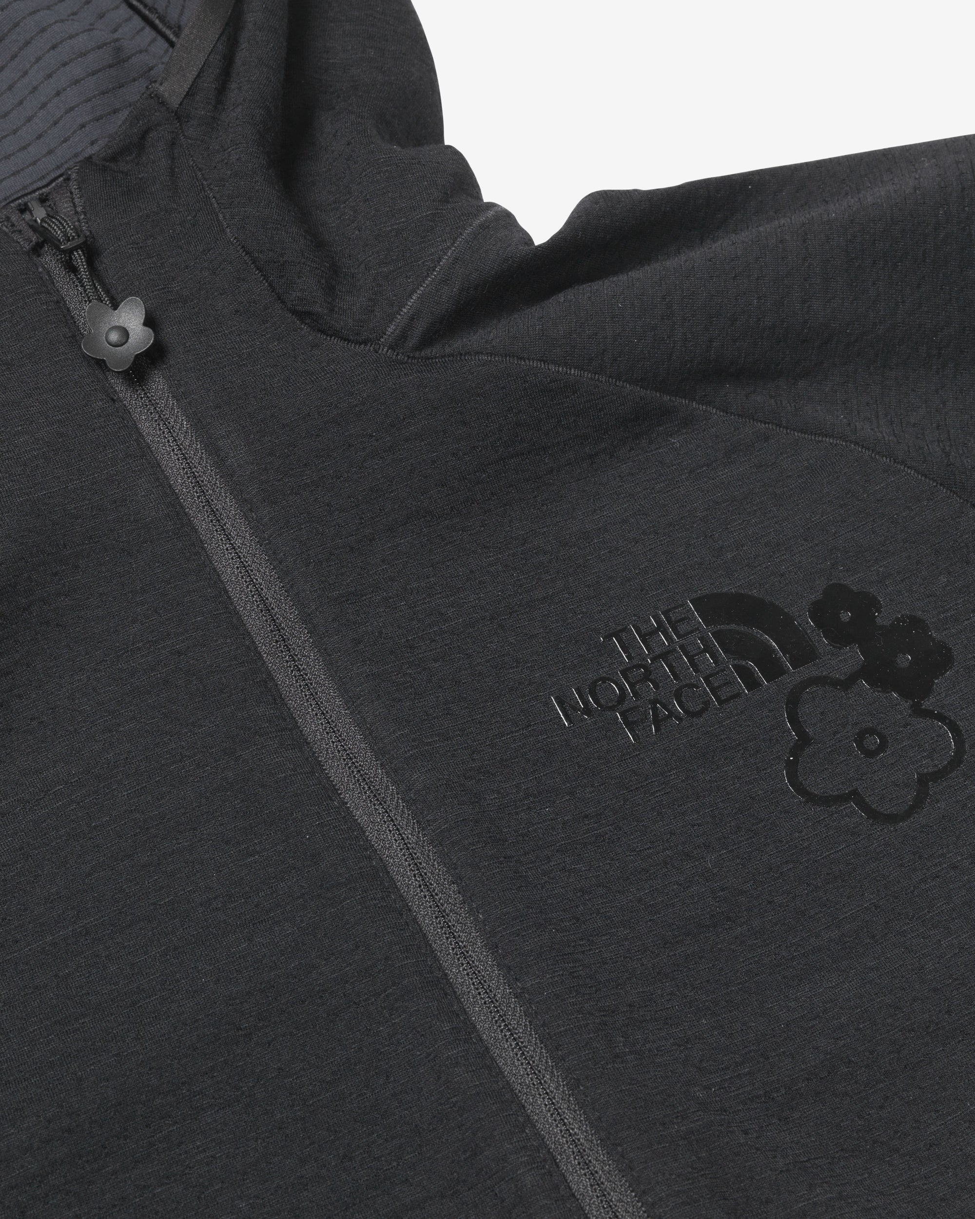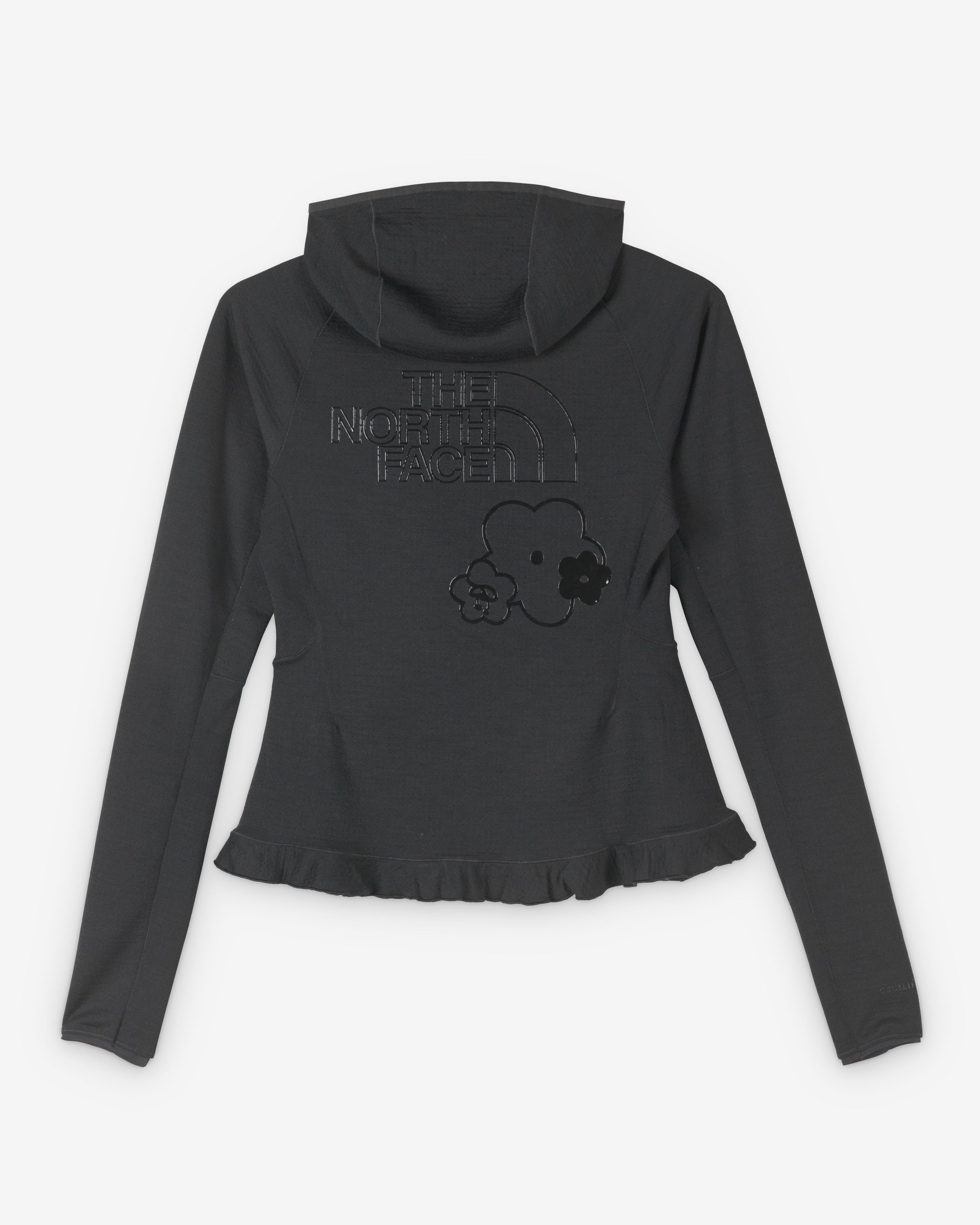 Subtle romantic detailing contrasts the technical functionality, bringing the elegance of Cecilie Bahnsen to the heart of the mountain-ready wardrobe.