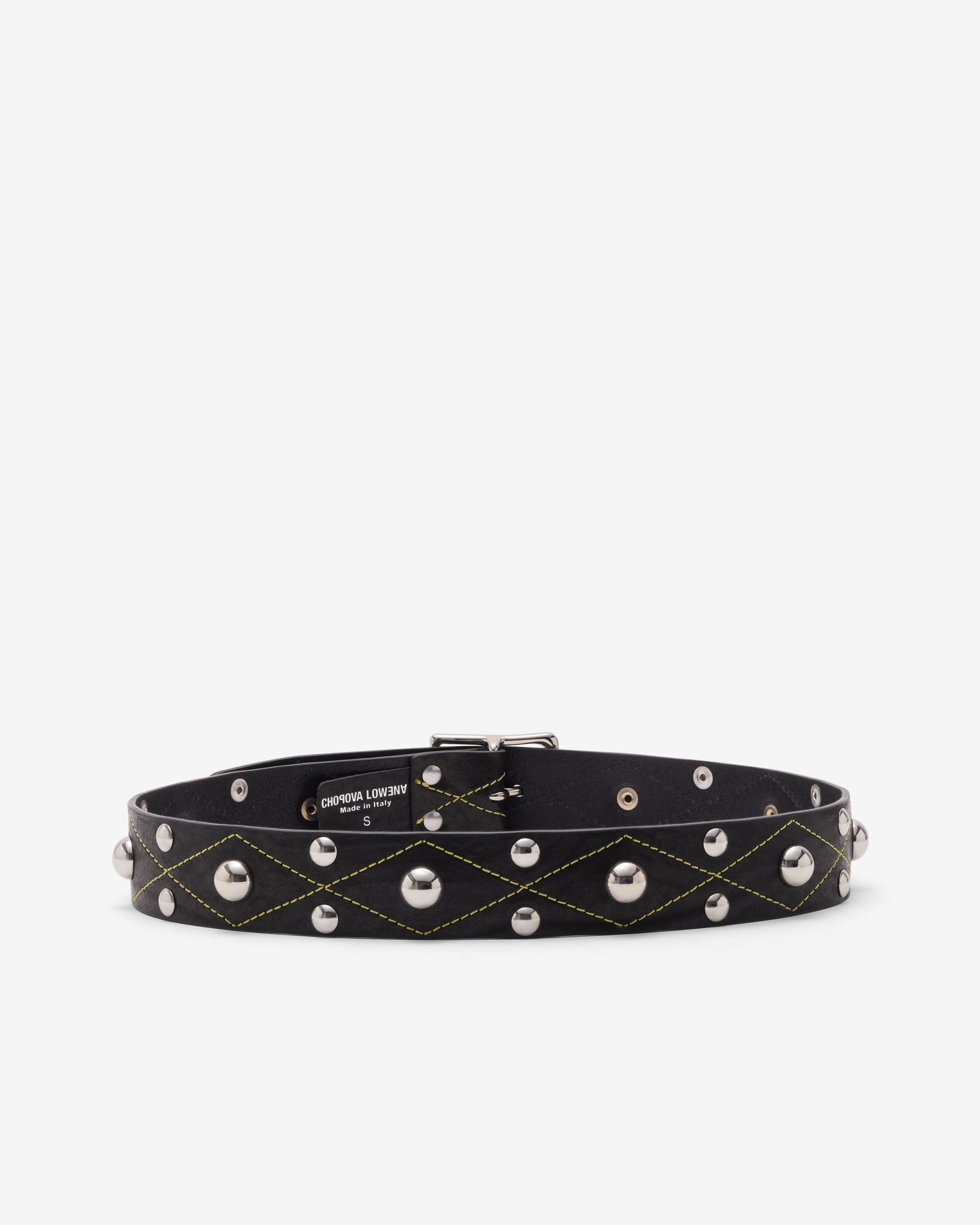 Black leather beltContrast stitchingStud detailingRectangle buckleAdjustable100% LeatherMade in Italy