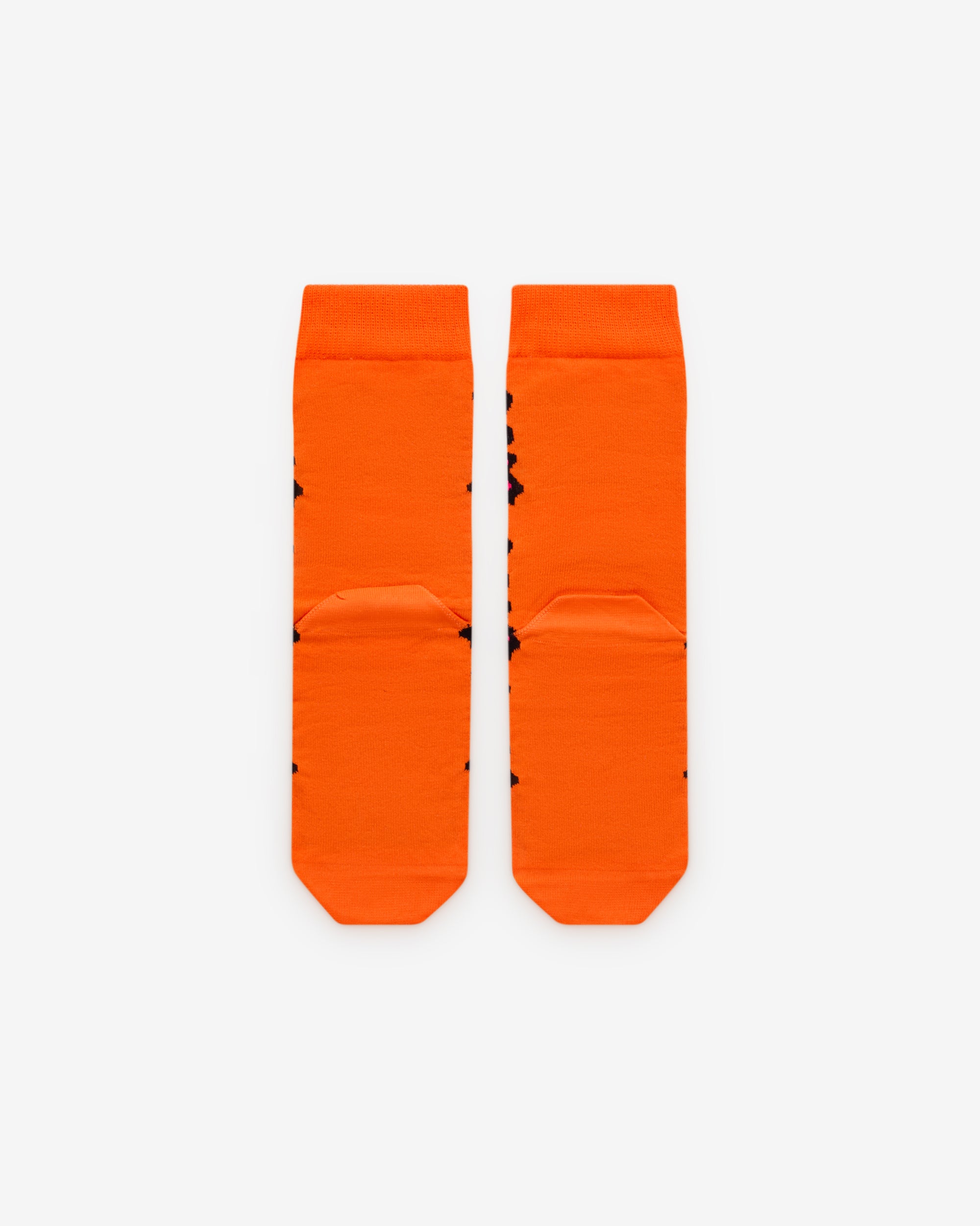 Orange ankle socksPink and black intarsia butterflies Logo at toe