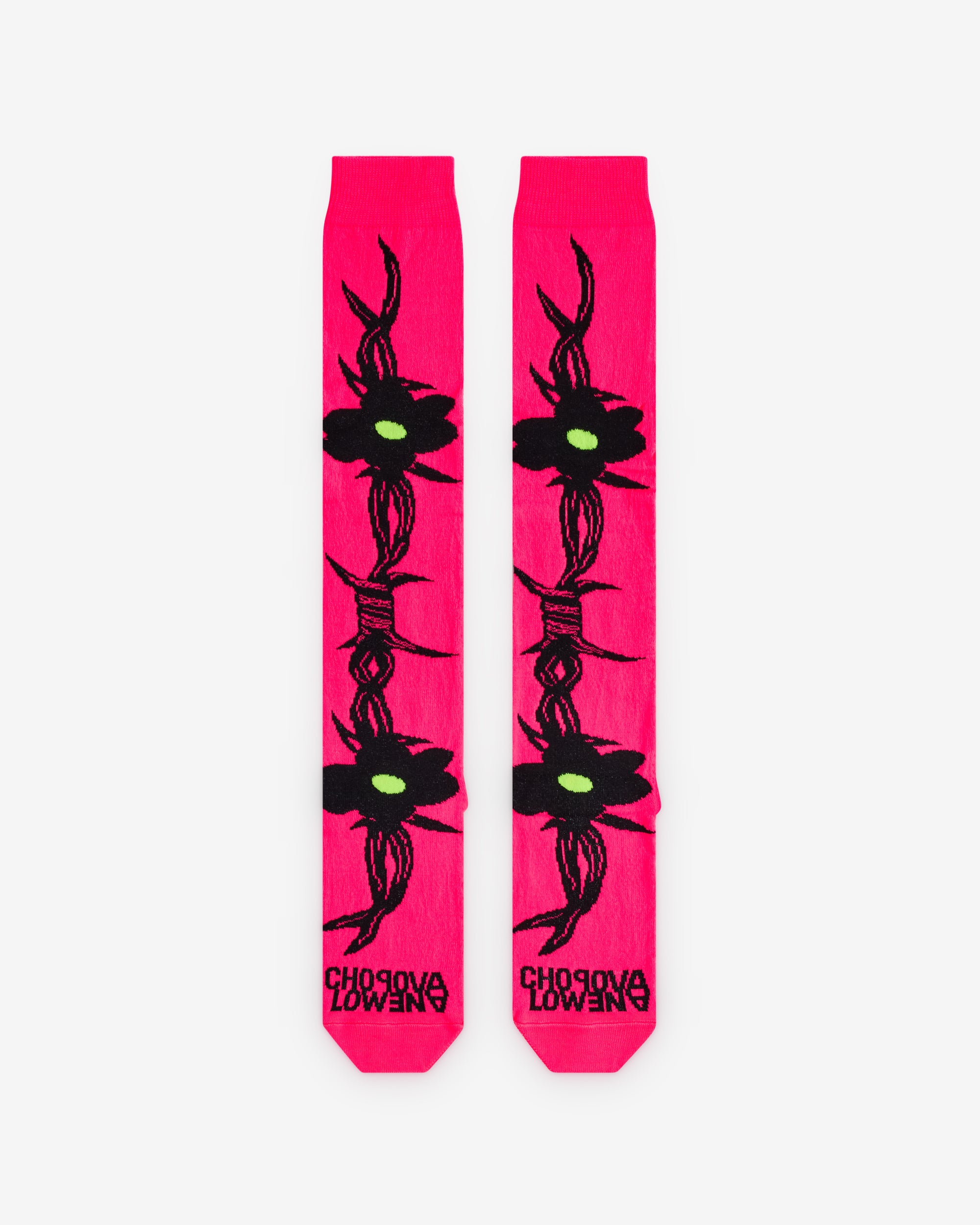 Chopova Lowena Women’s Pointy Floral Long Socks Pink