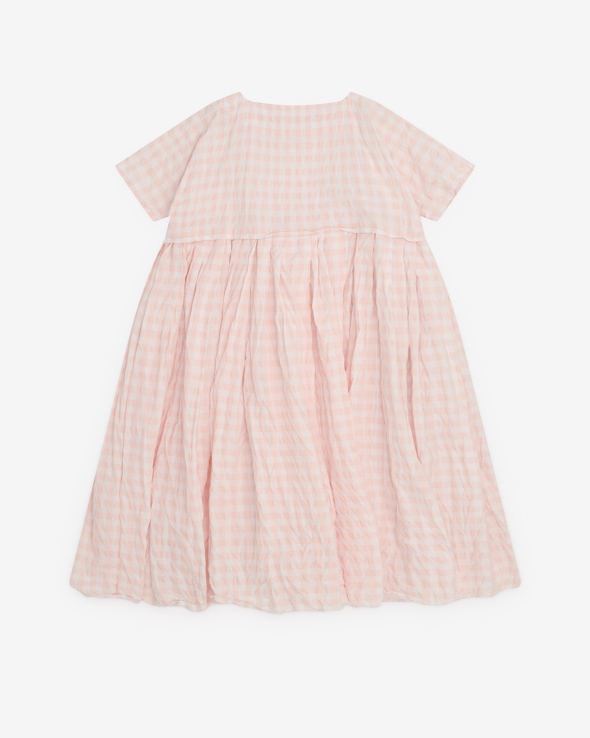 Round neckT-shirt sleevesGathered empire waistlineMid-lengthAll over gingham pattern