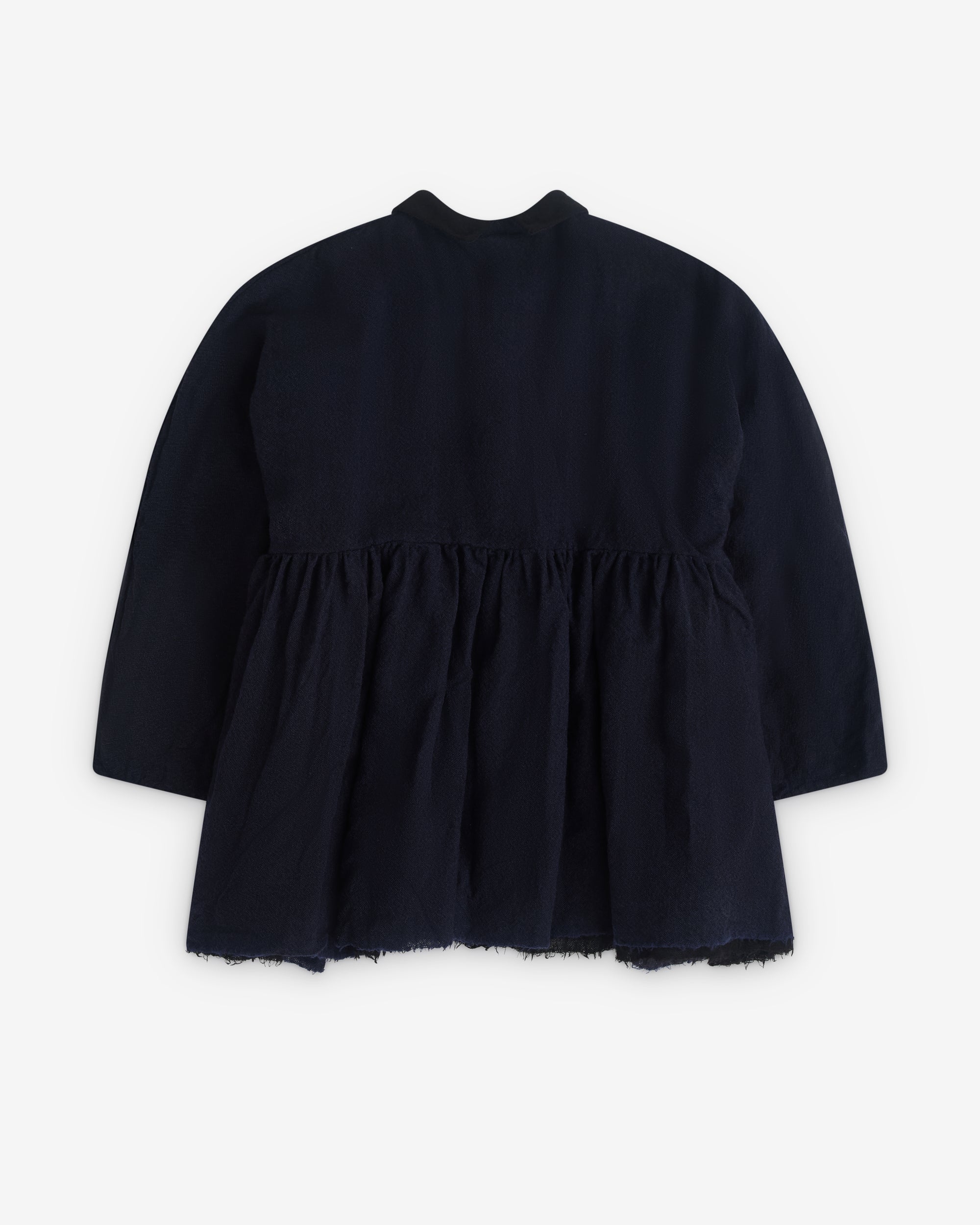 Miniature collarButton closurePeplum detail at waistCropped, rounded sleevesUnlined