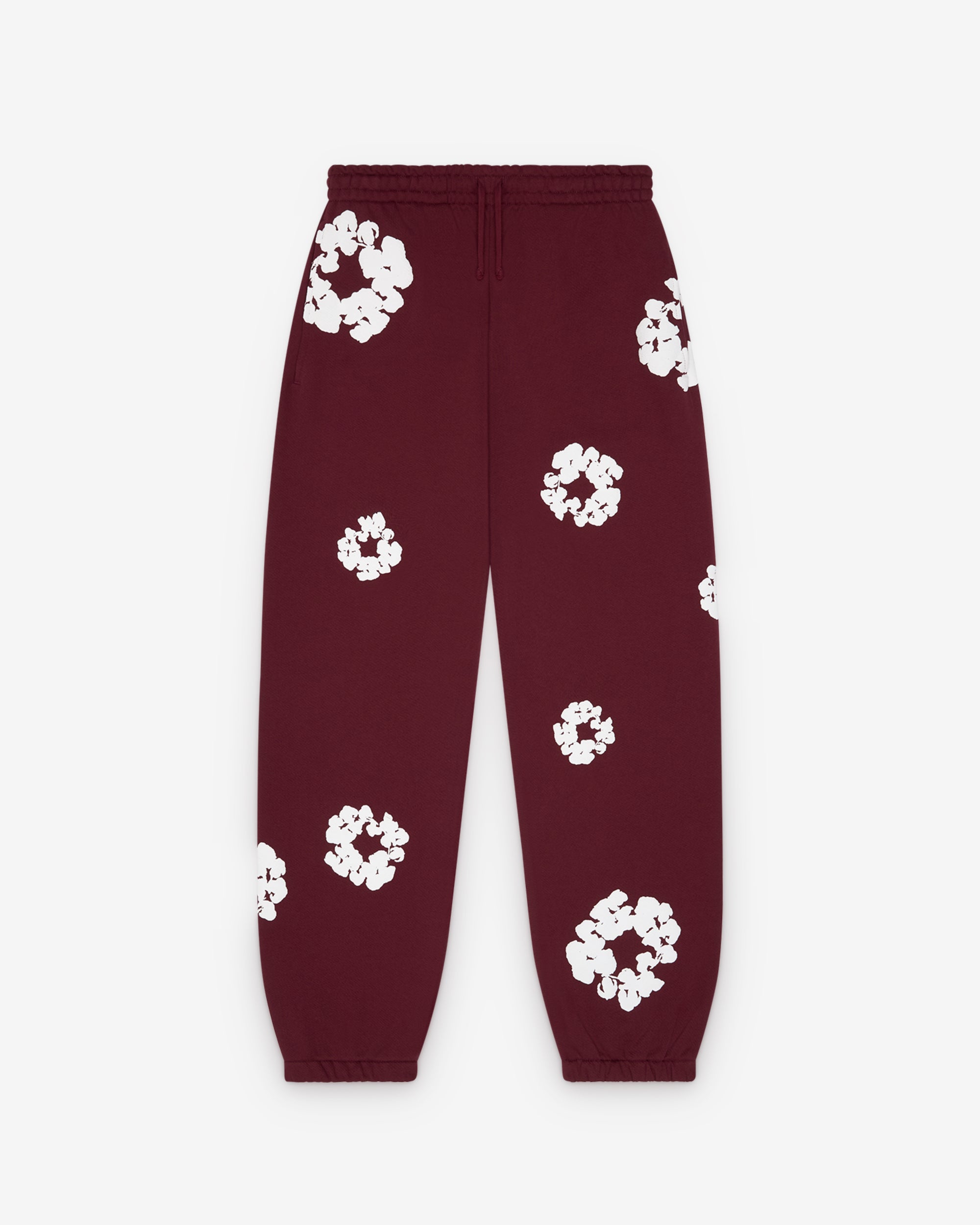 Denim Tears Men's Cotton Wreath Sweatpants Burgundy