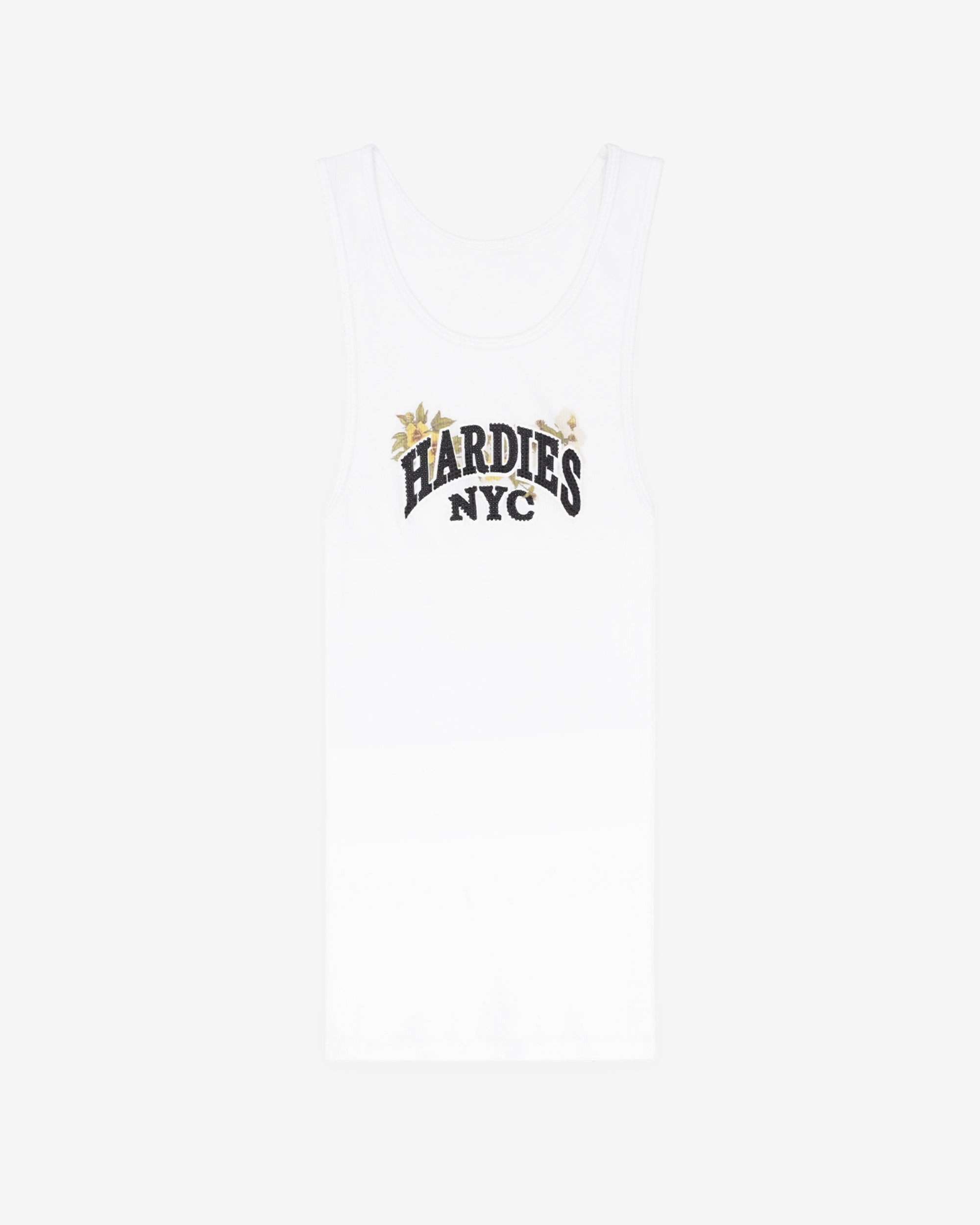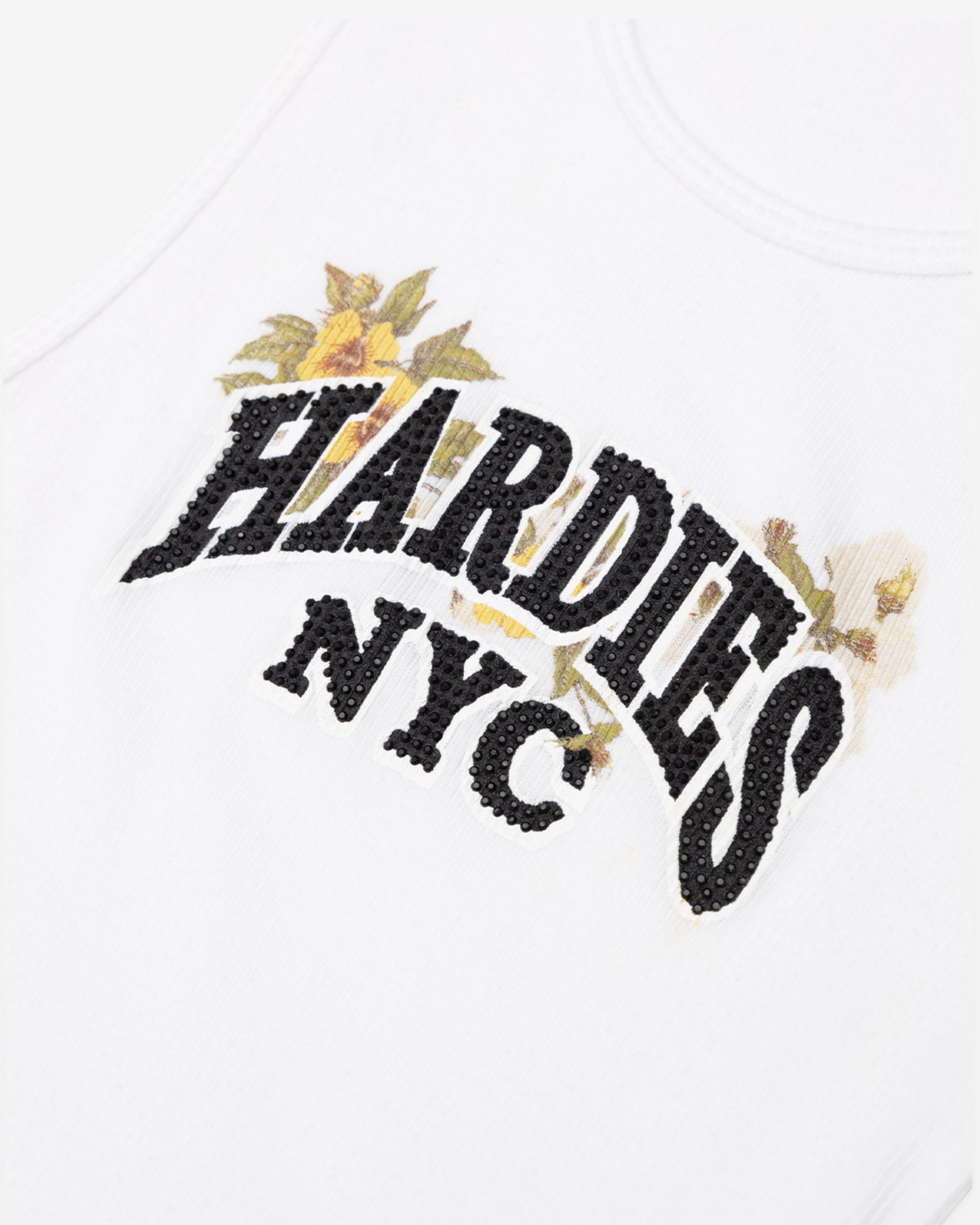 SleevelessSlim fitPrinted graphics with rhinestone appliqué