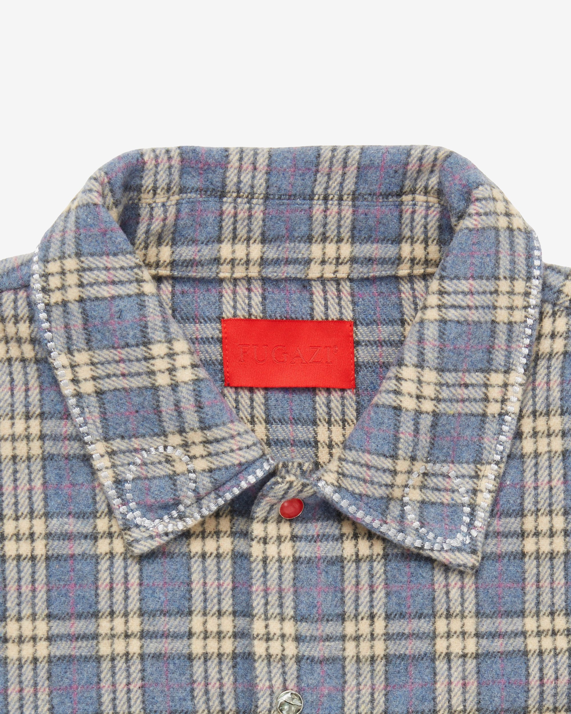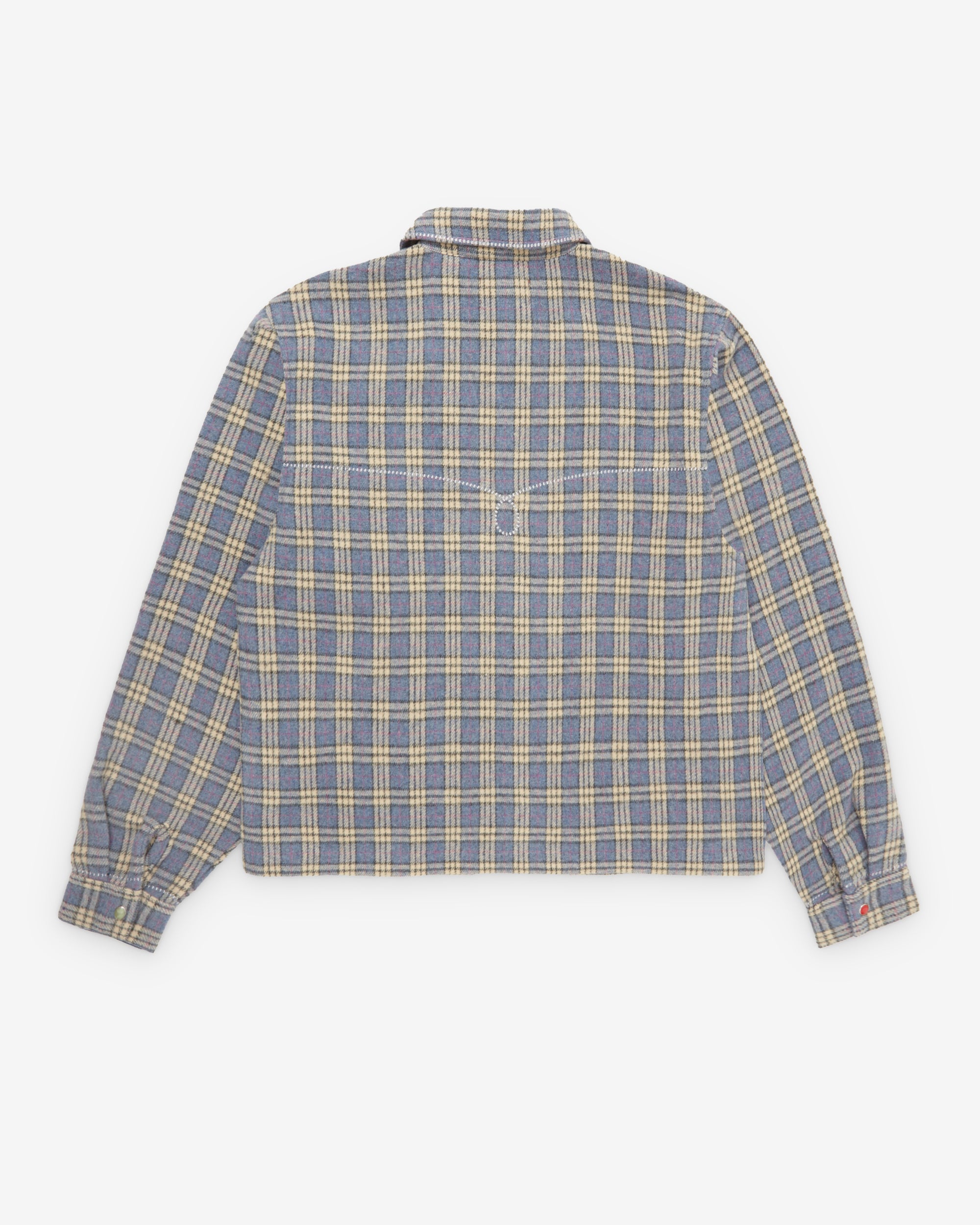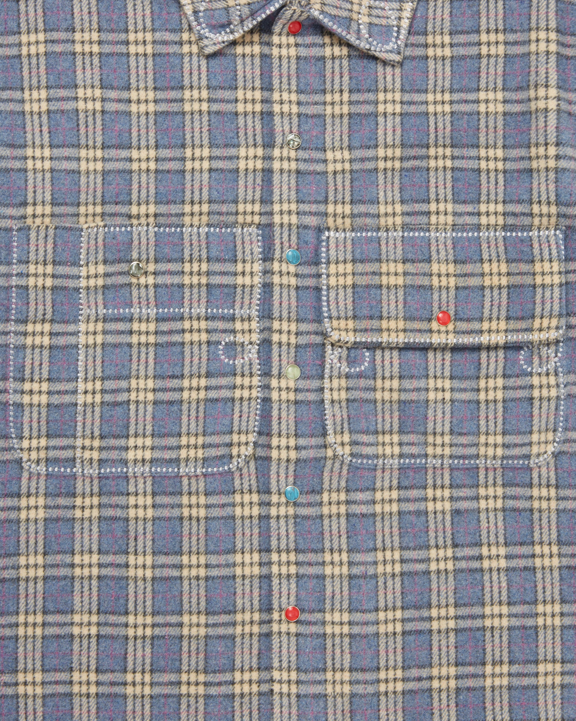 Midweight fuzzy poly flannel Oversized chest pocketsAcrylic stone snap buttonsWestern stitch detailingCropped boxy fit