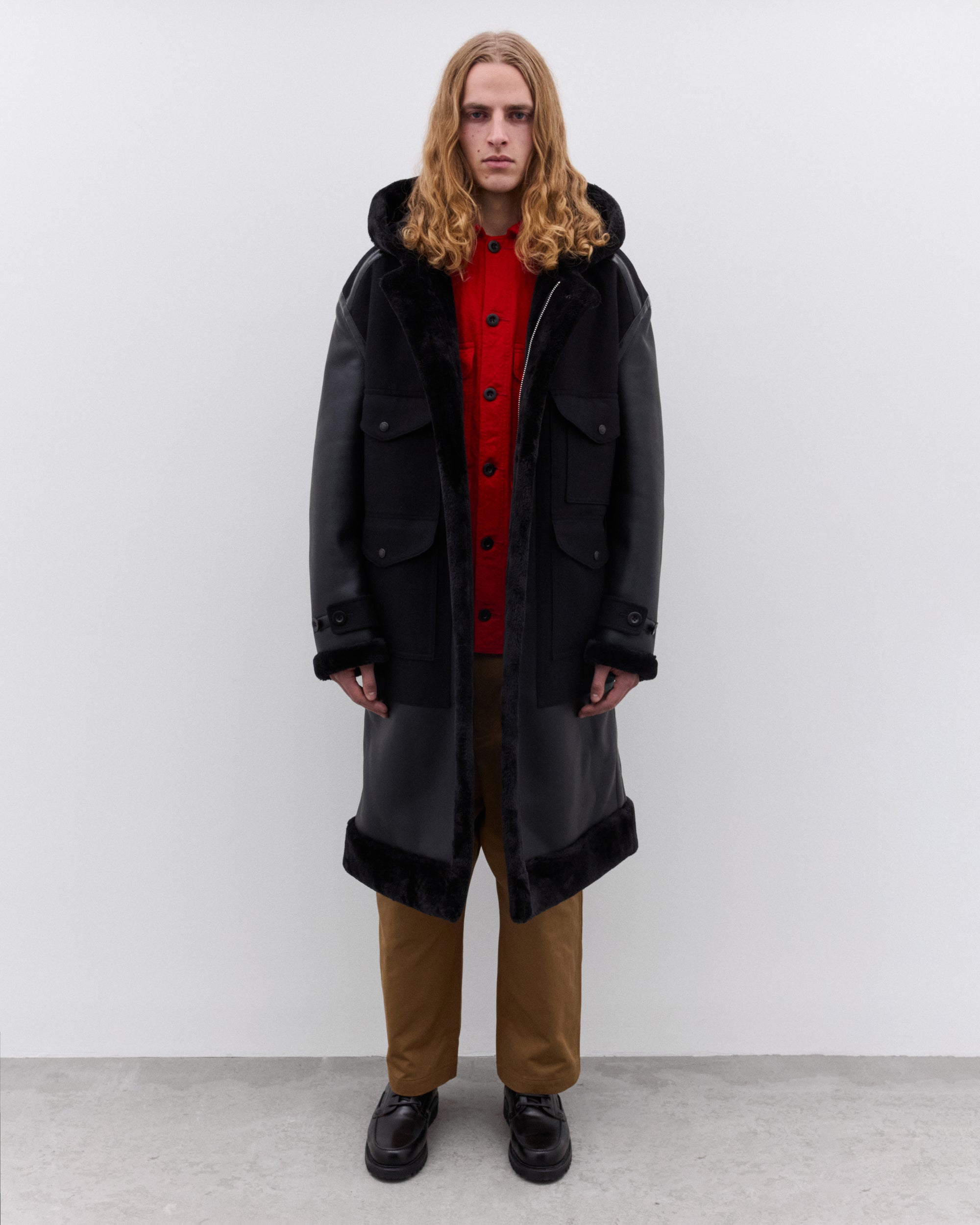 Made in collaboration with FilsonHoodedZip and button fasteningFront flap pocketsButton cuffsFaux fur trimsLined100% Wool77% Polyester, 23% Polyurethane
