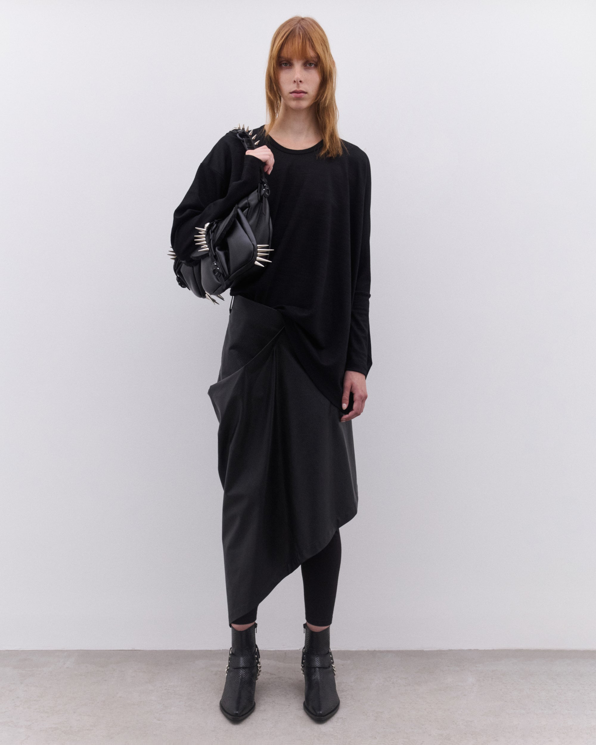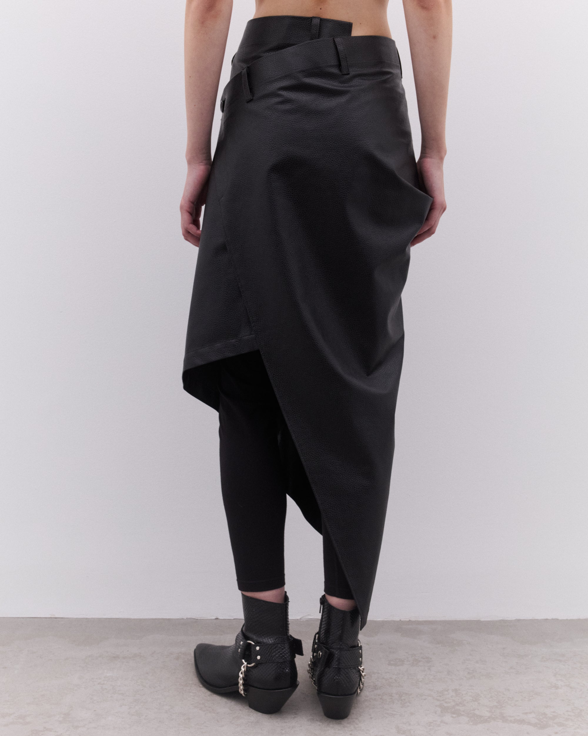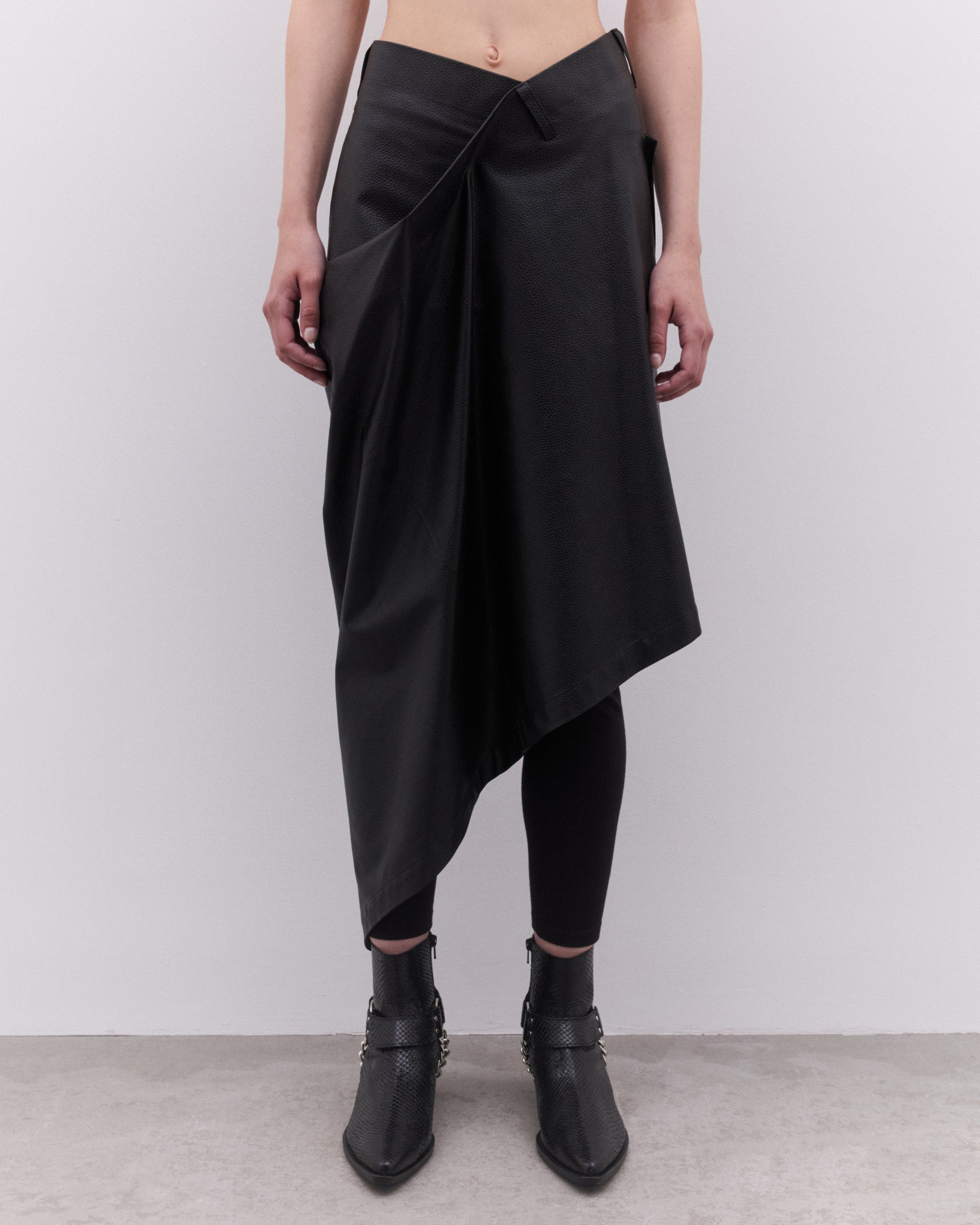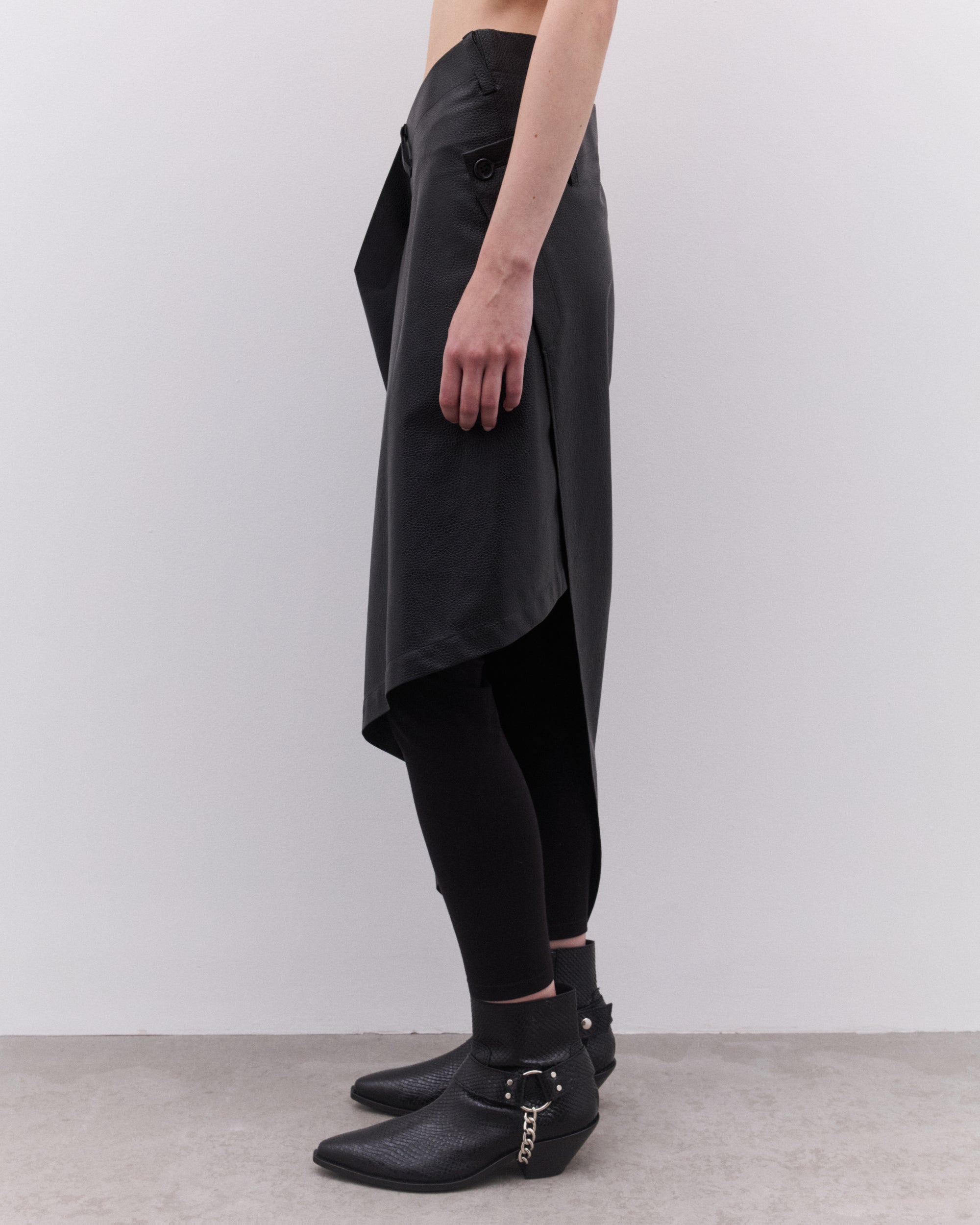 Wrap closureAsymmetric hemUnlinedButton and zip fly fasteningMid-length