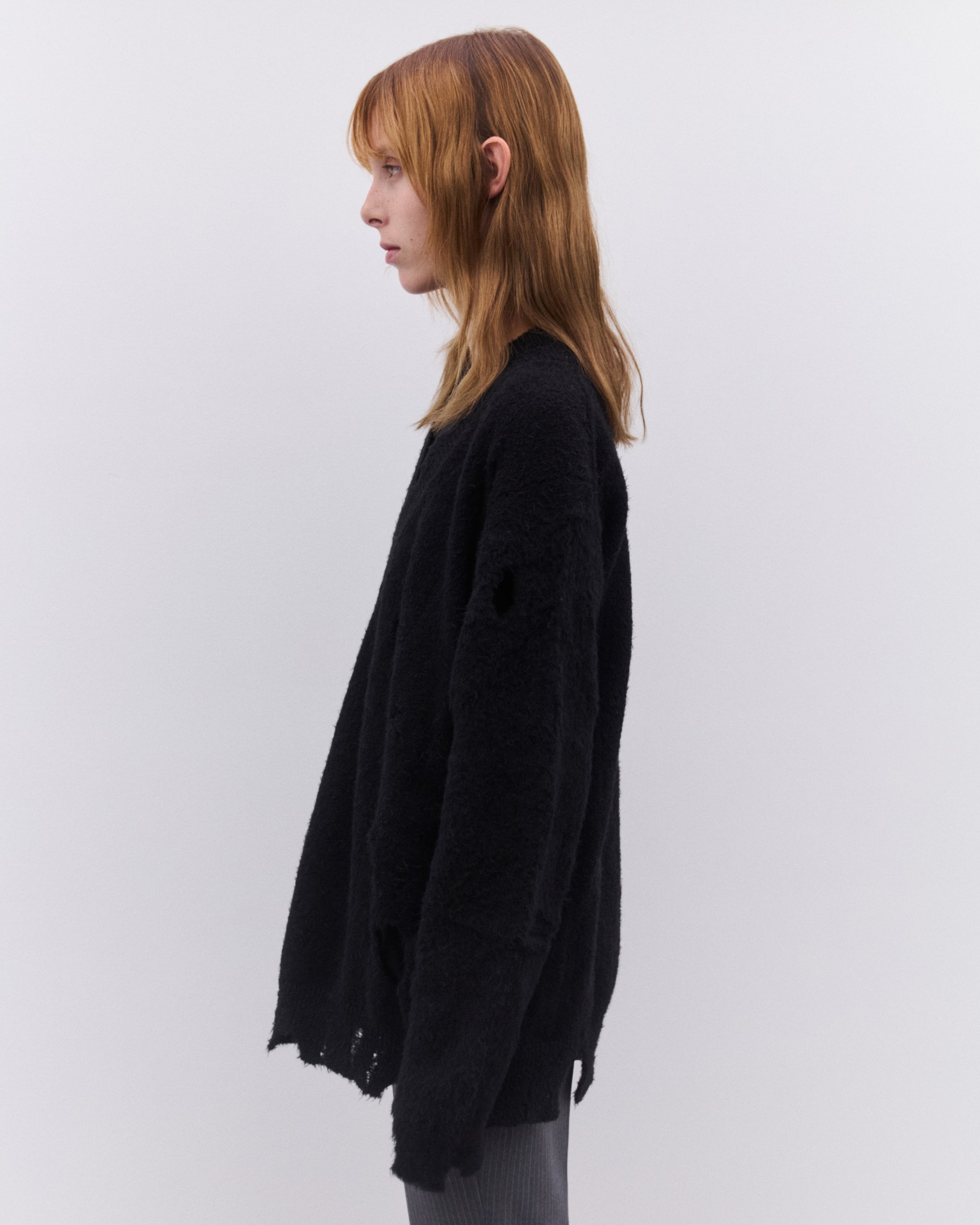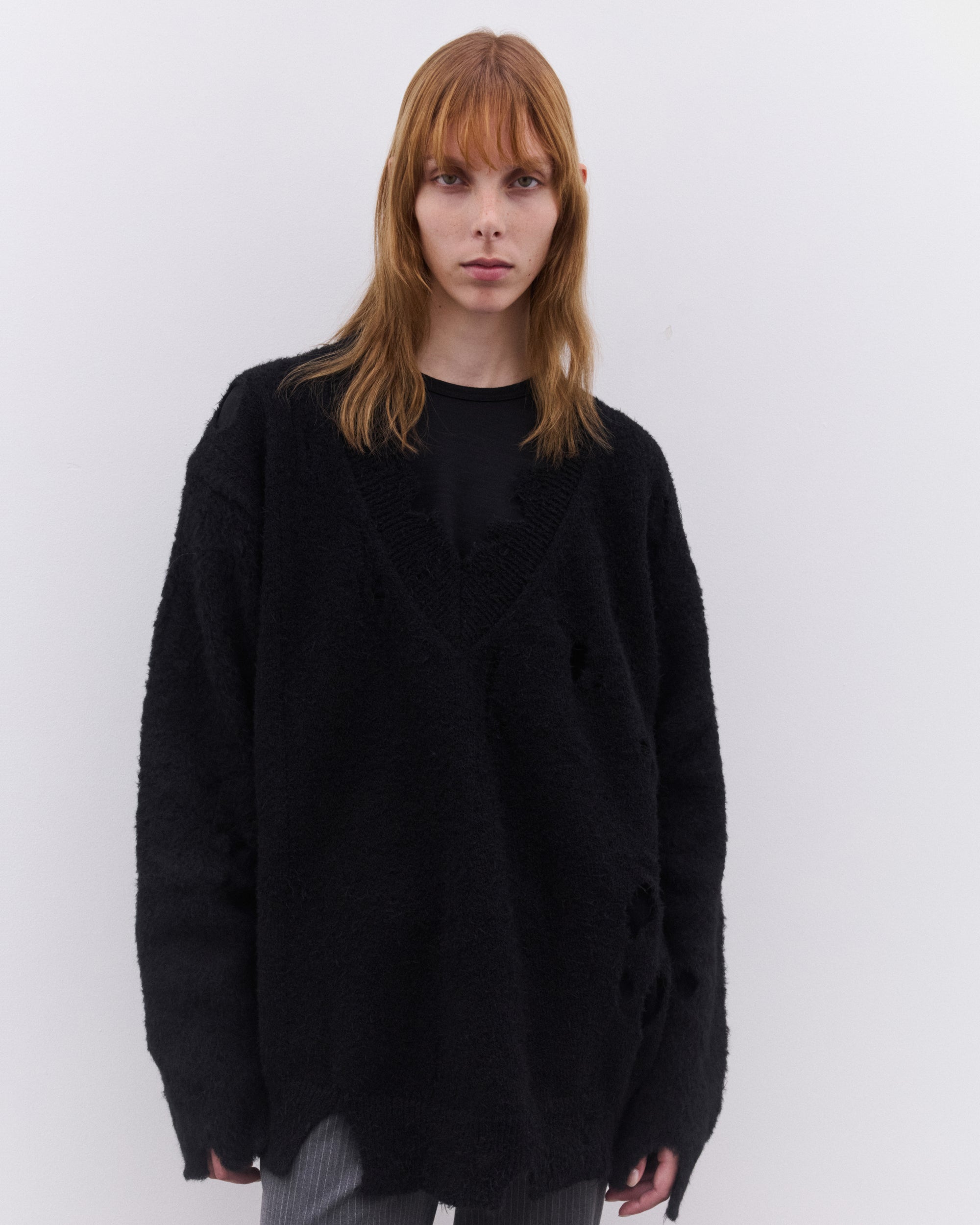 V-neckBoxy fitDistressing throughoutLong sleeves