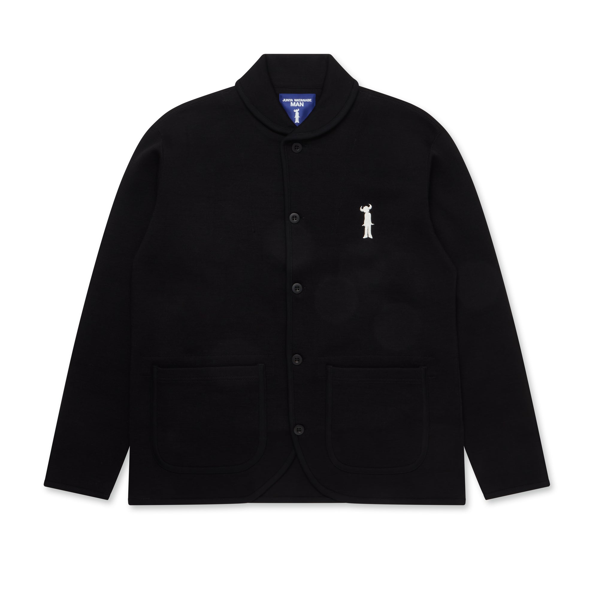 Junya Watanabe MAN shawl wool cardigan. Featuring Jay Kay chest embroidery, button fastening and two front pockets. Produced in collaboration with Jay Kay.