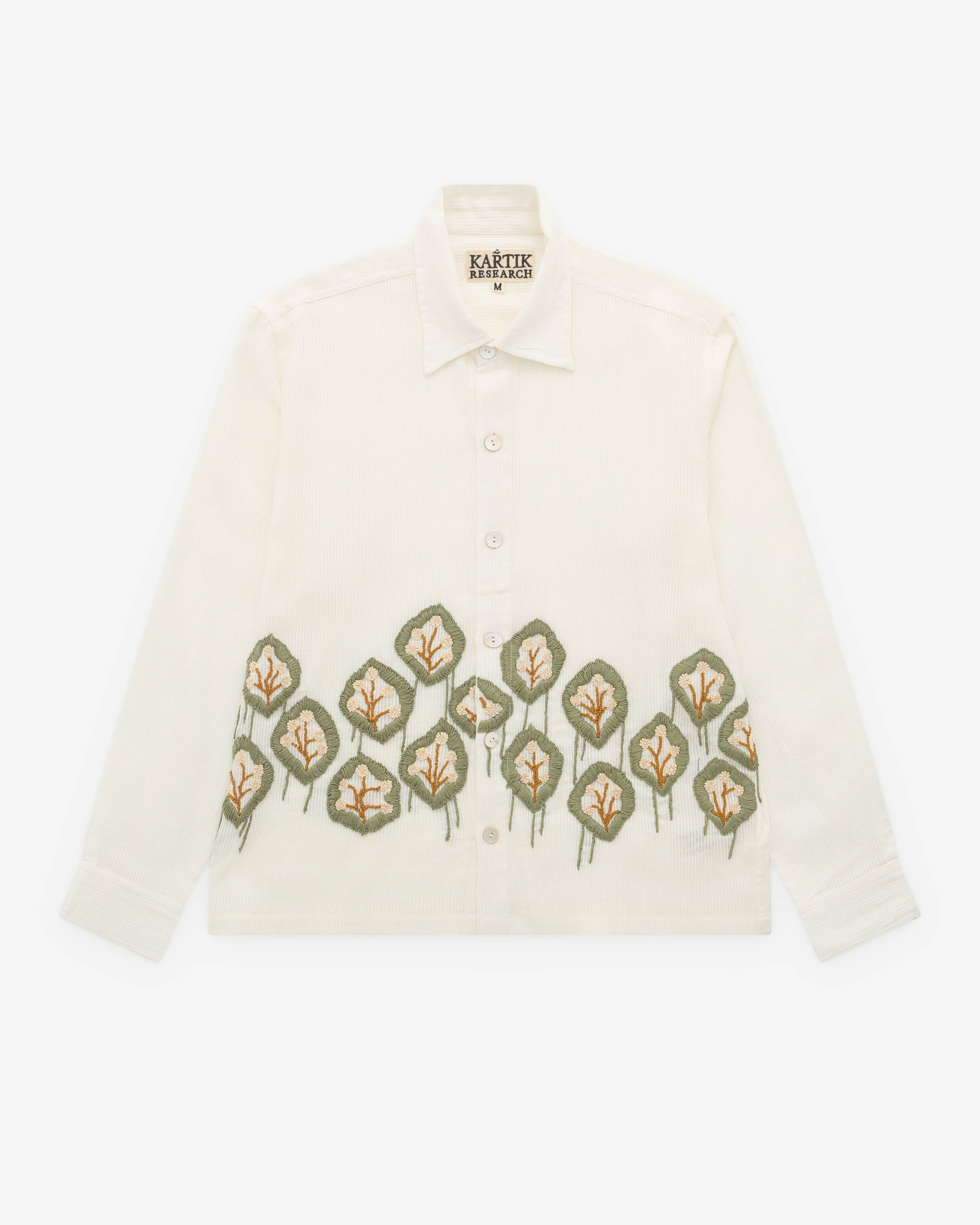 Kartik Research Men’s Box Shirt Ecru/Moss