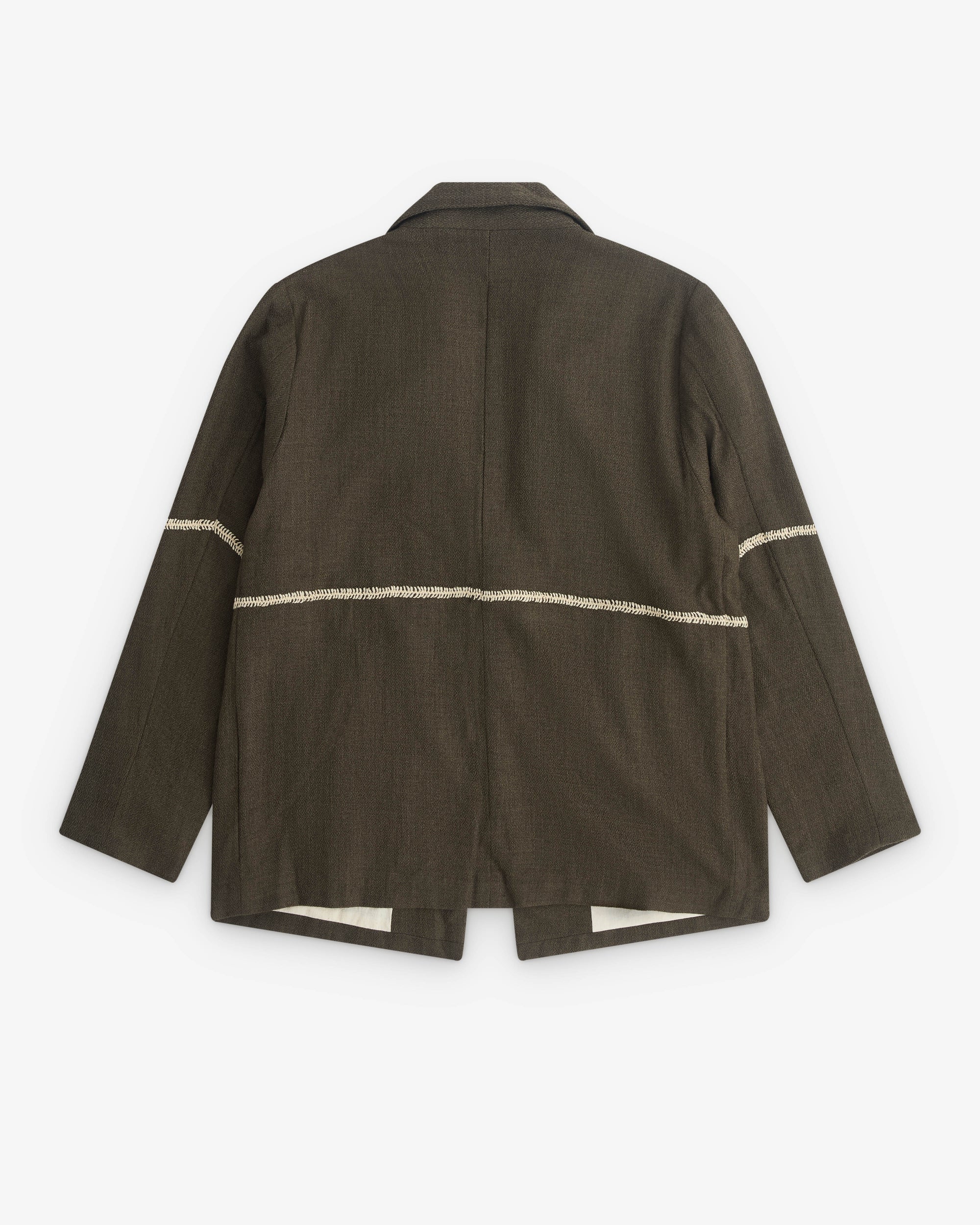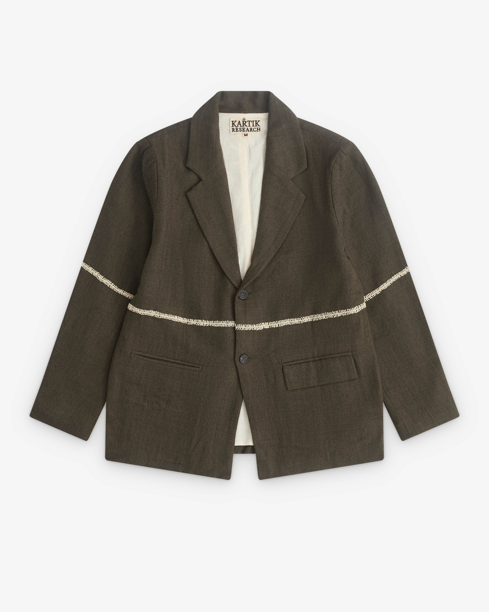 Kartik Research Men’s Rabari Two Button Blazer Olive/Ecru