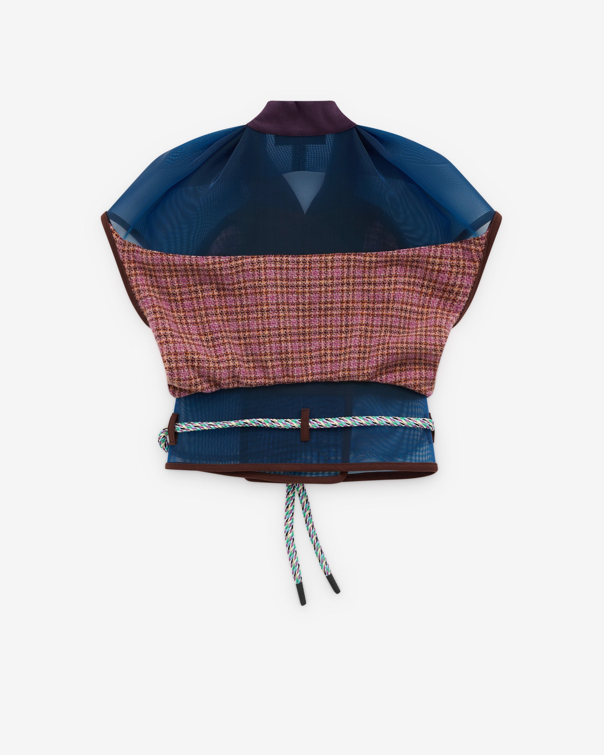Panelled constructionTulle sleevesTweed bodyGathered waistCroppedRope tie detail